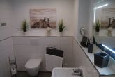 ein Traum für jeden. Das freundliche Badezimmer zaubert bereits am frühen Morgen ein Lächeln ins Gesicht. Hier empfangt den Gast eine große Duschecke mit Duschsäule / Rain und reichlich Ablagefläche für persönliche Dinge. Ein Fön ist natürlich vorhanden.