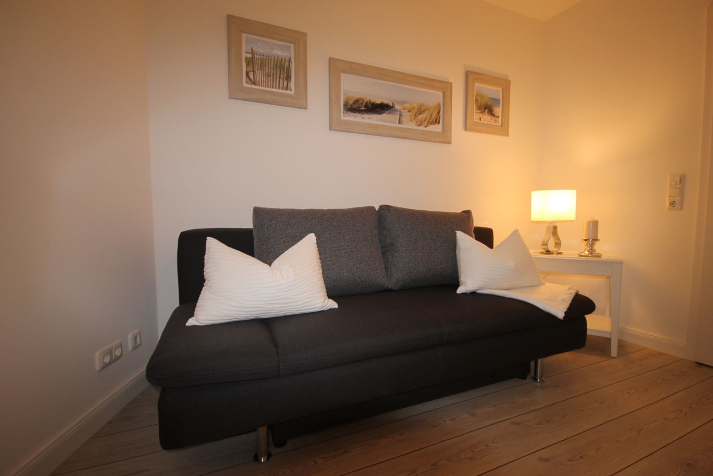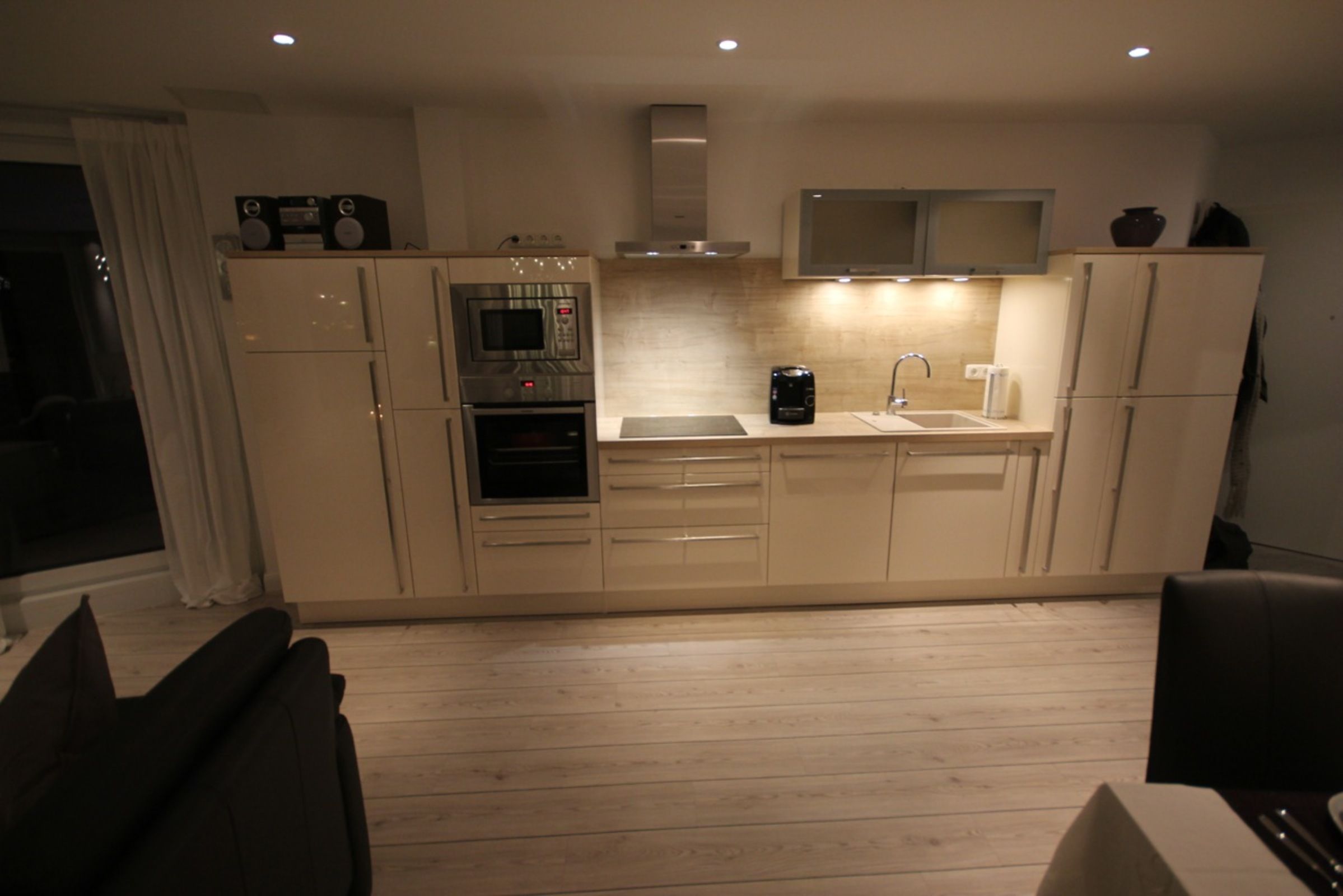 die offene Wohnküche ist von einer Innenarchitektin perfekt geplant worden. Hier findet der Gast alles was er braucht. Geschirrspüler, Induktionskochfeld, Mikrowelle,Filterkaffeemaschine, Toaster, Wasser- und Eierkocher sowie ausreichend Geschirr, Töpfe, Gläser und Besteck sind vorhanden. Ein kleines Reinigungsset (Staubsauger und Wischer) für das Wohlbefinden zwischendurch hat hier auch seinen Platz gefunden.