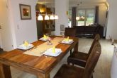Im großzügigen Wohn- und Essbereich erwarten Sie hochwertige Massivholzmöbel und eine warme, einladende Atmosphäre:
