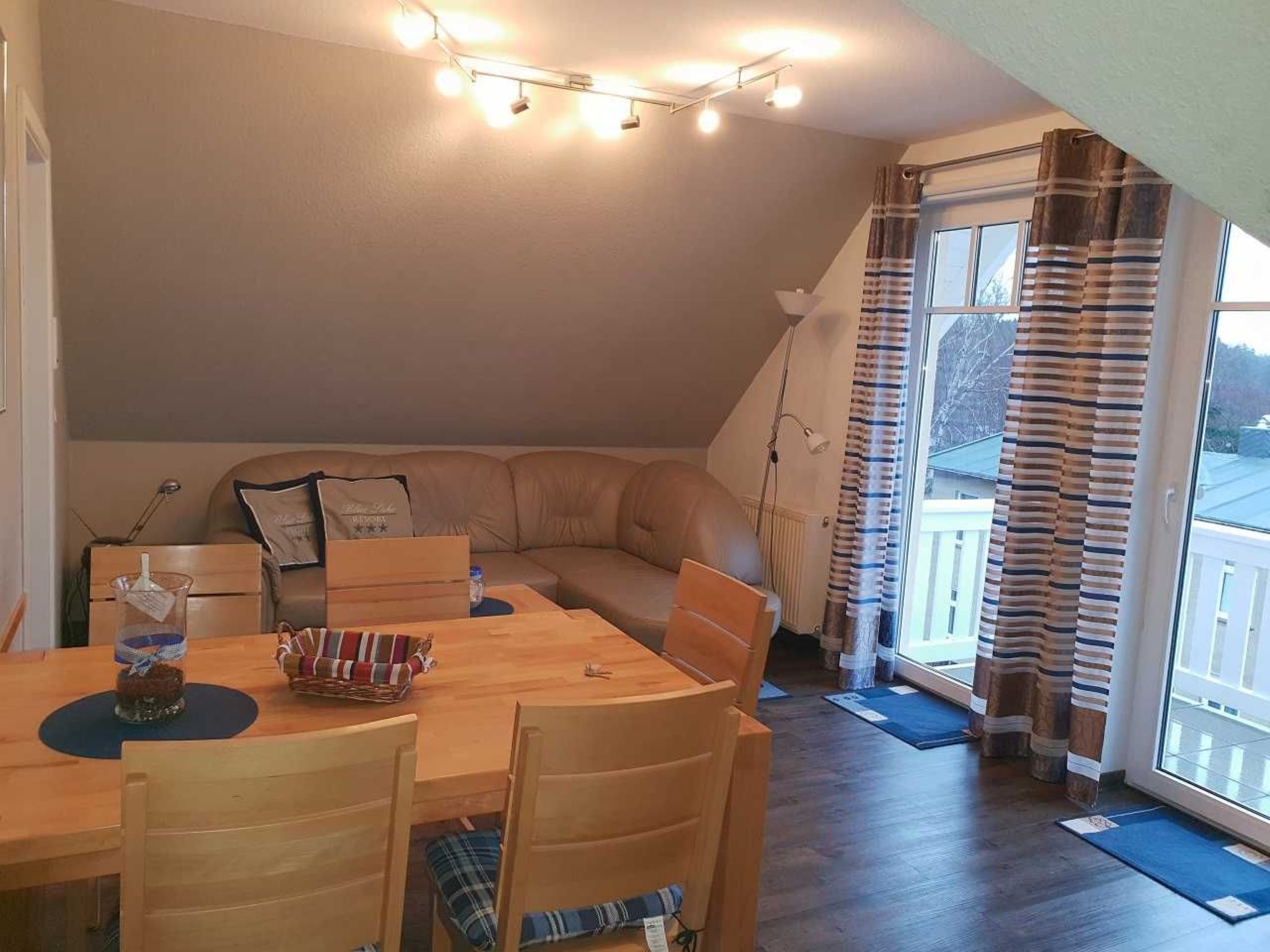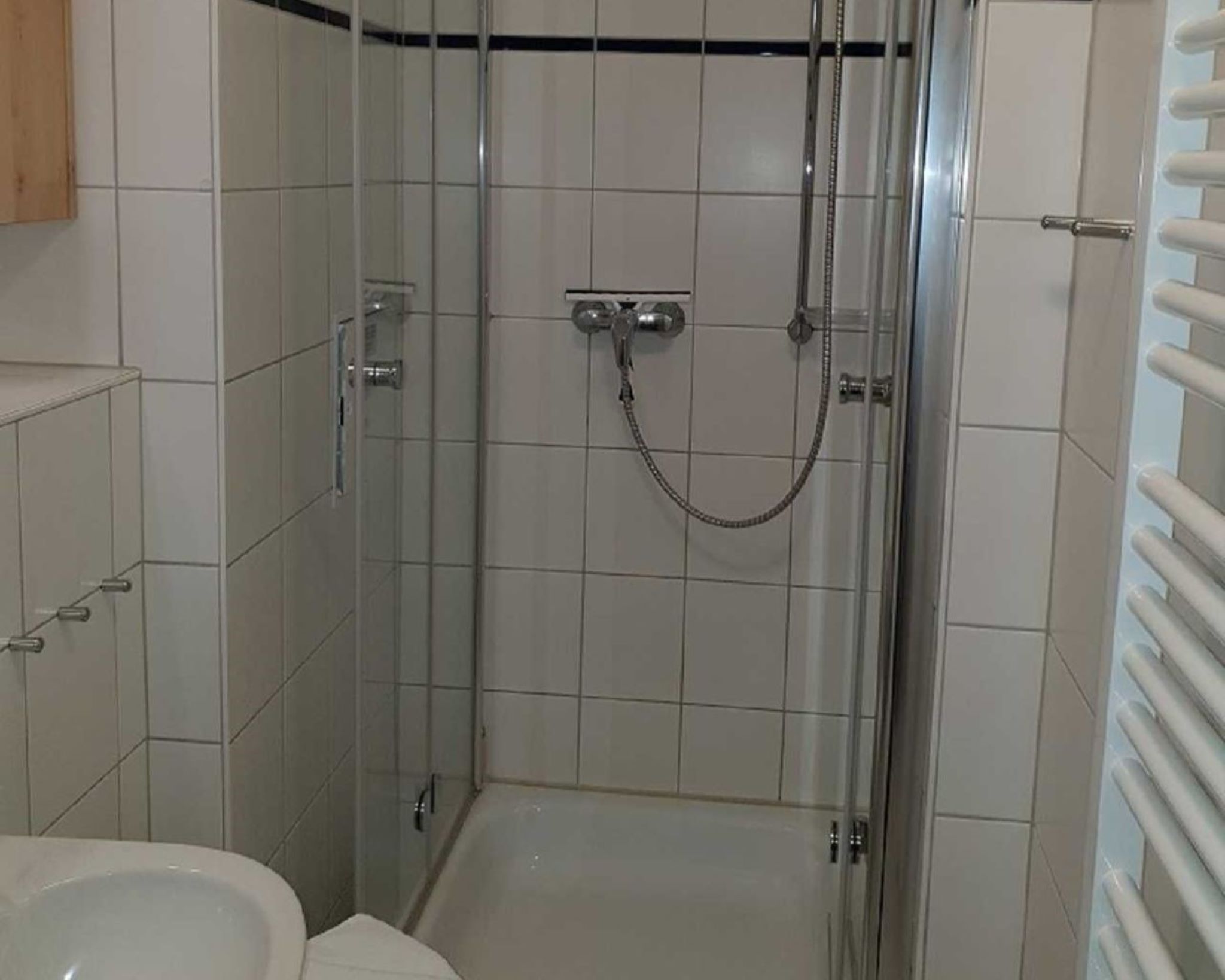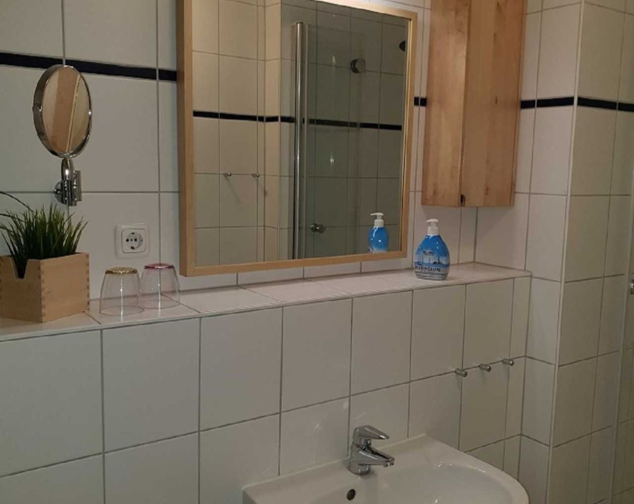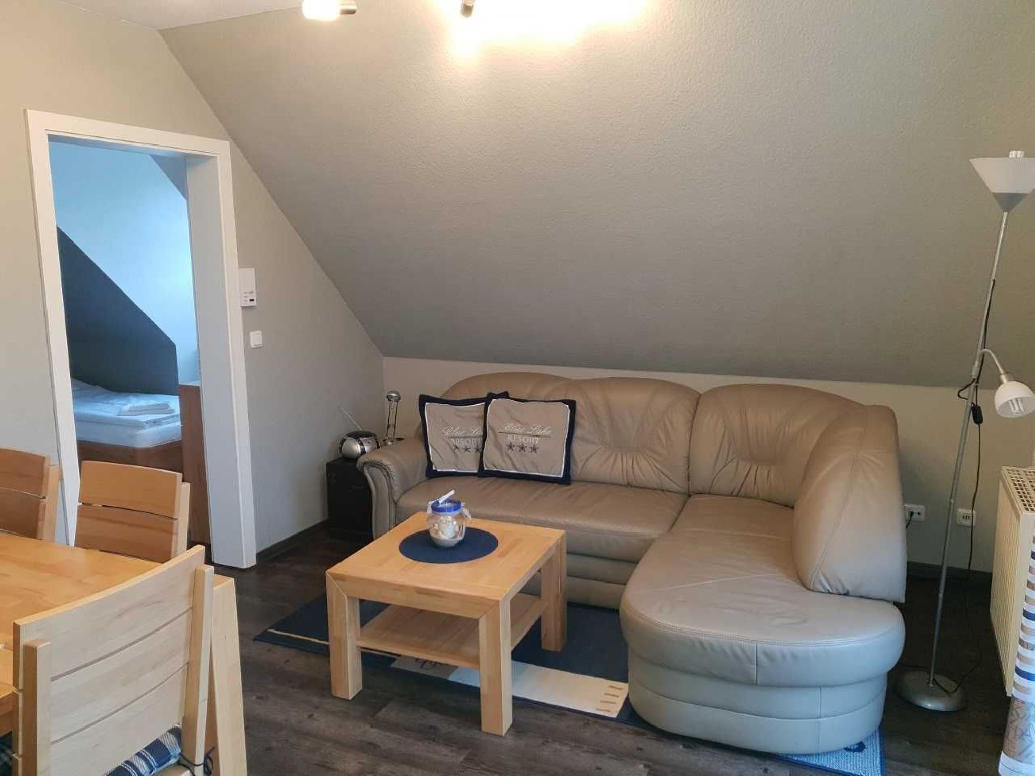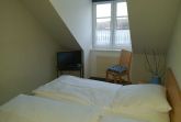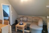 Die 47 qm große 3 Raum Ferienwohnung liegt in der III. Etage, hat neben dem Wohnzimmer, ein Schlafzimmer mit Doppelbett, ein 2. Schlafzimmer mit 2 getrennten Betten, eine Küchenzeile sowie ein Duschbad und einen Balkon zur Ostseite mit Blick zum Stadtwald.