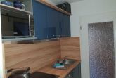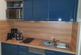 Küchenzeile mit 2-Platten-Ceranfeld, Kühlschrank, Geschirrspüler, Mikrowelle mit Backfunktion, Wasserkocher und Kaffeemaschine