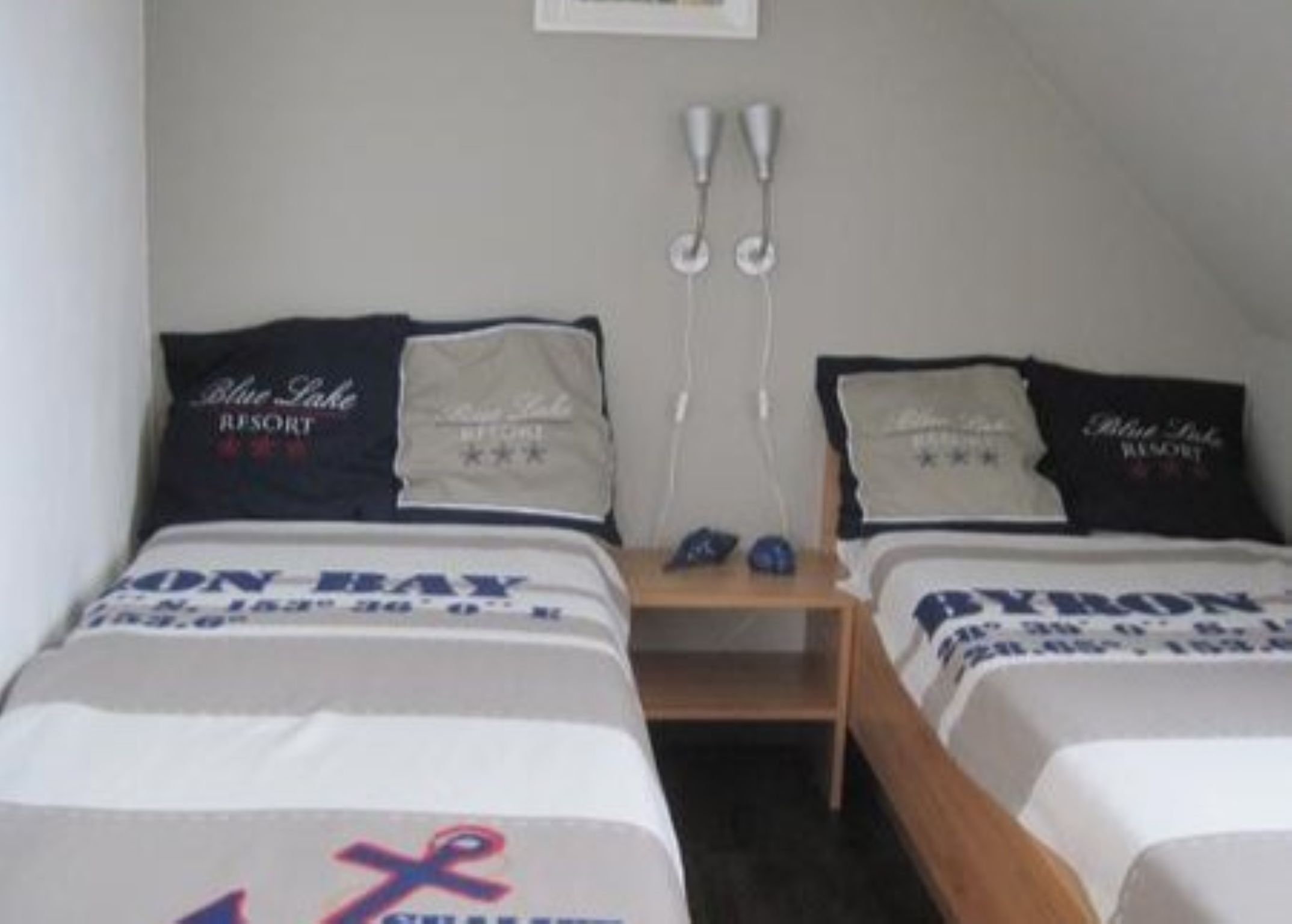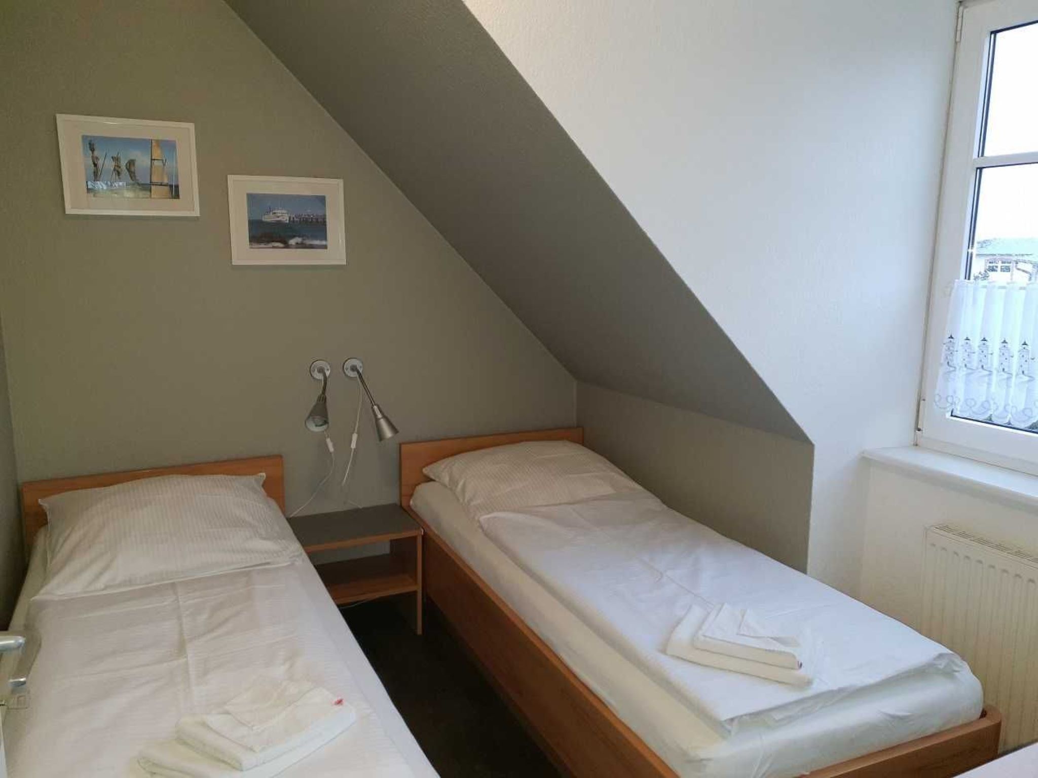 Gästezimmer mit zwei Einzelbetten und Kleiderschrank