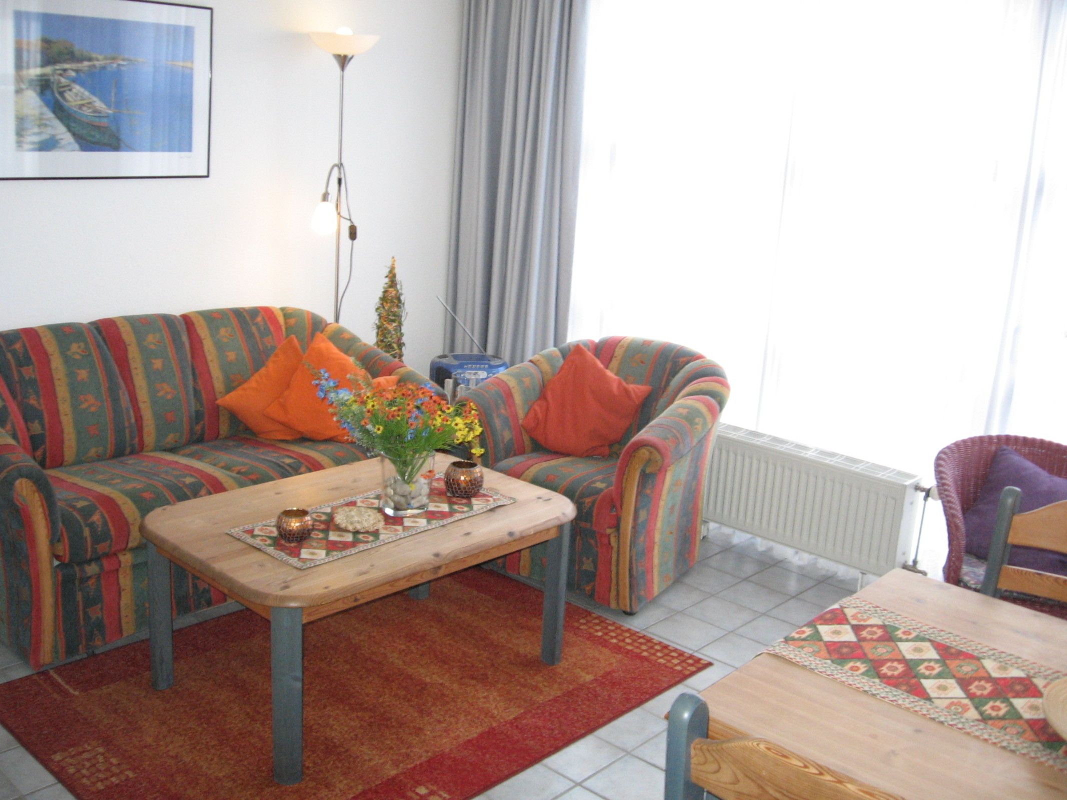 Eine bequeme Treppe führt ins Dachgeschoss. Hier stehen ein großes Schlafzimmer mit Doppelbett und ein weiteres Zimmer mit 2 Einzelbetten zur Verfügung, sodass für 2 bis 4 Personen genügend Platz vorhanden ist. Außerdem stehen ein Kinderbett und ein Kinderhochstuhl bereit.