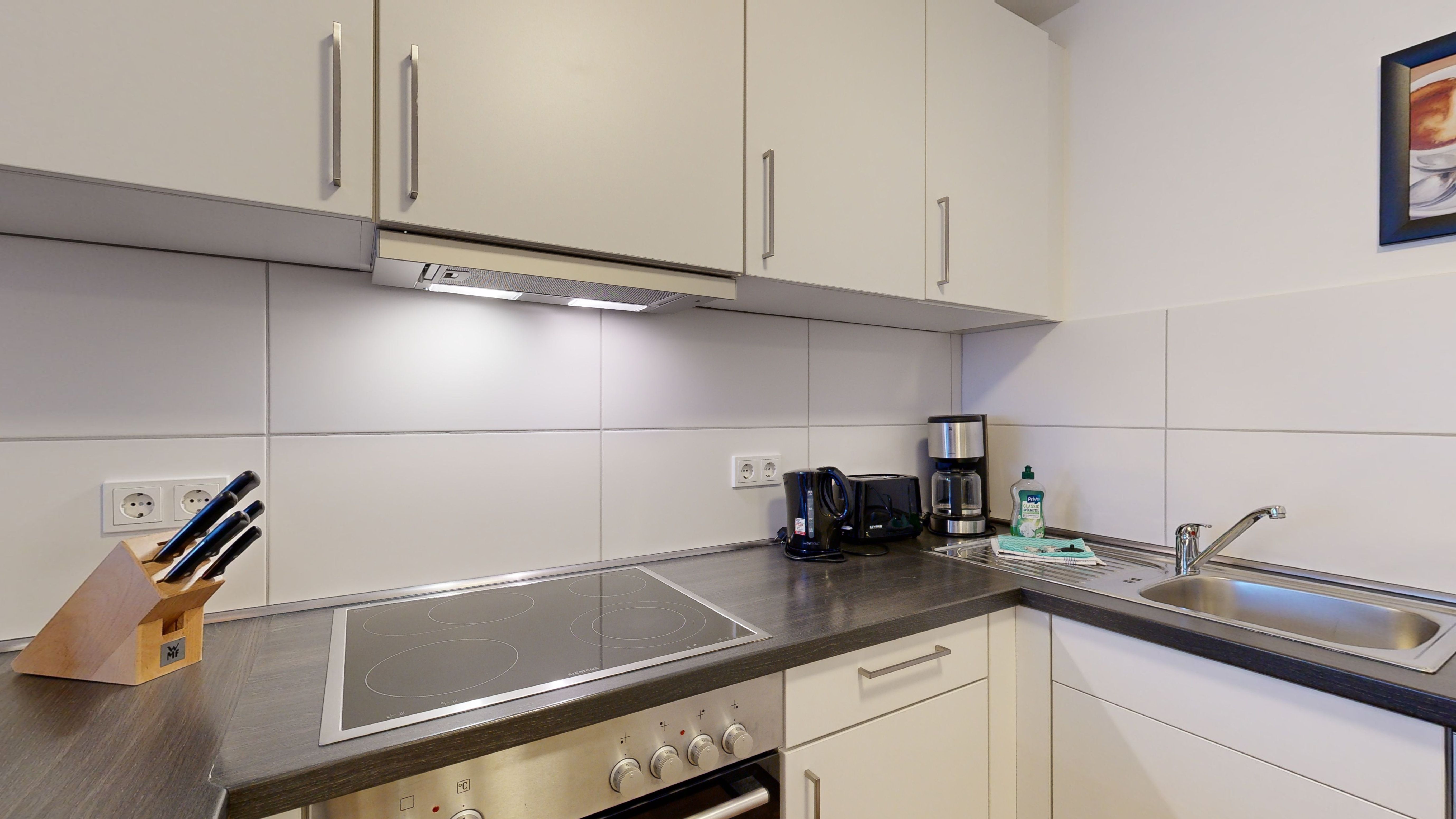 Im ganz neu gebauten Objekt gibt es großzügige Ferienwohnungen mit 1 und 2 Schlafzimmern, teilweise mit Sauna. Eine Tiefgarage (die Einfahrtshöhe beträgt 2,00 m, mit direktem Hauszugang), abschließbarer Fahrradraum und Aufzug im Haus.