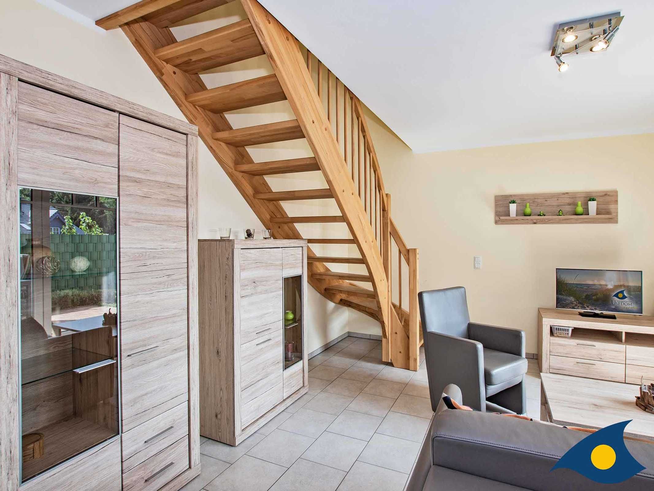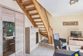 In der unteren Etage der Wohnung befindet sich das Wohnzimmer sowie die komfortable Wohnküche mit einem Esstisch, der bequemen Platz für alle Gäste bietet.