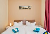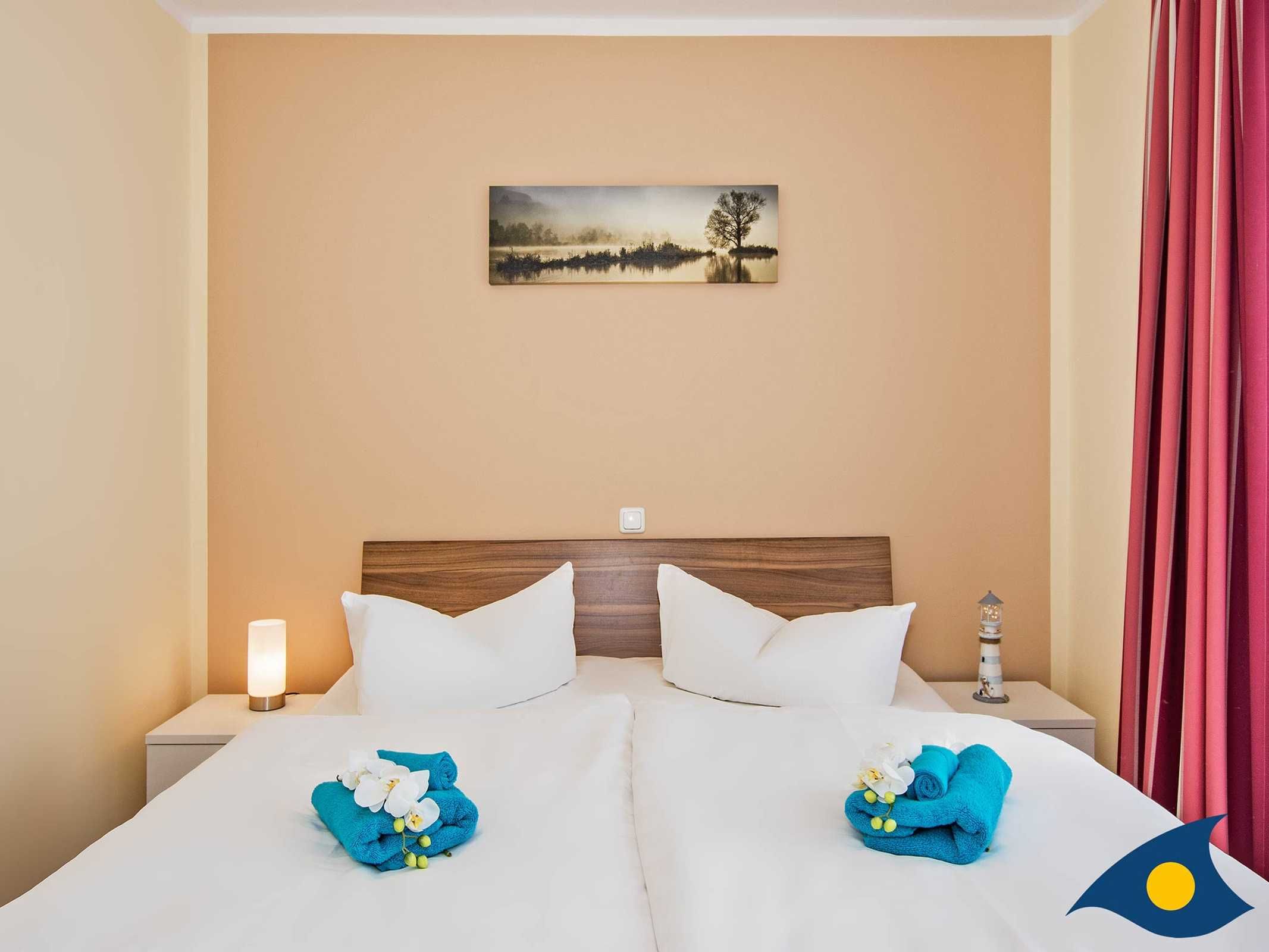 In der oberen Etage der Wohnung bieten Ihnen zwei Schlafzimmer mit geräumigen Kleiderschränken genügend Platz für Ihre Urlaubsgarderobe. Beide Schlafzimmer sind mit Verdunkelungsgardinen ausgestattet und sorgen somit für Ihre ideale Ruhemöglichkeit.