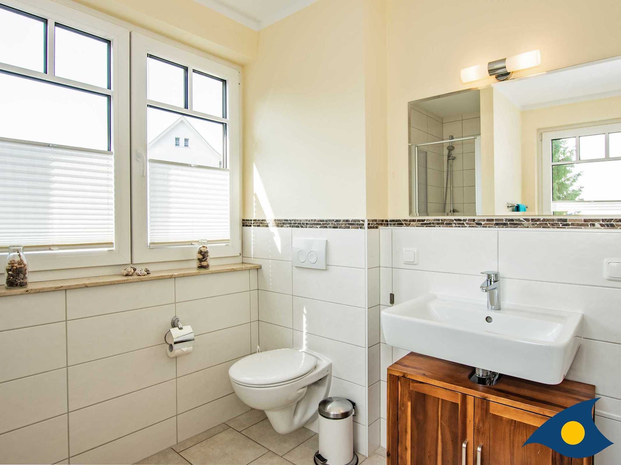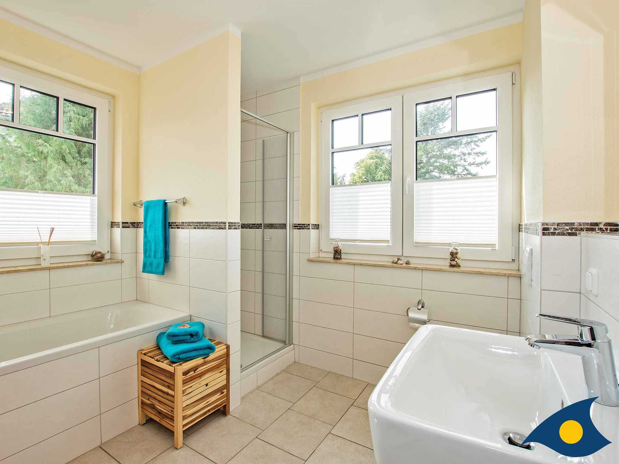 Im geräumigen Bad mit Dusche und Badewanne können Sie den Tag entspannt in der Badewanne beenden oder sich erfrischen, um die vielen Ausflugsmöglichkeiten von Heringsdorf zu Fuß zu erkunden.