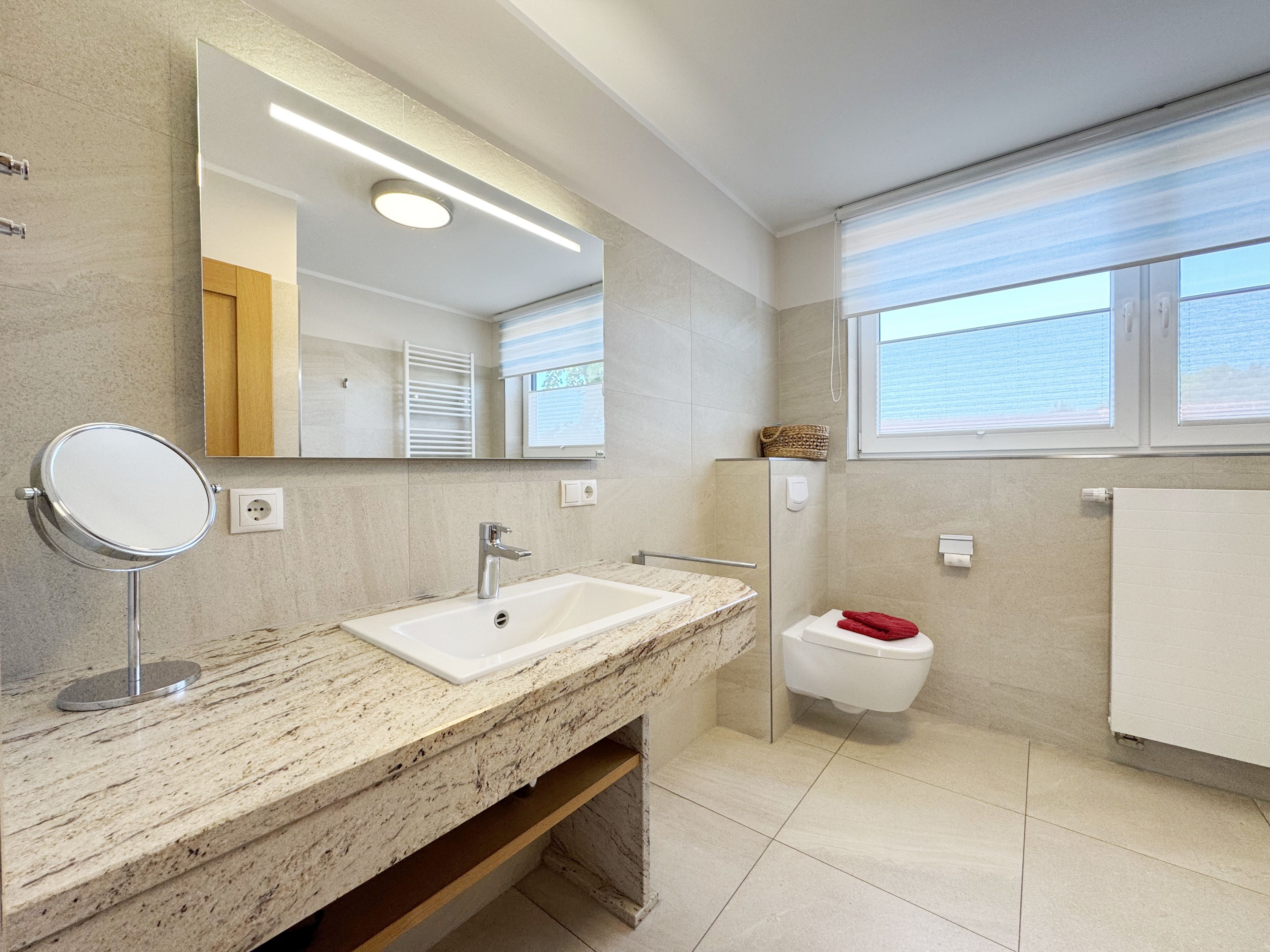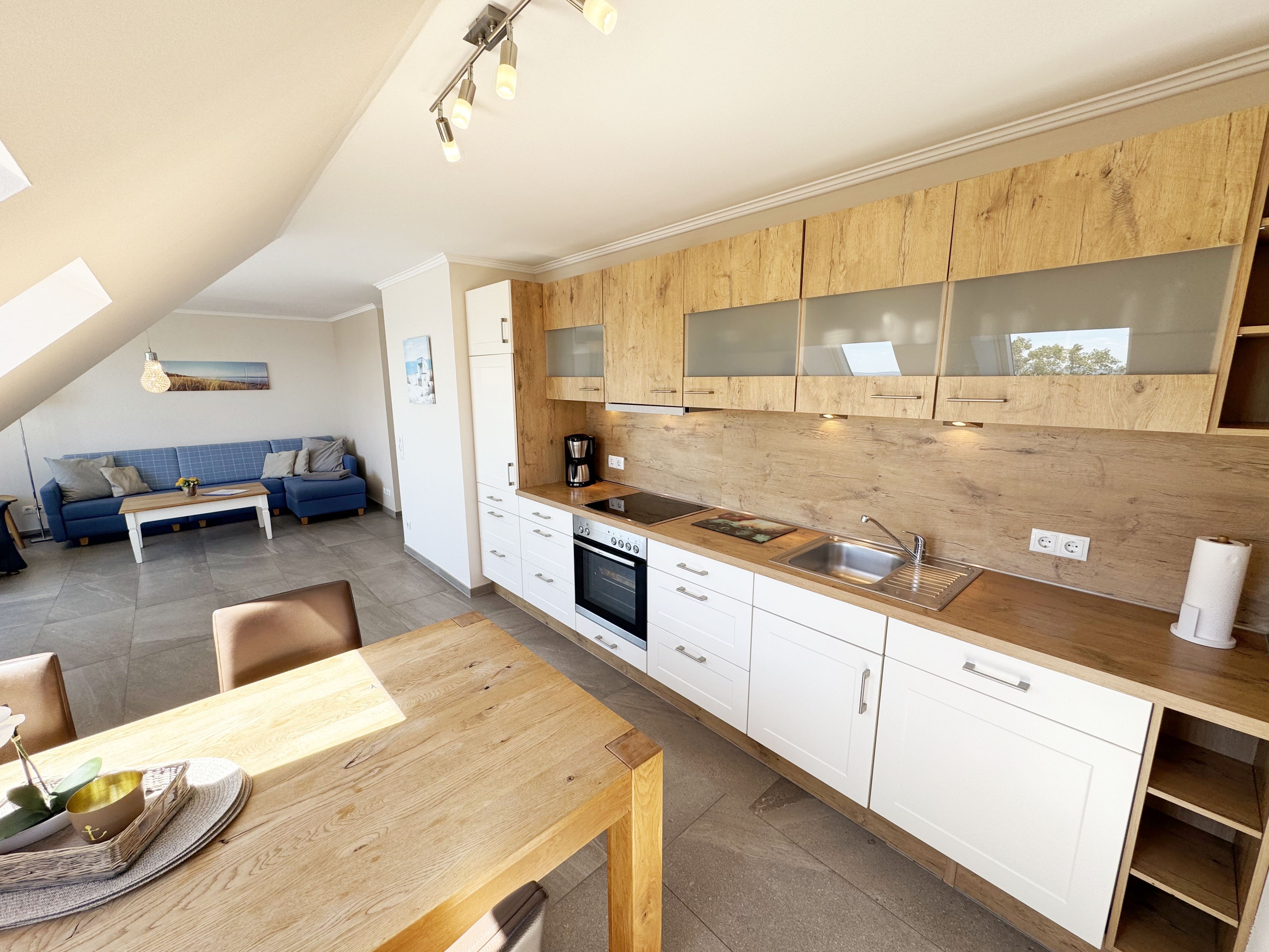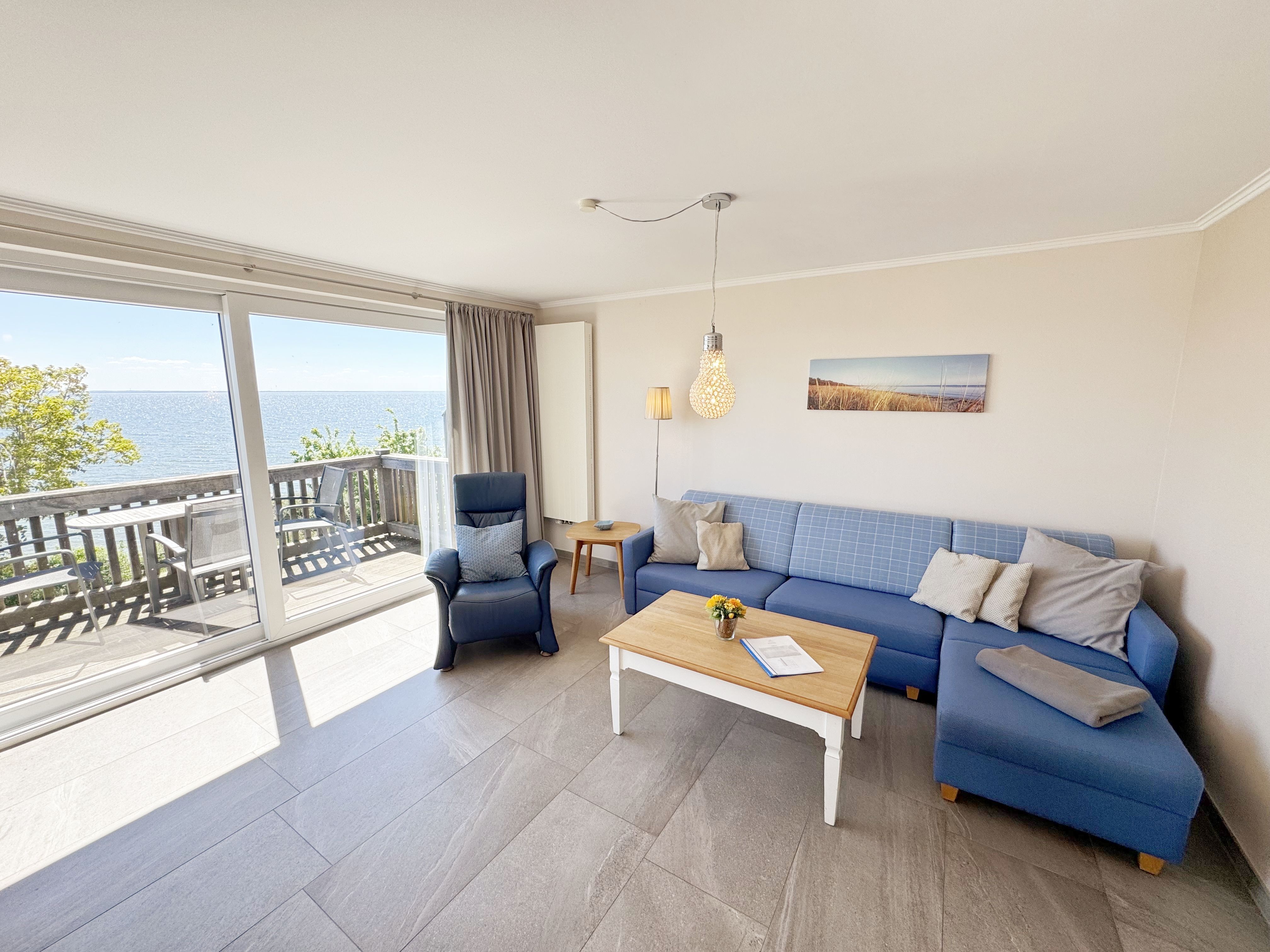Die Ferienwohnung (Nichtraucher) Nr. 4, ca. 72,5 m², befindet sich im Obergeschoss eines 6 Familienhauses auf 4.500 m² großem Grundstück in Einzellage ohne Publikums- und PKW-Verkehr.Die Wohnung ist nach Süden ausgerichtet und verfügt über ein Badezimmer, ein verdunkelbares Schlafzimmer mit Doppelbett (Größe 1,80 m x 2,00 m) und Insektenschutz, einen ca. 35 m² großen Wohn- und Essbereich mit Schlafcouch (1,80m x 2,00m) sowie über einen ca. 6 m² großen Balkon. Die Matratze des Doppelbettes hat die Härtegrade 2 und 3. Das ausziehbare Schlafsofa verfügt über eine hochwertige Kaltschaummatratze. Von hier eröffnet sich ein grandioser Panoramablick über die unmittelbar vor dem Haus liegende Ostsee. Die einzigen Geräusche sind der Wind und das Rauschen des Meeres. Die Wohnung kann mit bis zu 2 Erwachsenen + 2 Kinder bis 15 Jahre belegt werden. Sie erfüllt in ihrer Ausstattung höchste Ansprüche. Erlesene Baumaterialien und Einrichtungsgegenstände vermitteln ein Gefühl des Genießens von Luxus. Nur beispielhaft sei erwähnt, dass das Badezimmer mit Granitwaschtisch, Fön, Fußbodenheizung und Handtuchheizkörper eingerichtet ist. In dem Flur und dem Wohn/Schlafraum sind hochwertige italienische Lake-Stone-Fliesen verlegt worden. Die moderne Küche beinhaltet einen Backofen mit Ceran-Kochfeld, Kühlschrank mit Gefrierfach und Geschirrspülmaschine. Die Küchenausstattung enthält an Kleinelektrogeräten Toaster, Kaffeemaschine, Wasser- und Eierkocher sowie Handmixer. Der Essbereich ist möbliert mit einem massiven Tisch aus geölter Wildeiche und Lederschwingstühlen in der Farbe mocca. Flachbildfernseher, Internetanschluss WLAN sowie Mini-Stereo Anlage mit USB sind vorhanden. Eine original finnische Sauna mit moderner Dusche und Ruheliegen steht allen Gästen gegen Gebühr zur Verfügung. Der Balkon ist mit komfortablen Möbeln für ein Genießen von Sonne, der nahen See und einem gemütlichen Beisammensein ausgerichtet. Die Parkplätze und ein überdachter Fahrradunterstand stehen kostenlos zur Verfügung. Ein ca. 3.000 m² großes Rasengrundstück, am Haus und an der Ostseeküste gelegen, steht zur Freizeitgestaltung mit Grillplatz zur Verfügung. Für unsere kleinen Gäste steht 1x Kinderreisebett (ohne Zusatzmatratze, ohne Bettinlett) und 1 Hochstuhl inklusive bereit. Haustiere sind nicht erlaubt. Die Erstausstattung eines Wäschepaketes (komplette Bettwäsche, 1 Duschhandtuch, 2 kleine Handtücher, 2 Geschirrhandtücher) können Sie bis 14 Tage vor Anreise gegen einen Aufpreis dazu buchen oder durch eigene ergänzen.