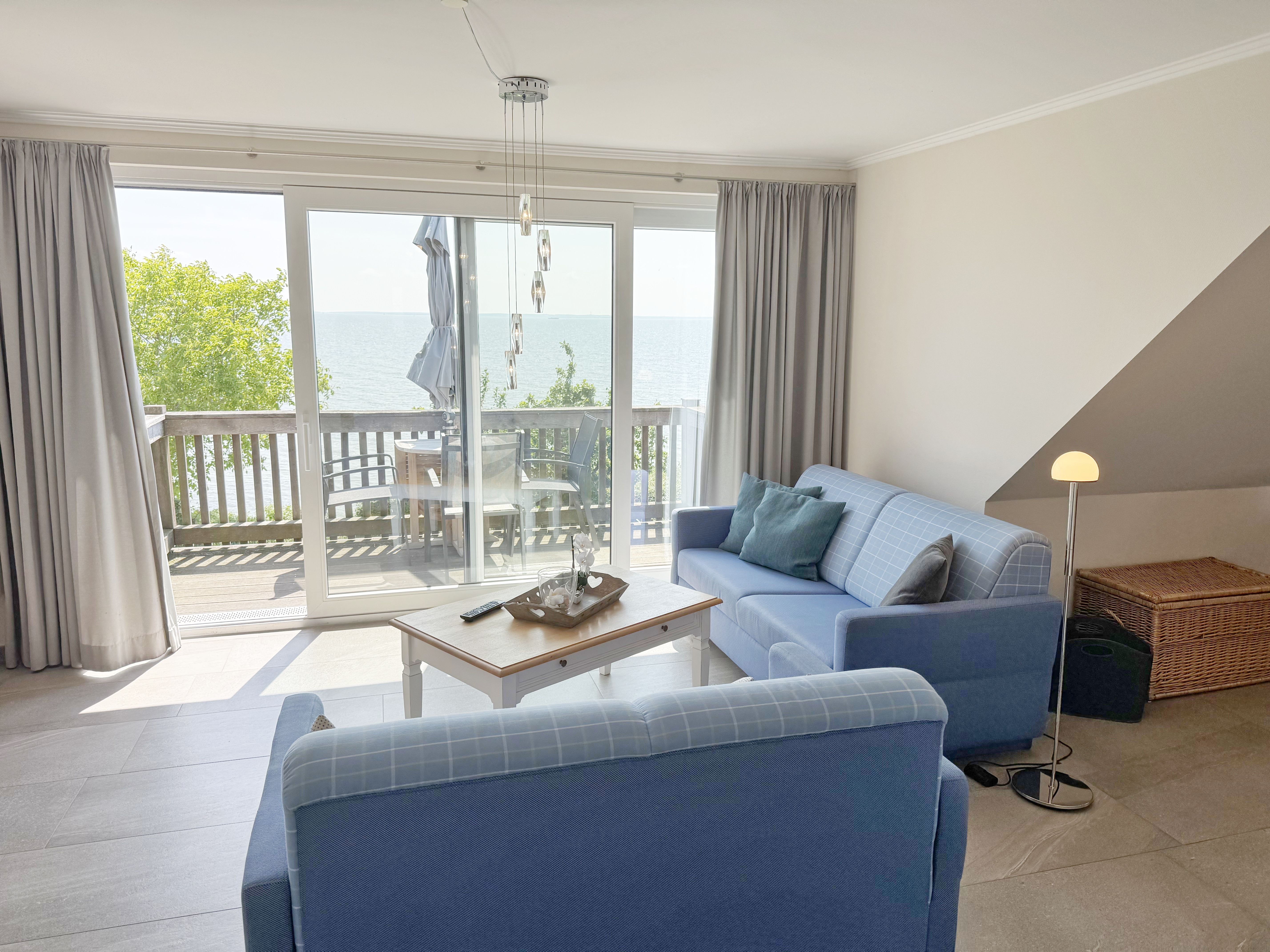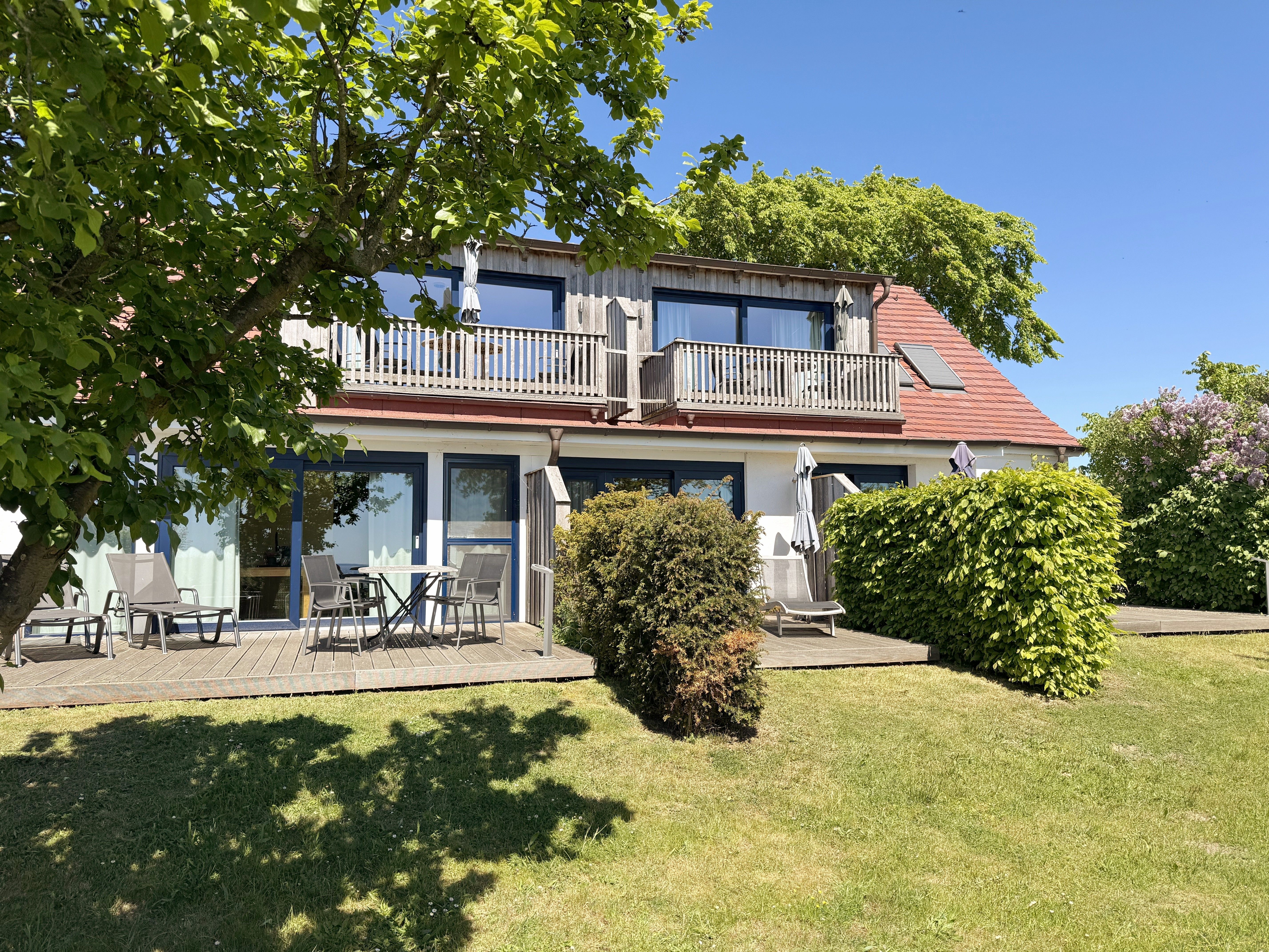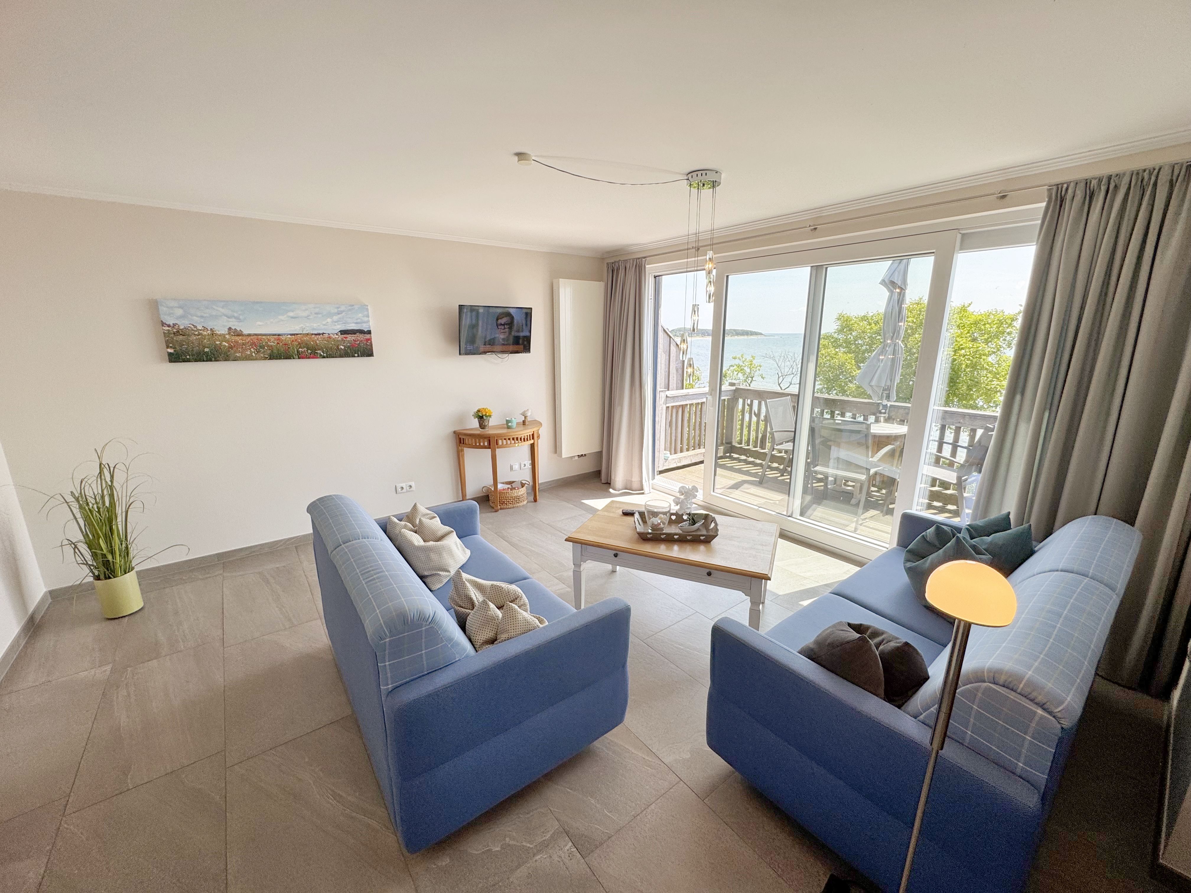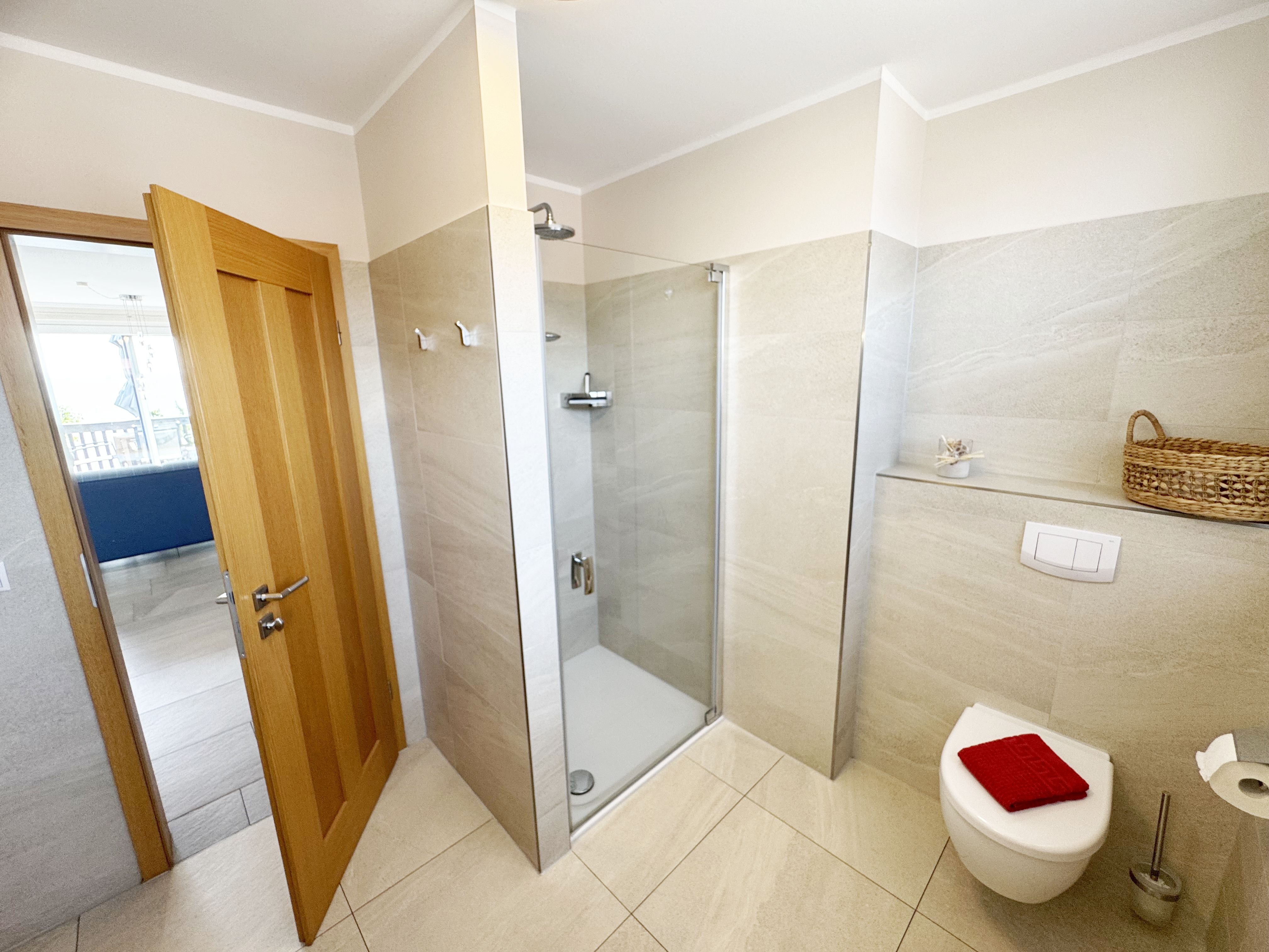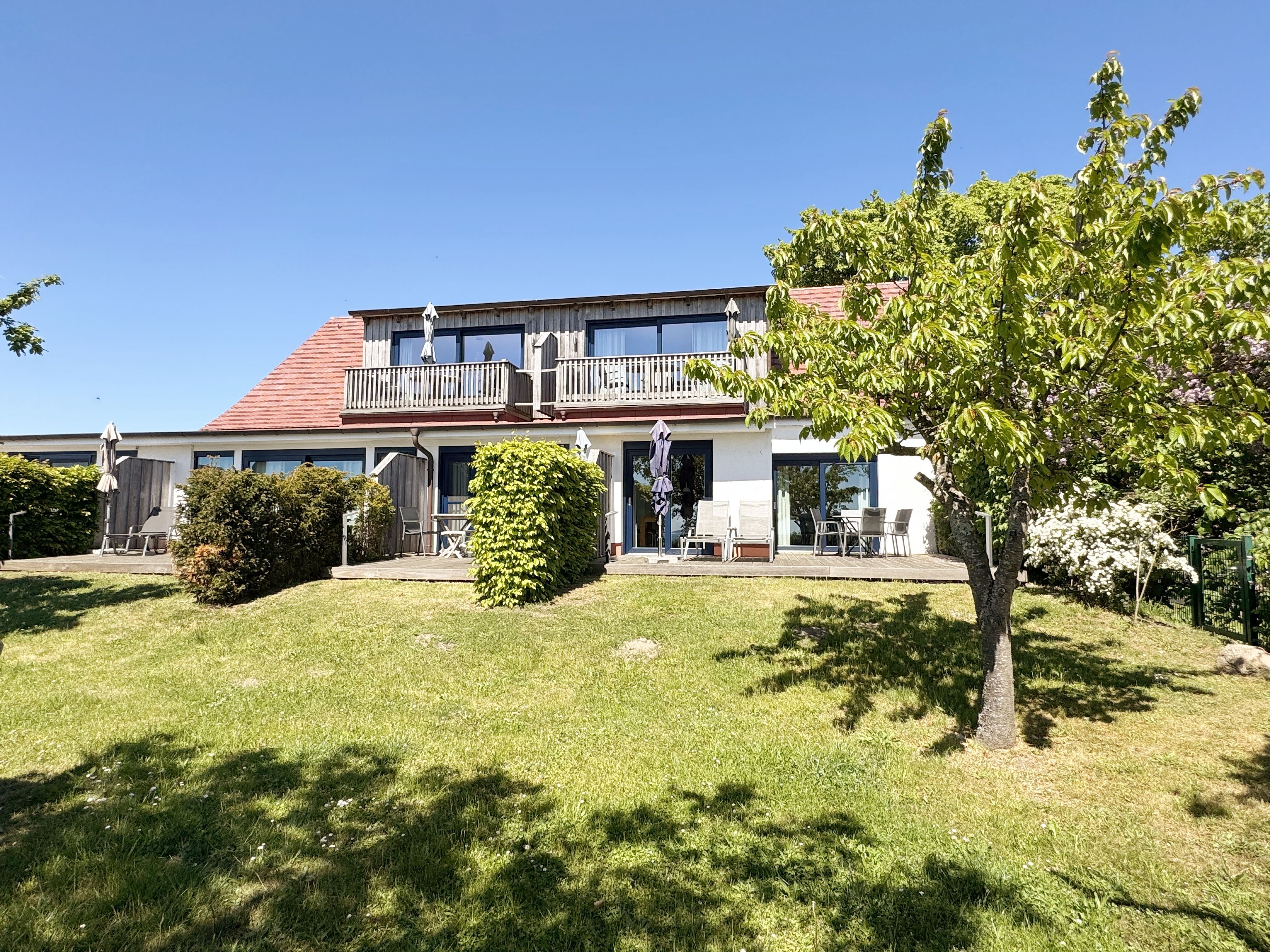 Die Ferienwohnung (Nichtraucher) Nr. 5, ca. 67,6 m², befindet ich im Obergeschoss eines 6 Familienhauses auf 4.500 m² großem Grundstück in Einzellage ohne Publikums- und PKW-Verkehr. Die Wohnung ist nach Süden ausgerichtet und verfügt über ein Badezimmer, ein verdunkelbares Schlafzimmer mit Doppelbett (Größe 1,80 m x 2,00 m) und Insektenschutz, einen ca. 35 m² großen Wohn- und Essbereich mit Schlafcouch (1,60m x 2,00m) sowie über einen ca. 6 m² großen Balkon. Die Matratze des Doppelbettes hat die Härtegrade 2 und 3. Das ausziehbare Schlafsofa verfügt über eine hochwertige Kaltschaummatratze. Von hier eröffnet sich ein grandioser Panoramablick über die unmittelbar vor dem Haus liegende Ostsee. Die einzigen Geräusche sind der Wind und das Rauschen des Meeres. Die Wohnung kann mit bis zu 2 Erwachsenen + 2 Kinder bis 15 Jahre belegt werden. Sie erfüllt in ihrer Ausstattung höchste Ansprüche. Erlesene Baumaterialien und Einrichtungsgegenstände vermitteln ein Gefühl des Genießens von Luxus. Nur beispielhaft sei erwähnt, dass das Badezimmer mit Granitwaschtisch, Fön, Fußbodenheizung und Handtuchheizkörper eingerichtet ist. In dem Flur und dem Wohn/Schlafraum sind hochwertige italienische Lake-Stone-Fliesen verlegt worden. Die moderne Küche beinhaltet einen Backofen mit Ceran-Kochfeld, Kühlschrank mit Gefrierfach und Geschirrspülmaschine. Die Küchenausstattung enthält an Kleinelektrogeräten Toaster, Kaffeemaschine, Wasser- und Eierkocher sowie Handmixer. Der Essbereich ist möbliert mit einem massiven Tisch aus geölter Wildeiche und Lederschwingstühlen in der Farbe mocca. Flachbildfernseher, Internetanschluss WLAN sowie Mini-Stereo Anlage mit USB sind vorhanden. Eine original finnische Sauna mit moderner Dusche und Ruheliegen steht allen Gästen gegen Gebühr zur Verfügung. Der Balkon ist mit komfortablen Möbeln für ein Genießen von Sonne, der nahen See und einem gemütlichen Beisammensein ausgerichtet. Die Parkplätze und ein überdachter Fahrradunterstand stehen kostenlos zur Verfügung. Ein ca. 3.000 m² großes Rasengrundstück, am Haus und an der Ostseeküste gelegen, steht zur Freizeitgestaltung mit Grillplatz zur Verfügung. Für unsere kleinen Gäste steht 1x Kinderreisebett (ohne Zusatzmatratze, ohne Bettinlett) und 1 Hochstuhl inklusive bereit. Haustiere sind nicht erlaubt. Die Erstausstattung eines Wäschepaketes (komplette Bettwäsche, 1 Duschhandtuch, 2 kleine Handtücher, 2 Geschirrhandtücher) können Sie bis 14 Tage vor Anreise gegen einen Aufpreis dazu buchen oder durch eigene ergänzen.