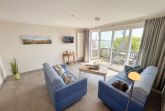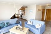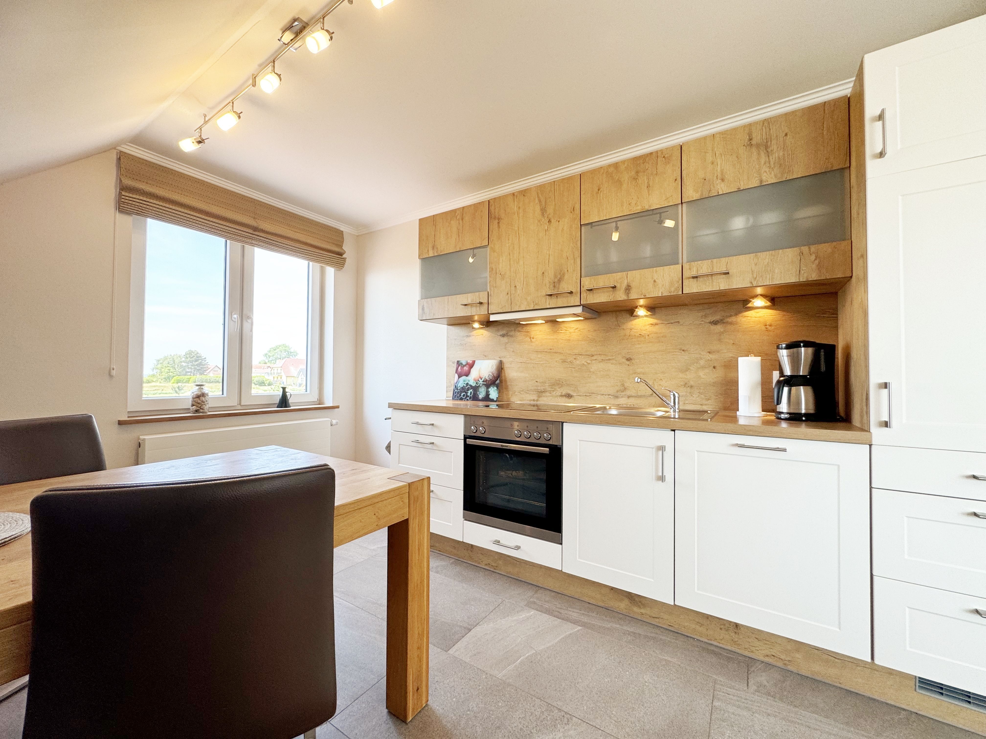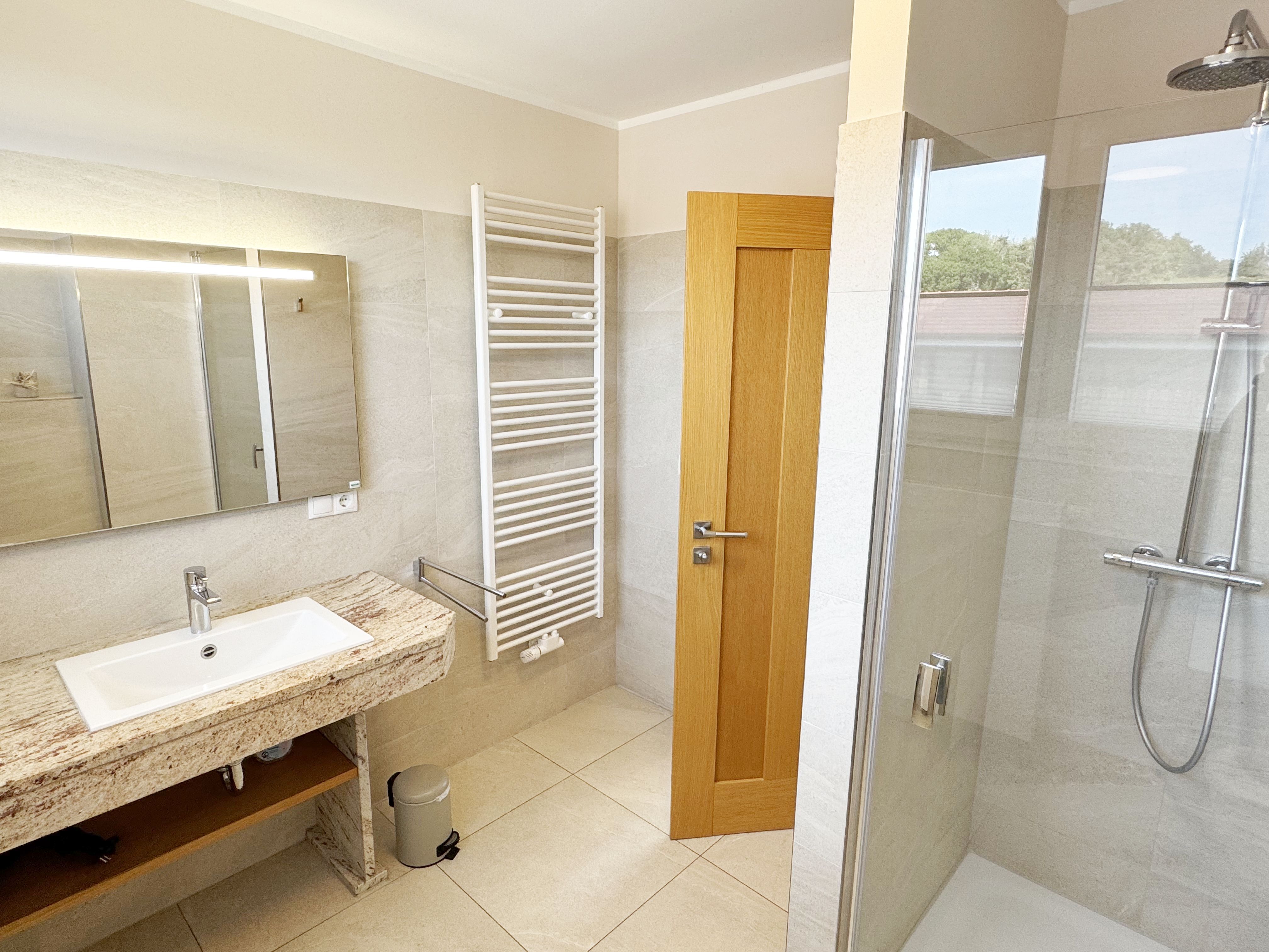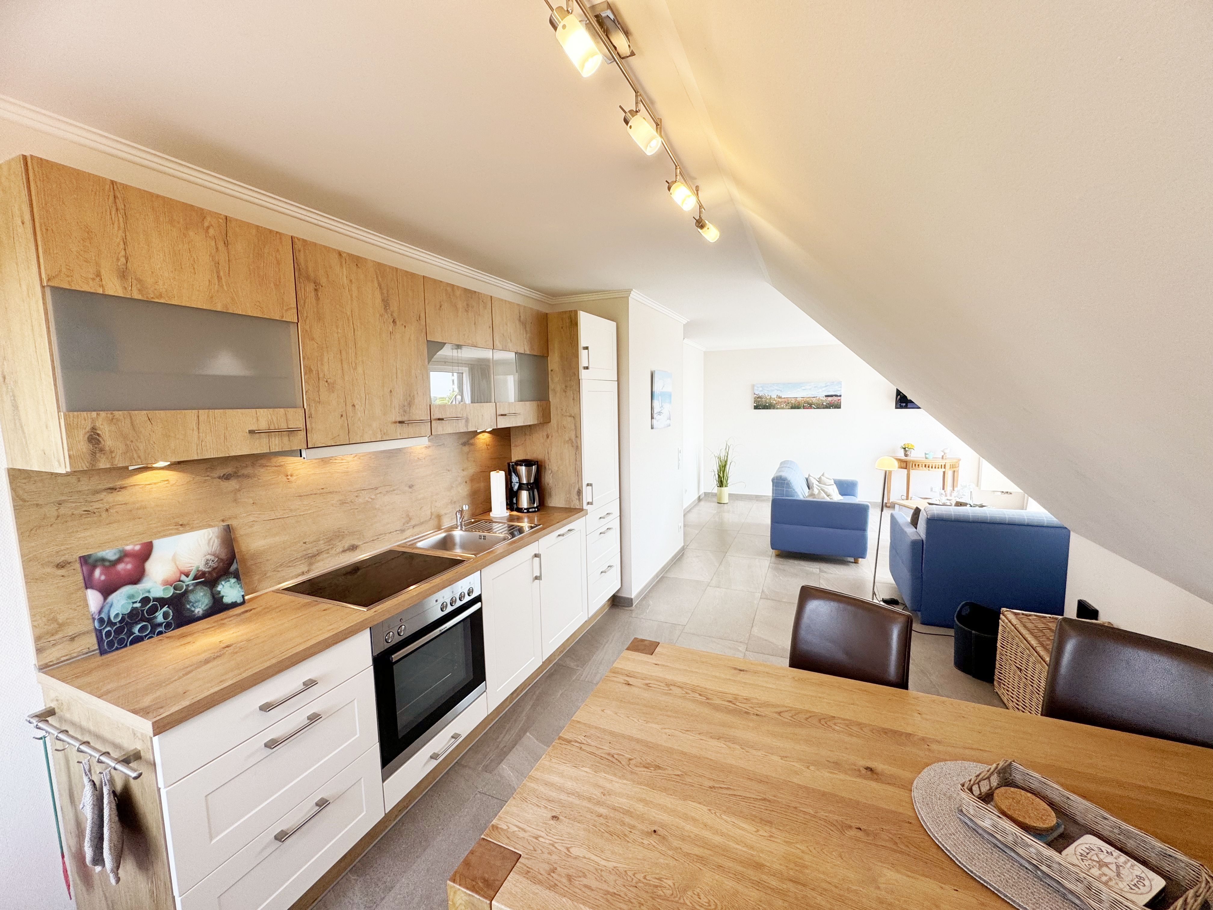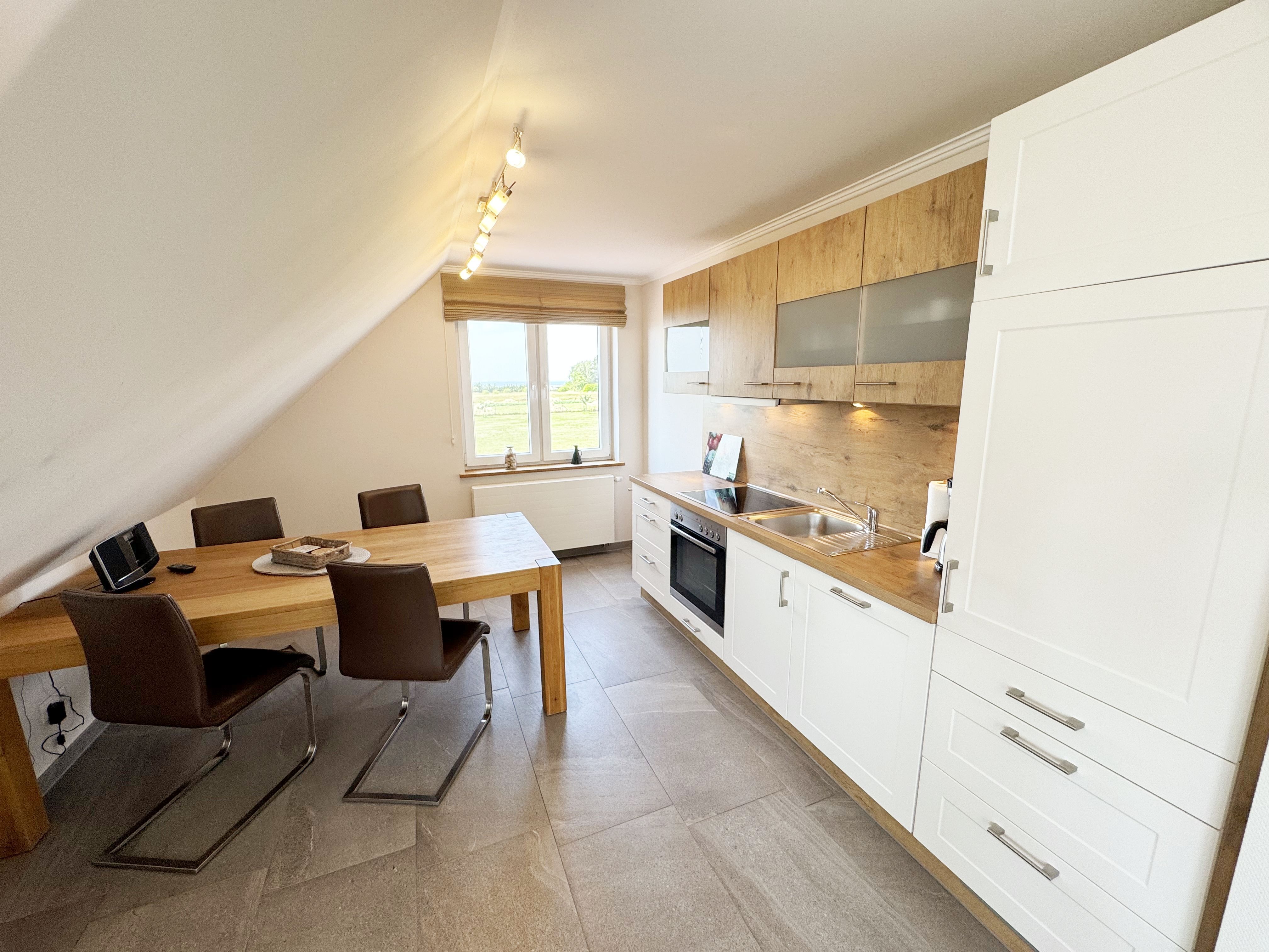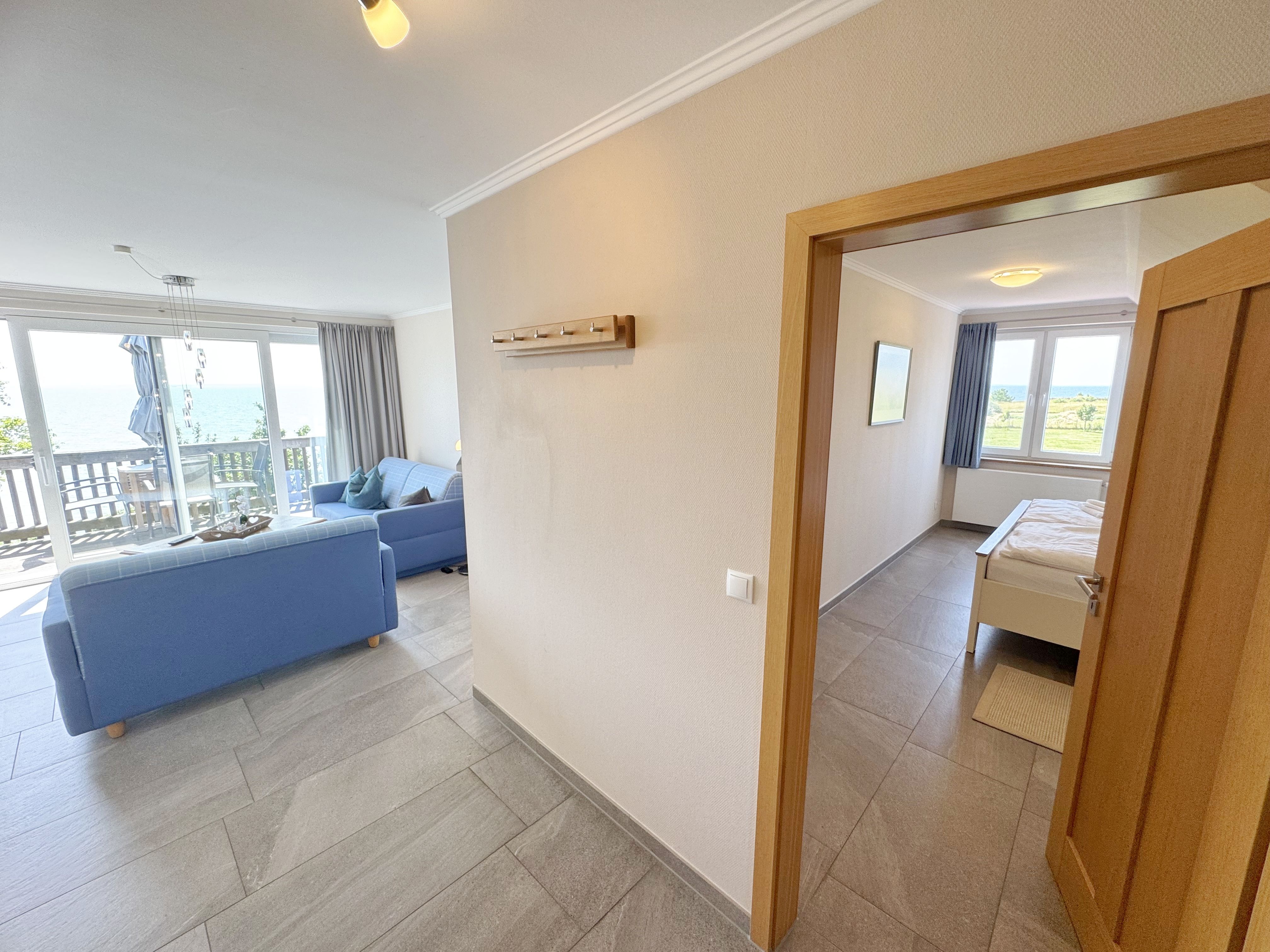 Die Ferienwohnung (Nichtraucher) Nr. 5, ca. 67,6 m², befindet ich im Obergeschoss eines 6 Familienhauses auf 4.500 m² großem Grundstück in Einzellage ohne Publikums- und PKW-Verkehr. Die Wohnung ist nach Süden ausgerichtet und verfügt über ein Badezimmer, ein verdunkelbares Schlafzimmer mit Doppelbett (Größe 1,80 m x 2,00 m) und Insektenschutz, einen ca. 35 m² großen Wohn- und Essbereich mit Schlafcouch (1,60m x 2,00m) sowie über einen ca. 6 m² großen Balkon. Die Matratze des Doppelbettes hat die Härtegrade 2 und 3. Das ausziehbare Schlafsofa verfügt über eine hochwertige Kaltschaummatratze. Von hier eröffnet sich ein grandioser Panoramablick über die unmittelbar vor dem Haus liegende Ostsee. Die einzigen Geräusche sind der Wind und das Rauschen des Meeres. Die Wohnung kann mit bis zu 2 Erwachsenen + 2 Kinder bis 15 Jahre belegt werden. Sie erfüllt in ihrer Ausstattung höchste Ansprüche. Erlesene Baumaterialien und Einrichtungsgegenstände vermitteln ein Gefühl des Genießens von Luxus. Nur beispielhaft sei erwähnt, dass das Badezimmer mit Granitwaschtisch, Fön, Fußbodenheizung und Handtuchheizkörper eingerichtet ist. In dem Flur und dem Wohn/Schlafraum sind hochwertige italienische Lake-Stone-Fliesen verlegt worden. Die moderne Küche beinhaltet einen Backofen mit Ceran-Kochfeld, Kühlschrank mit Gefrierfach und Geschirrspülmaschine. Die Küchenausstattung enthält an Kleinelektrogeräten Toaster, Kaffeemaschine, Wasser- und Eierkocher sowie Handmixer. Der Essbereich ist möbliert mit einem massiven Tisch aus geölter Wildeiche und Lederschwingstühlen in der Farbe mocca. Flachbildfernseher, Internetanschluss WLAN sowie Mini-Stereo Anlage mit USB sind vorhanden. Eine original finnische Sauna mit moderner Dusche und Ruheliegen steht allen Gästen gegen Gebühr zur Verfügung. Der Balkon ist mit komfortablen Möbeln für ein Genießen von Sonne, der nahen See und einem gemütlichen Beisammensein ausgerichtet. Die Parkplätze und ein überdachter Fahrradunterstand stehen kostenlos zur Verfügung. Ein ca. 3.000 m² großes Rasengrundstück, am Haus und an der Ostseeküste gelegen, steht zur Freizeitgestaltung mit Grillplatz zur Verfügung. Für unsere kleinen Gäste steht 1x Kinderreisebett (ohne Zusatzmatratze, ohne Bettinlett) und 1 Hochstuhl inklusive bereit. Haustiere sind nicht erlaubt. Die Erstausstattung eines Wäschepaketes (komplette Bettwäsche, 1 Duschhandtuch, 2 kleine Handtücher, 2 Geschirrhandtücher) können Sie bis 14 Tage vor Anreise gegen einen Aufpreis dazu buchen oder durch eigene ergänzen.
