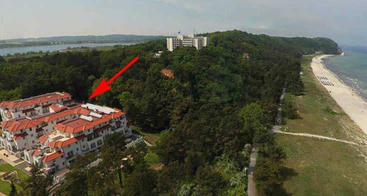 Großzügige 2-Zimmer-Ferienwohnung mit Balkon und schönem Blick ins Grüne mit WLAN für 4 Personen, extra Fernseher im Schlafzimmer, in der ersten Etage im Haus Meeresblick, eine 2013 fertiggestellte Ferienresidenz mit Schwimmbad und Sauna und Massagebereich. Von hier haben Sie einen direkten Zugang zum Strand. Das Haus ist mit einem Lift, einer Tiefgarage und einem großen Wellnessbereich mit Schwimmbad (ca. 8,00 m x 4,00 m - 1,35 m tief), zwei Saunen (eine finnische Sauna/eine Bio-Sauna) und einem Massagebereich ausgestattet. Der Wellnessbereich ist ganzjährig geöffnet.