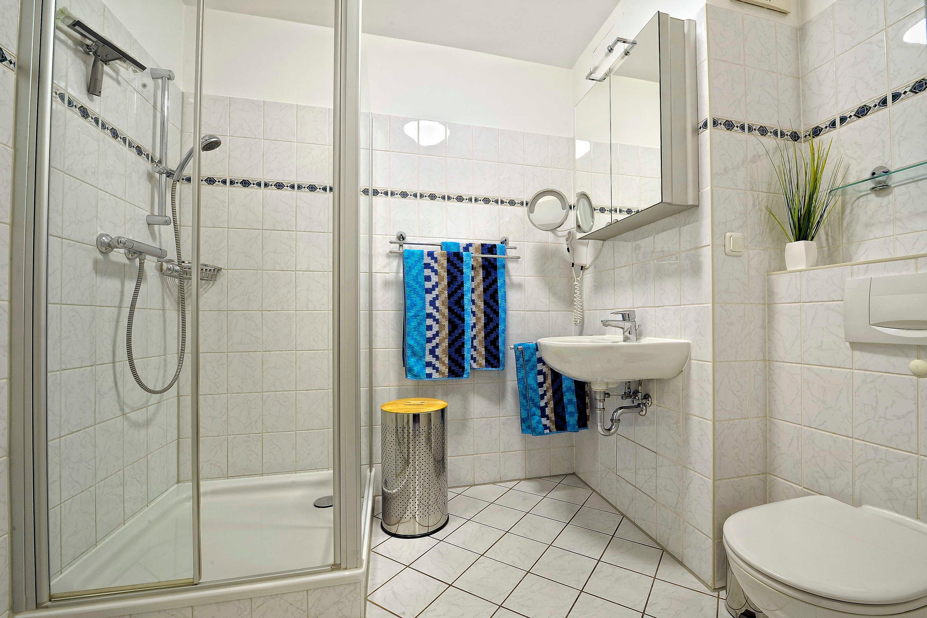 Das Duschbad ist renoviert und modernisiert, hat eine große