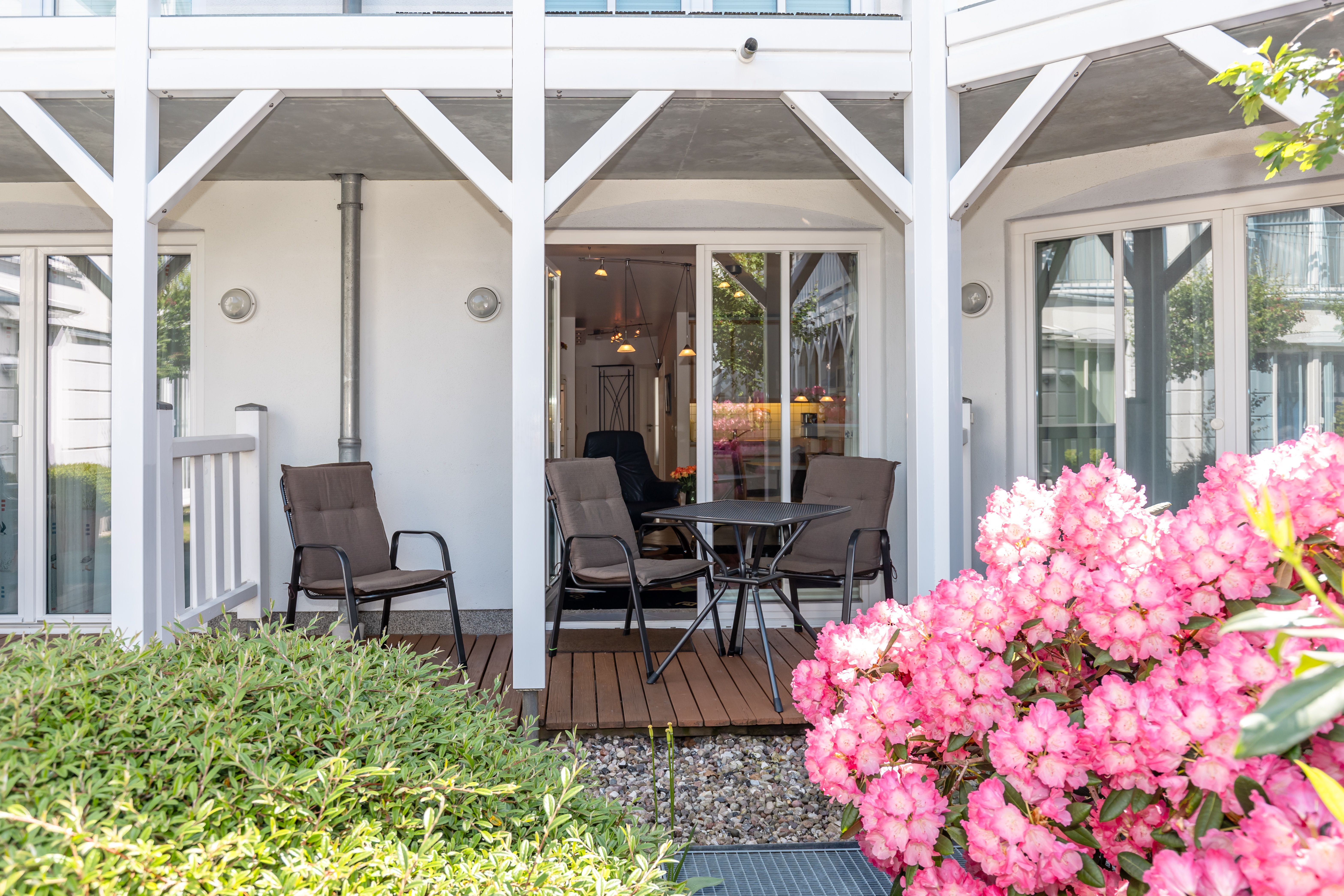 Komfortable EG-Ferienwohnung mit überdachter Terrasse, schnellem WLan, eigenem Parkplatz und abschließbarem Kellerraum für 2 Räder.