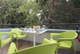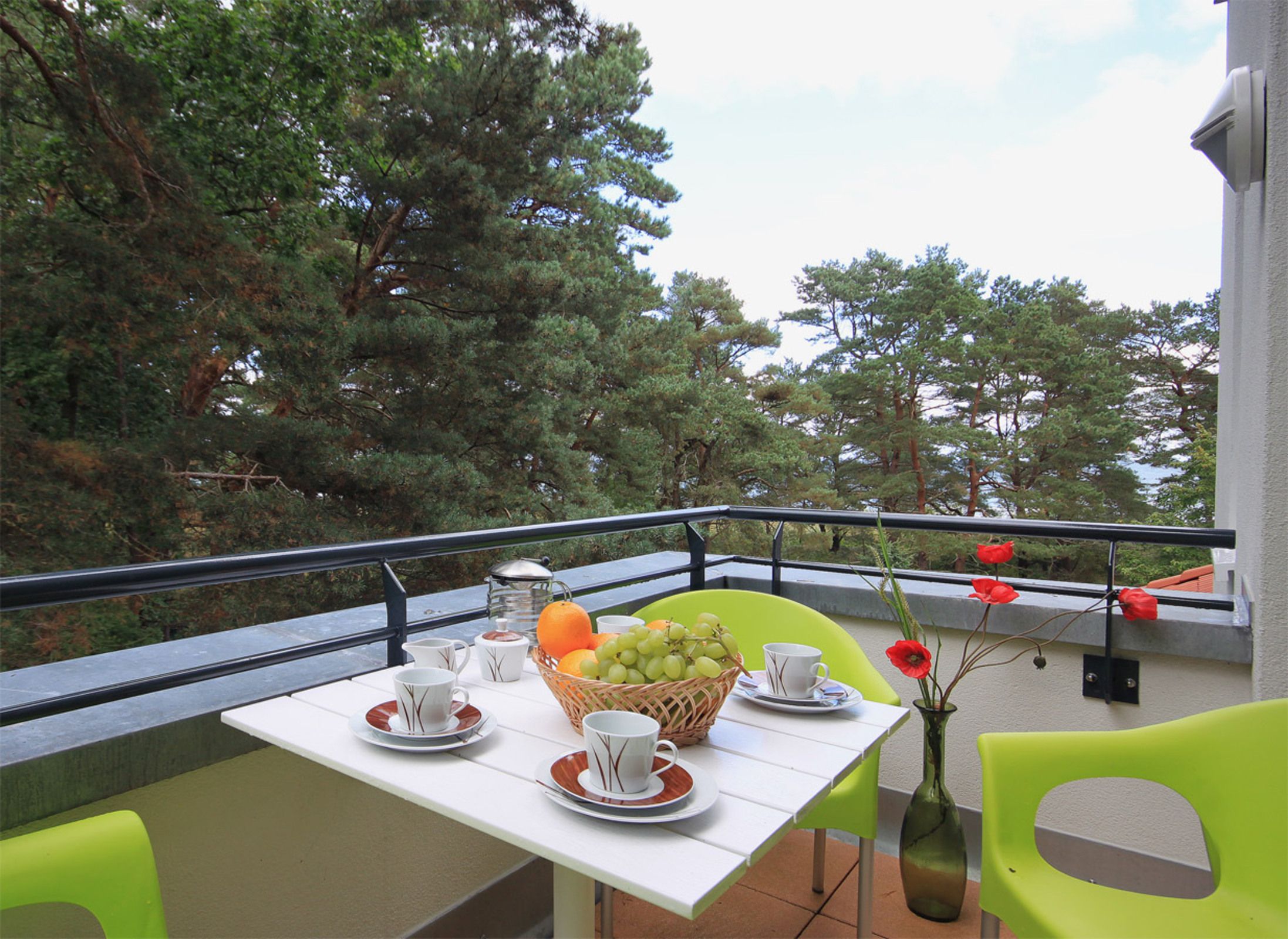 Der möblierte Balkon bietet einen schönen und leicht seitlichen Blick in Richtung Meer.