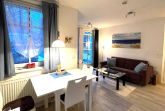 Die modern eingerichtete 2-Zimmer-Ferienwohnung Seeschwalbe liegt im zweiten Stock der Residenz Haus Meeresblick. Genießen Sie diese herrlich direkte Strandlage und den seitlichen Meerblick über die Dünen mit dem Kiefernwäldchen.