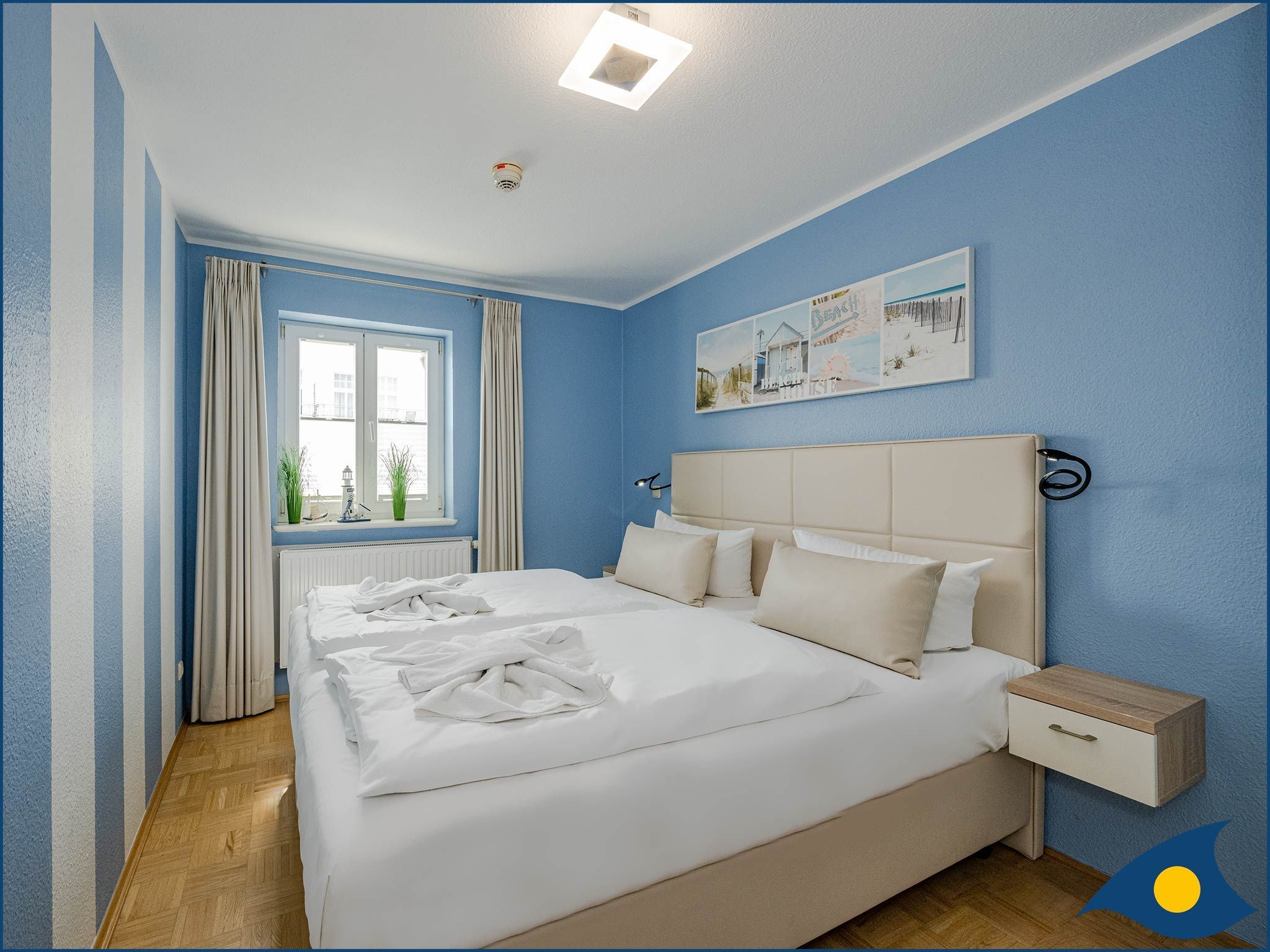 Die beiden Schlafzimmer sind jeweils mit einem bequemen Doppelbett ausgestattet und werden durch ein 2. Fernsehgerät gerne als Rückzugsort genutzt. Durch den geräumigen Grundriss kann in den Schlafzimmern bequem ein Kinderreisebett aufgestellt werden. Dieses stellen wir Ihnen gerne auf Anfrage für einmalig 15 € zur Verfügung.
