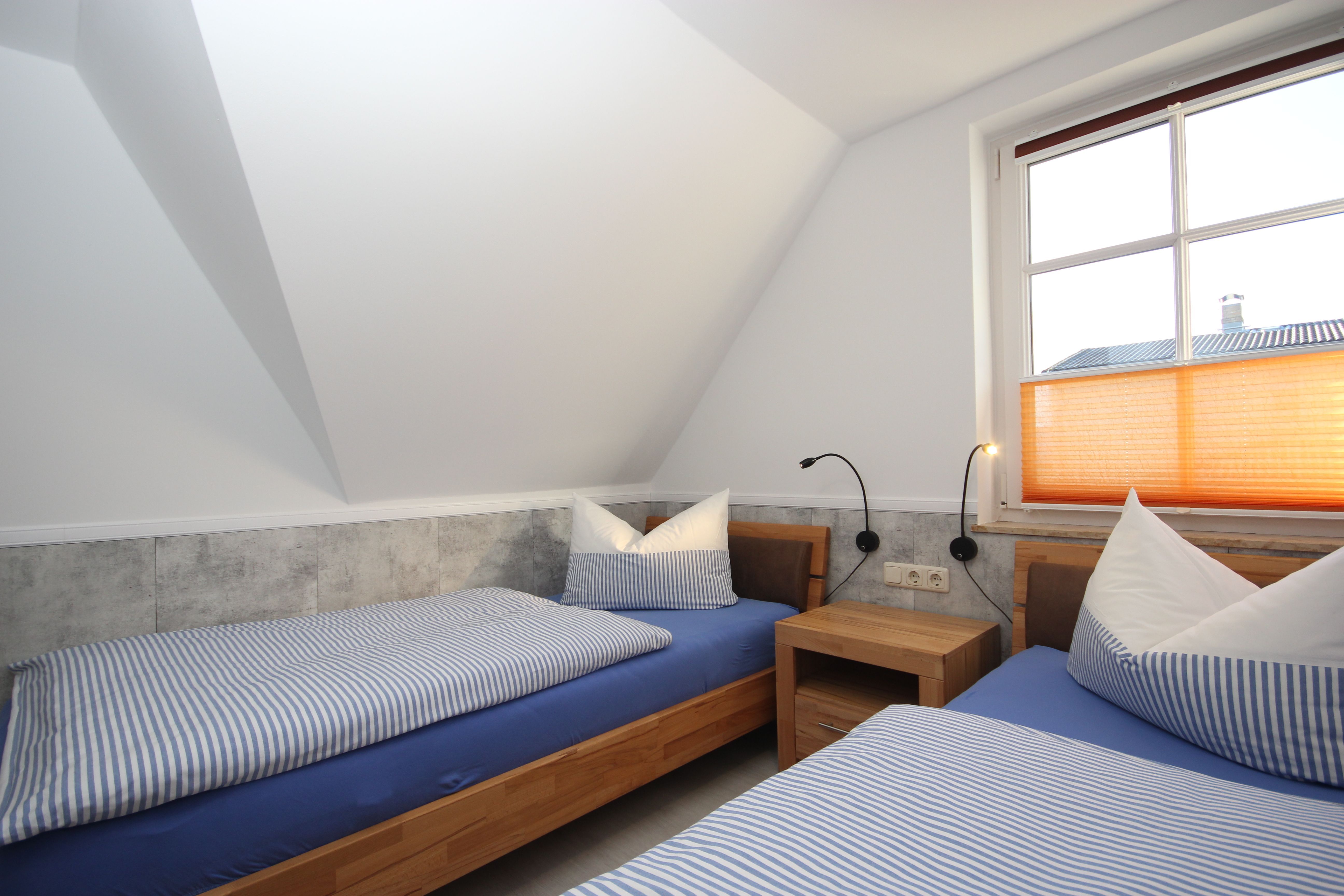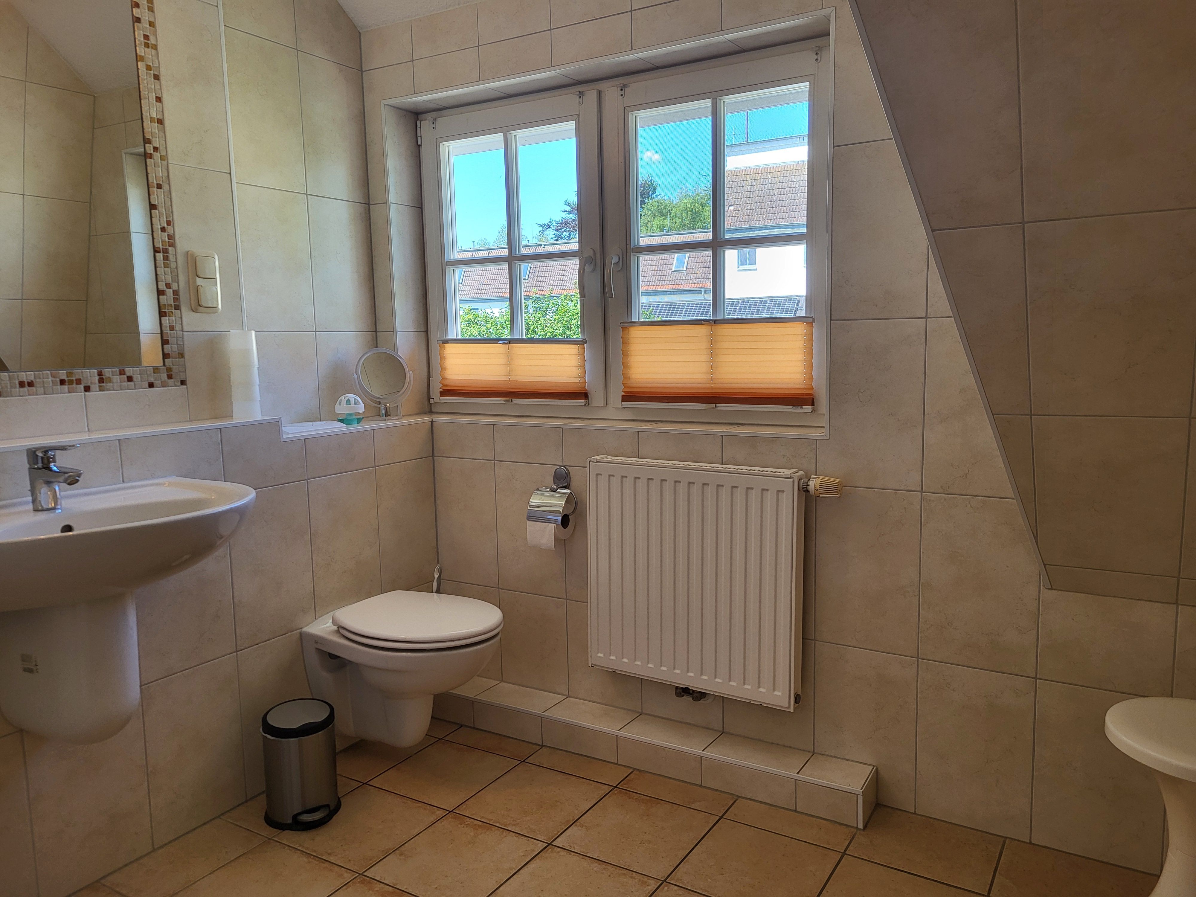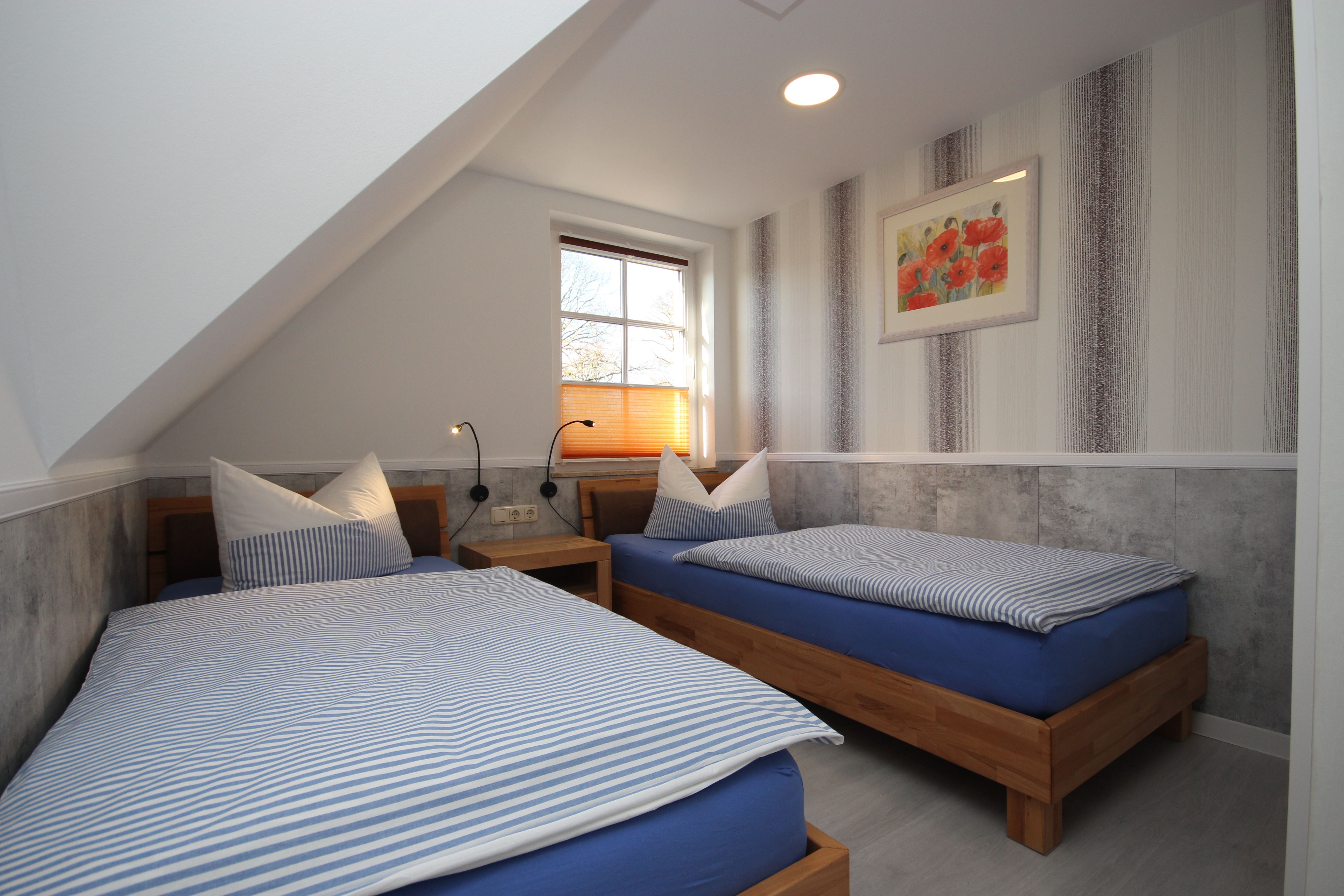 die lichtdurchflutete Wohnung mit separatem Eingang liegt im Obergeschoss mit Balkon (Süd- West- Ausrichtung) . Der Balkon ist überdacht und lädt bei jedem Wetter zum gemeinsamen Beisammensein ein.Die Ferienwohnung liegt in einer sehr ruhiger Lage und der feinsandige Strand ist nur wenige Minuten entfernt.Das Wohnzimmer ist mit einer gemütlichen Couch, SAT- TVund Radio. Für unsere Gäste ist das WLAN kostenlos. Im 1. Schlafzimmer befindet sich ein Doppelbett ( 1,80 x 2,00 m) und getrennten Matratzen und ein großer Kleiderschrank mit viel Stauraum. Das 2. Schlafzimmer verfügt über 2 Einzelbetten 0,90 x 2,00 cm. Die offene Küchenzeile mit Ihrer komfortablen Ausstattung, wie Geschirrspüler, Mikrowelle, 4- Platten- Cerankochfeld, Kaffeemaschine, Toaster , Wasserkocher und einem Essplatz lädt unsere Gäste zum gemeinsamen kochen ein.Die Wohnung wird mit Bettwäsche und Handtücher (jeweils pro Person 1 Badehandtuch und ein kleines Handtuch) übergeben.Das großzügige Bad ist mit einer Dusche ausgestattet. Ein Fahrradcarport nicht verschließbar kann auf dem Grundstück genutzt werden. Unsere Wohnungen sind Nichtraucherwohnungen. Die Ferienwohnung ist nicht für Kinder unter 5 Jahren geeignet.