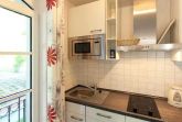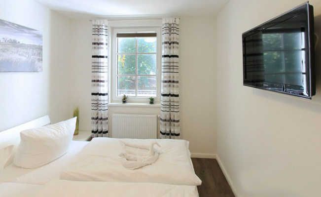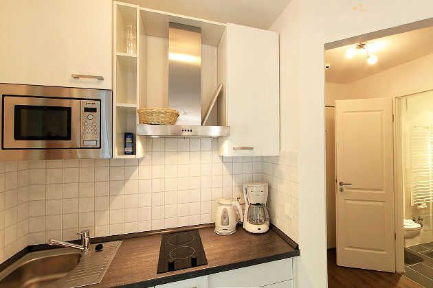 Schön, ruhig und über Eck liegt die Nichtraucher-Ferienwohnung Sandrose im strandnahen Haus Meeresblick. Sie ist für vier Personen eingerichtet - zwei können im separaten Schlafzimmer mit Doppelbett und zweitem Fernseher übernachten, zwei weitere Personen auf dem Schlafsofa, das im Wohn-/Essbereich steht. Dieser ist außerdem mit Radio und TV ausgestattet. In diesem Bereich ist die Küchenzeile harmonisch integriert. Sie ist mit einem Kühlschrank, einem Zweiplattenherd, einer Spülmaschine, einer Mikrowelle mit Grillfunktion sowie einer Kaffeemaschine und einem Toaster ausgestattet.