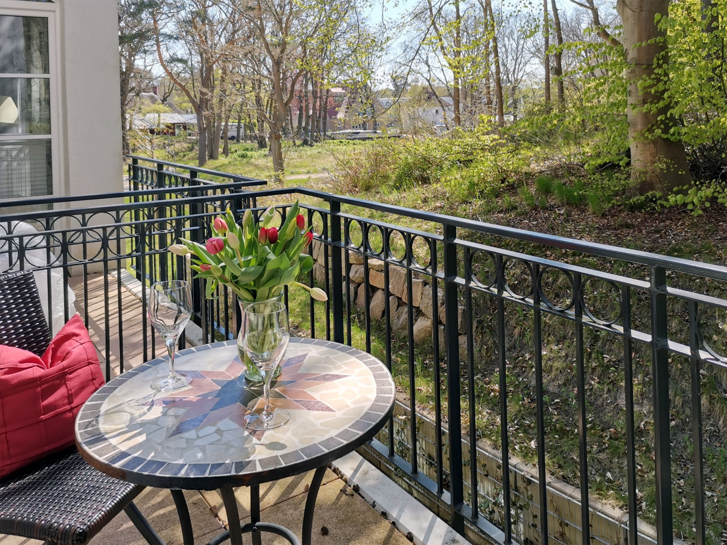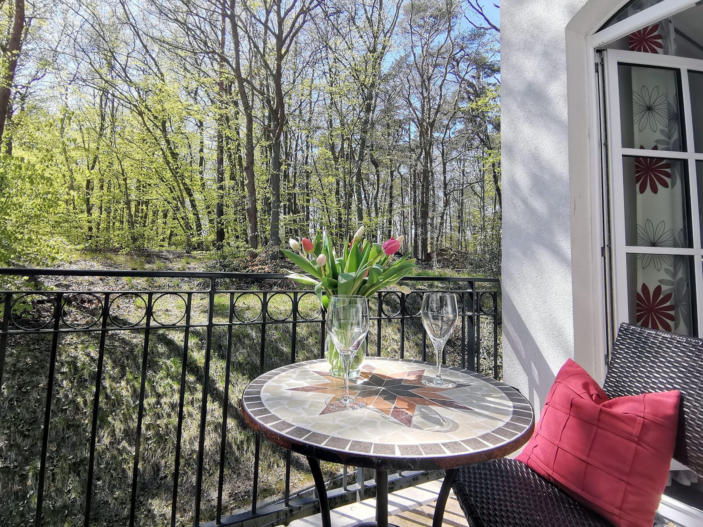 Diese strandnahe Ferienwohnung für 2-4 Personen mit separatem Schlafzimmer und Balkon liegt im ersten Obergeschoss der Residenz Haus Meeresblick direkt in den Dünen von Baabe. Vom Balkon haben Sie einen schönen Blick ins Grüne.