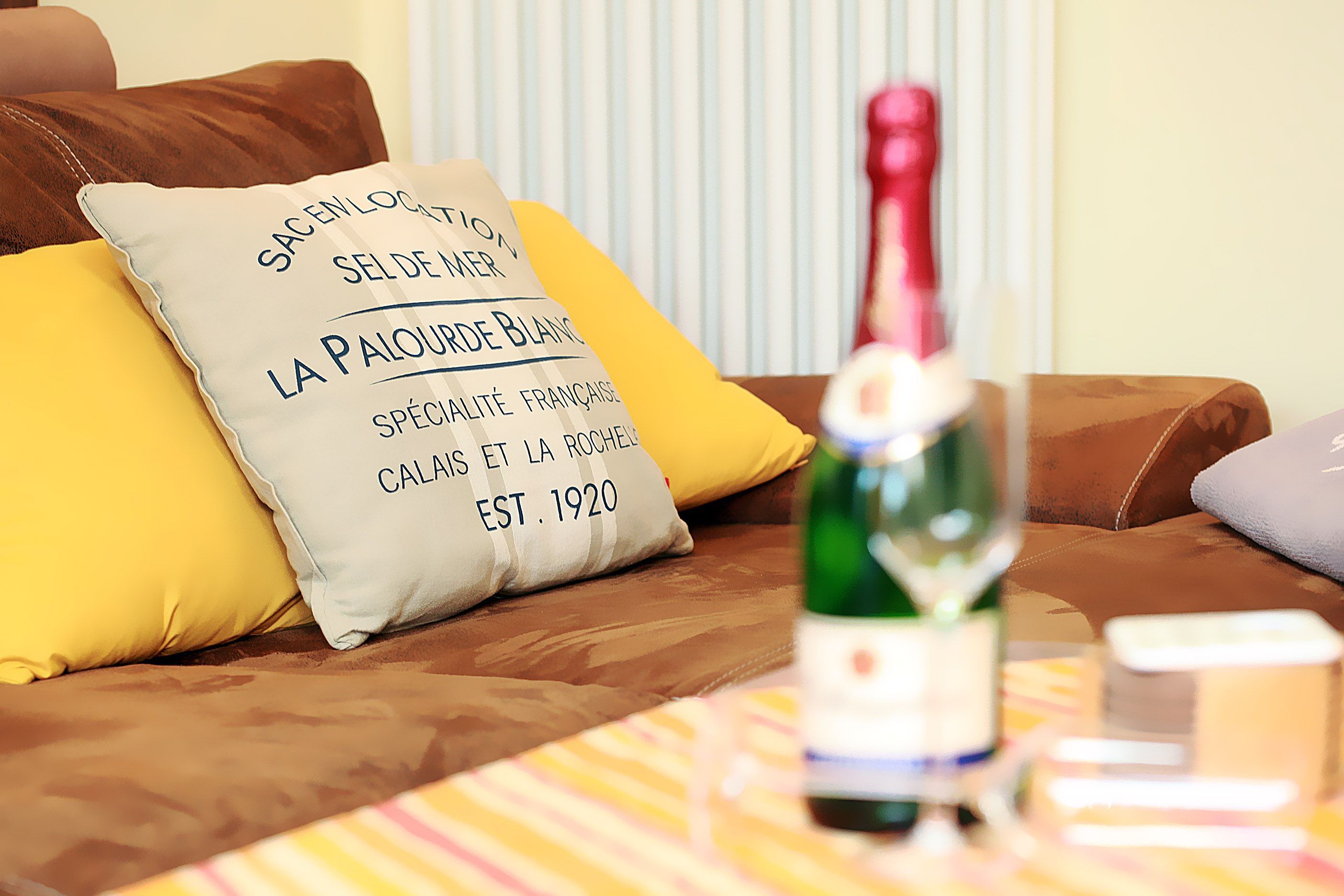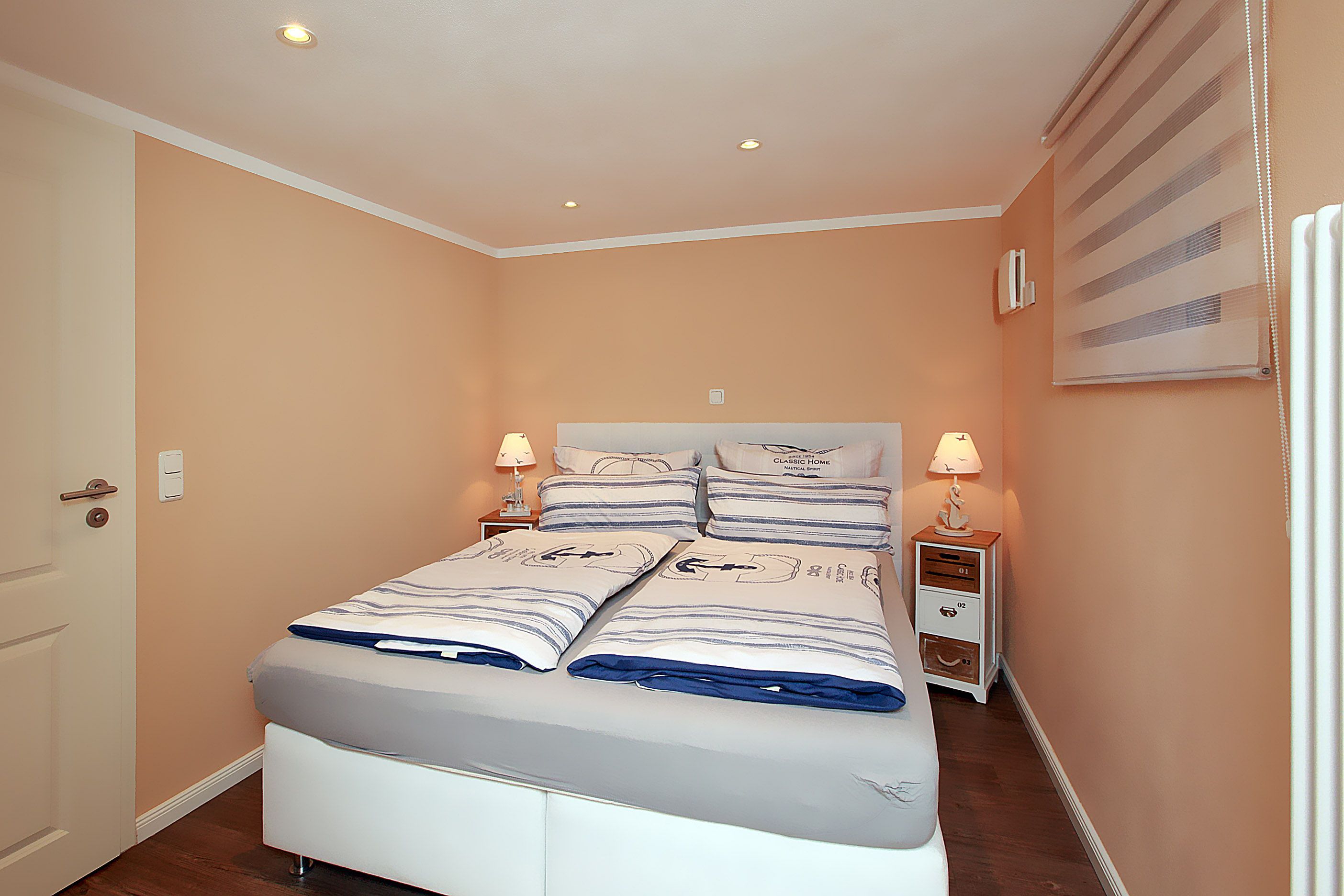 Im liebevoll eingetrichterten Schlafzimmer befindet sich ein Doppelbett 1,60 x 2,00 m. Die Bettwäsche ist inklusive und die Handtücher können Sie gegen eine Gebühr von 8,00 € pro Set dazu buchen.