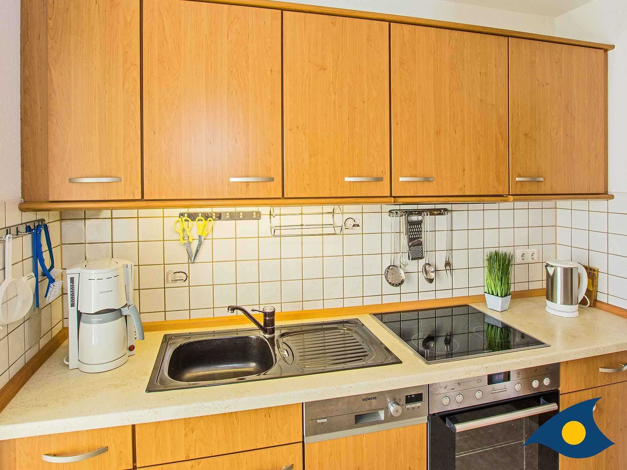 Das geräumige, modern, hochwertig und liebevoll eingerichtete Appartement verfügt über einen Balkon mit Meerblick. Zwei Schlafzimmer (eins davon mit getrennten Betten) und zwei Badezimmer, jeweils mit Dusche und WC bieten beste Voraussetzungen für den Urlaub mit der Familie. Zur Ausstattung gehört ein zweites Fernsehgerät. In der komfortabel ausgestatteten Küche finden Sie unter anderem einen großen Kühlschrank und einen Herd mit Backofen. Genießen Sie die reizvolle Rundumsicht auf dem Balkon und die ruhige Lage dieser Wohnung.