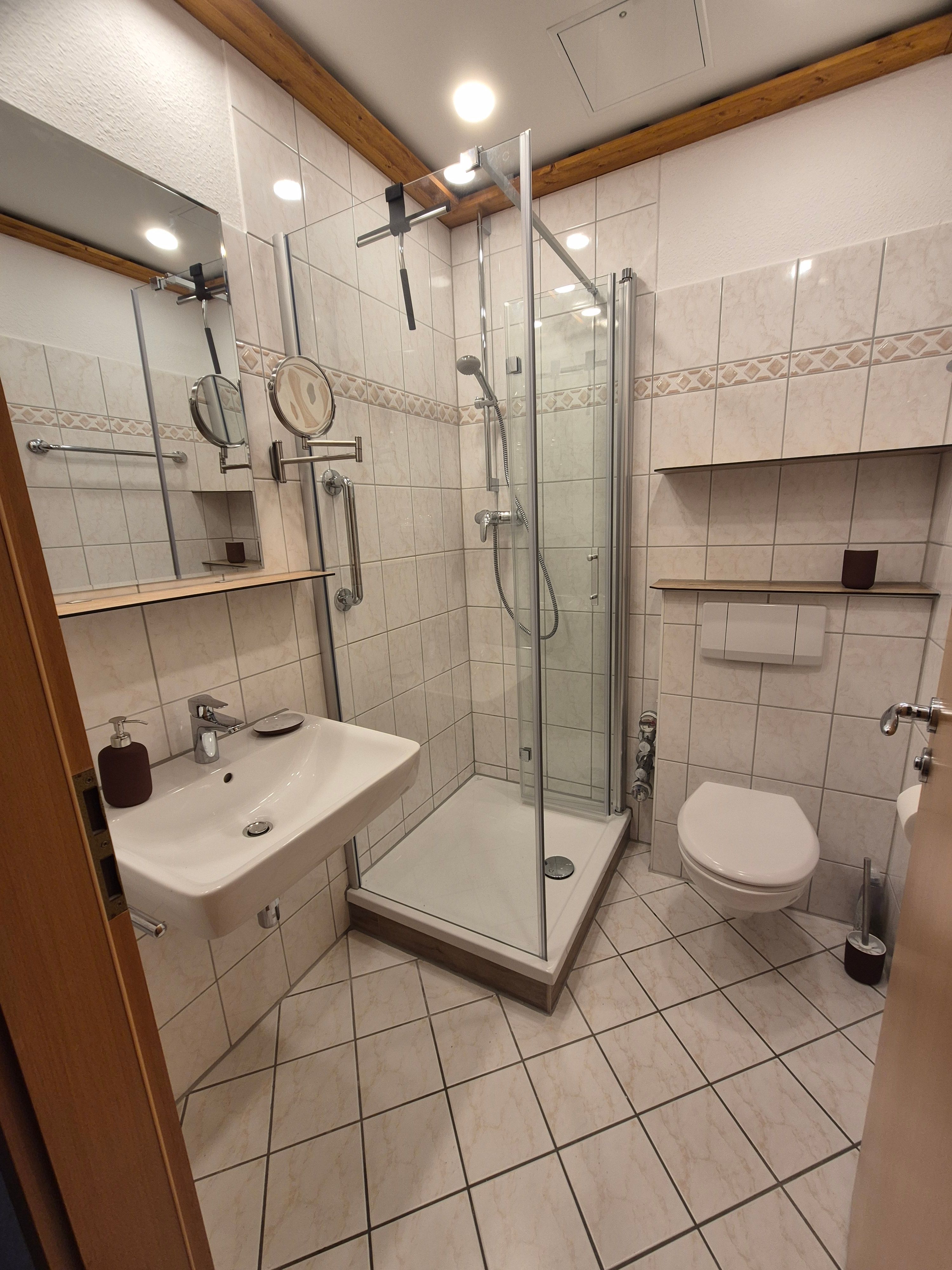 • Das Bad ist mit Dusche, WC und Fön ausgestattet. Pro Person liegen für Sie ein großes und ein kleines Handtuch bereit.