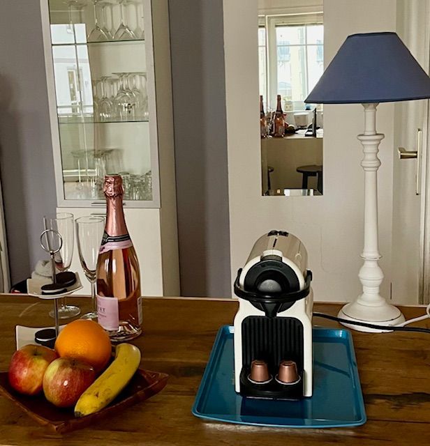 Die Küche ist mit einer Spülmaschine sowie einem Herd mit Ceranfeld und Backofen ausgestattet. Für einen schwungvollen Start in den Morgen steht Ihnen eine Nespressomaschine zur Verfügung.