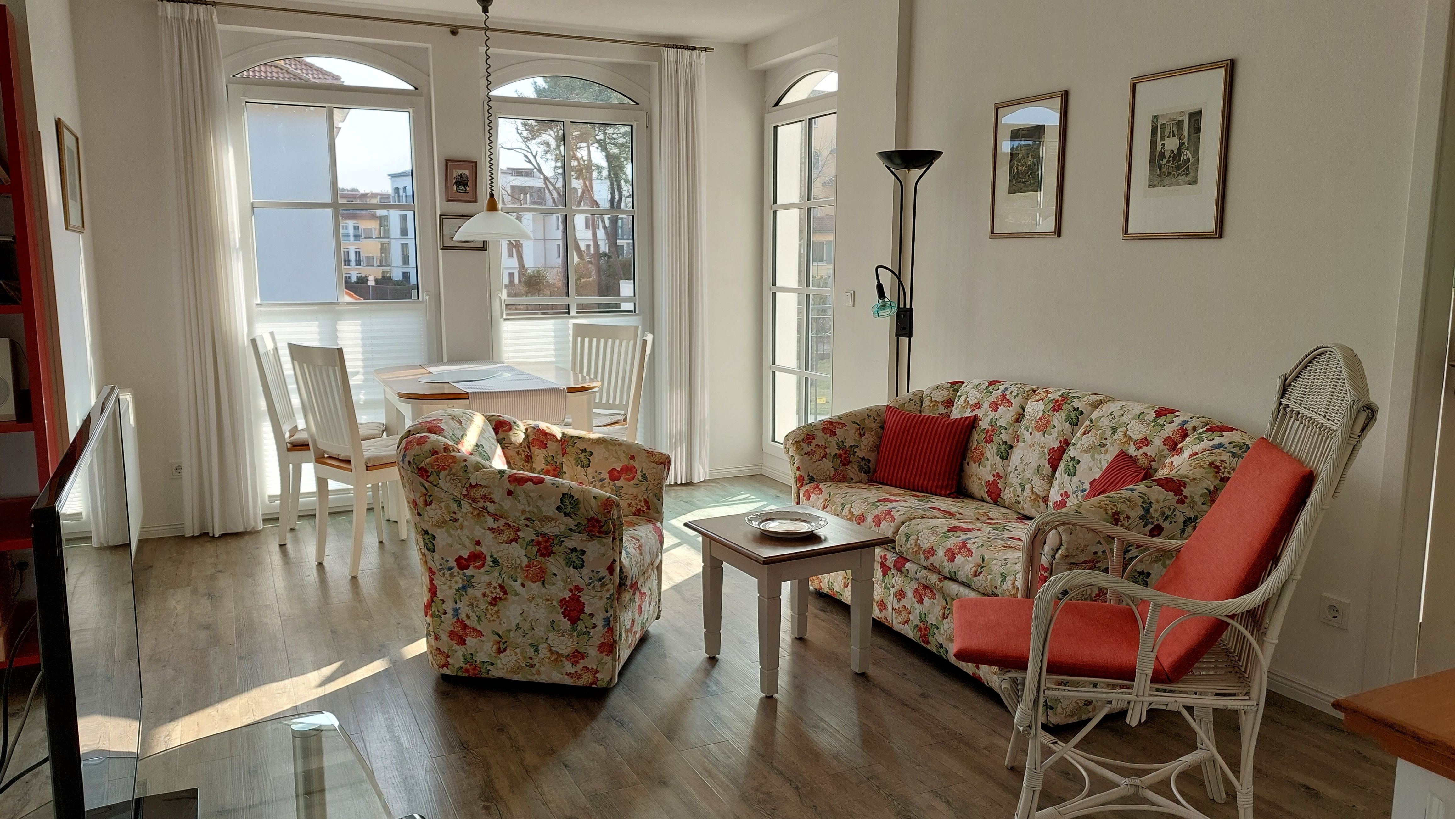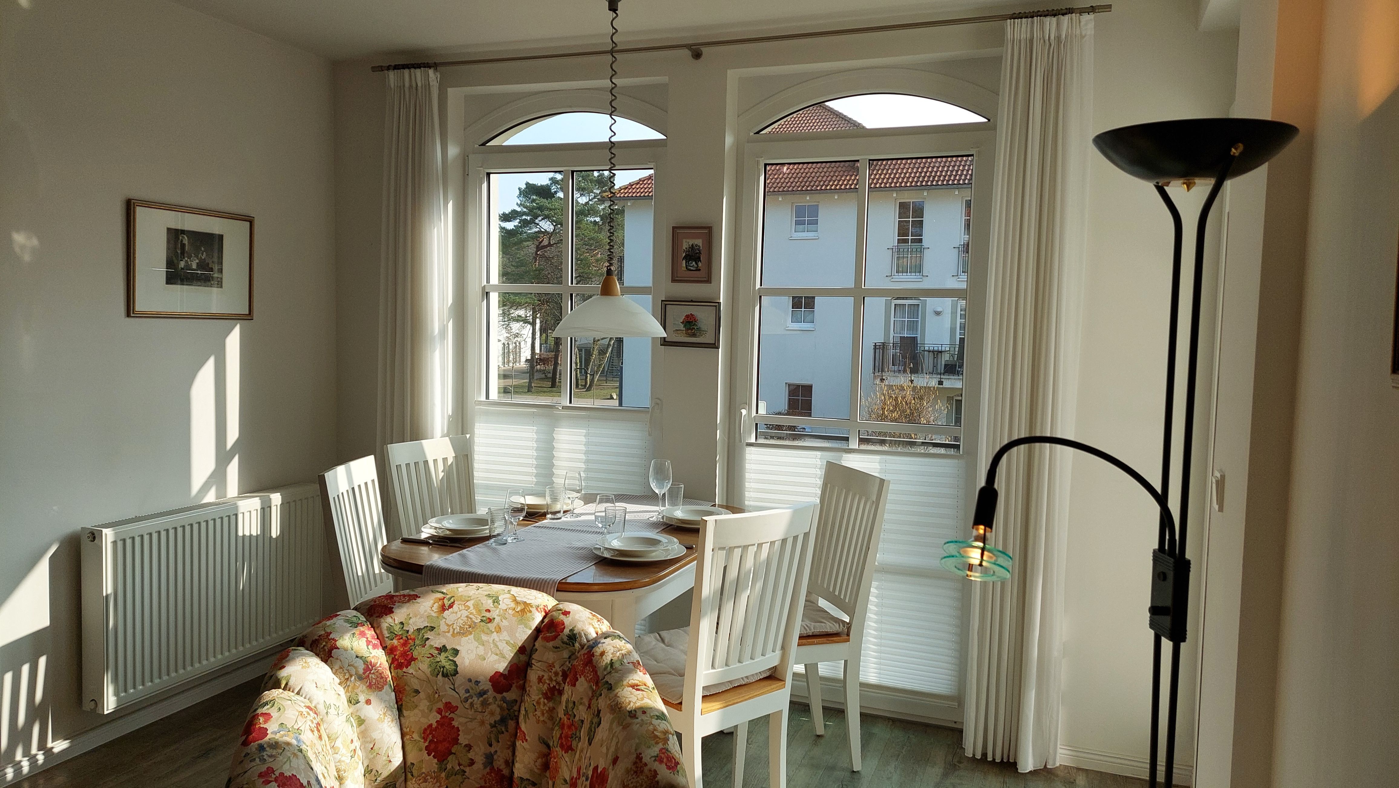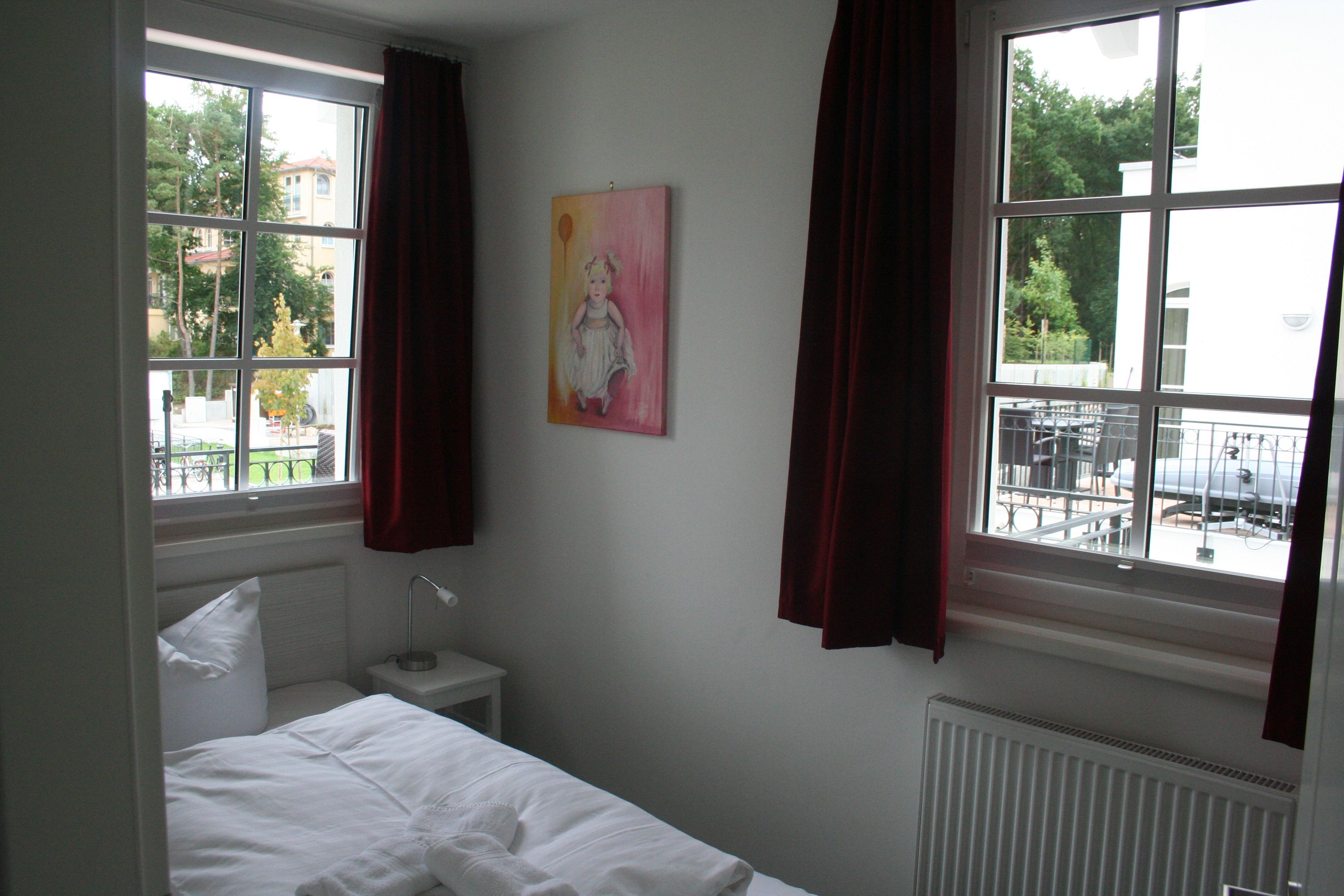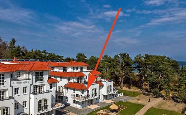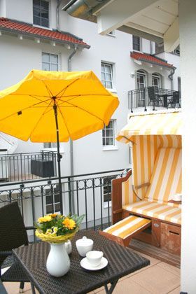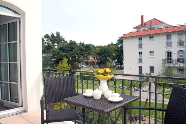 Sonnige Ferienwohnung für 2 - 3 Personen mit 2 Schlafzimmern und schönen möbliertem Balkon mit Blick zum Kurpark, WLAN vorhanden. Die Ferienwohnung liegt in der 1. Etage des  Hauses. Das erst 2013 neu eröffnete Haus Meeresblick mit Schwimmbad, Massage- und Saunabereich liegt direkt am Strand von Baabe.
