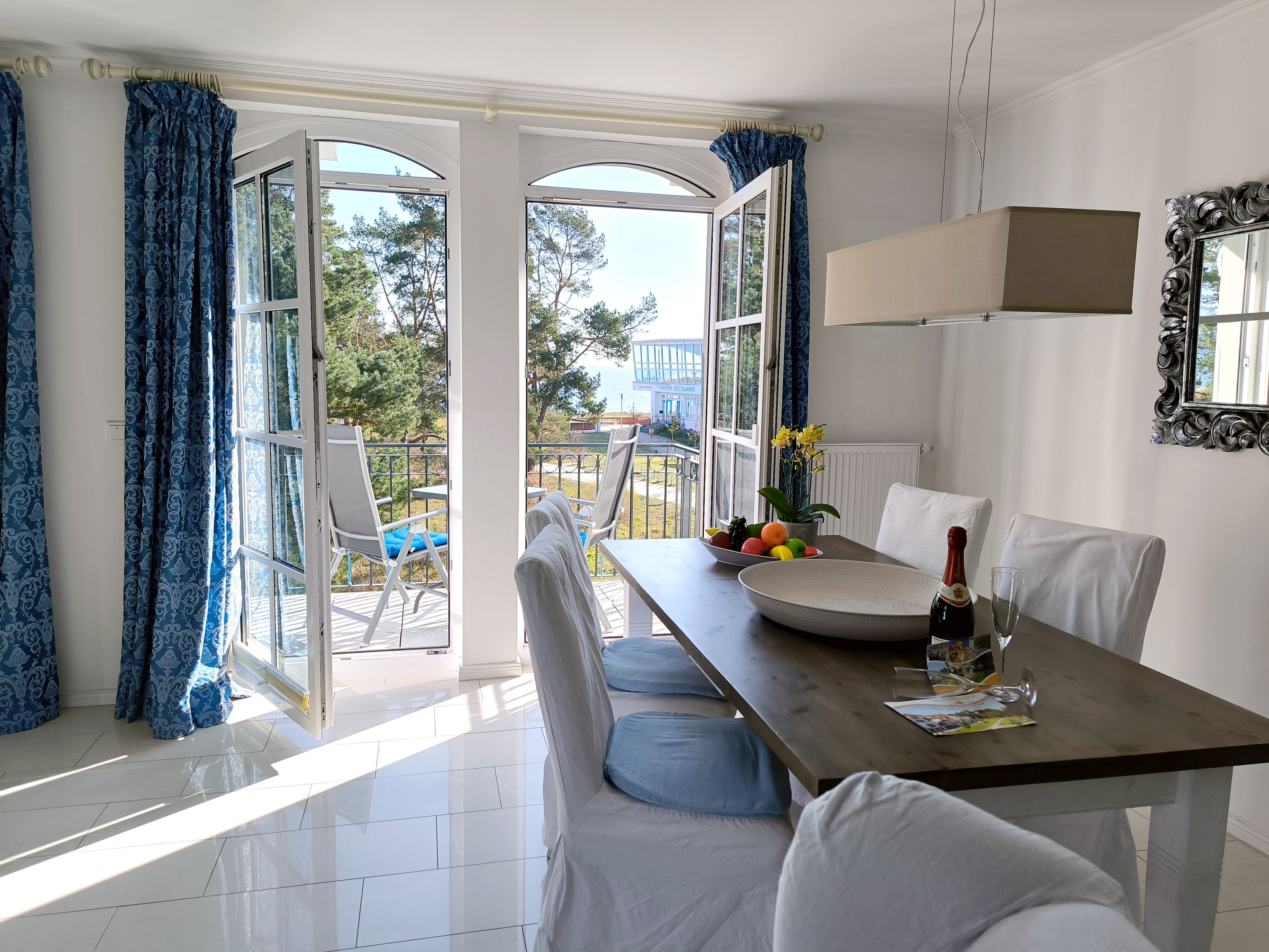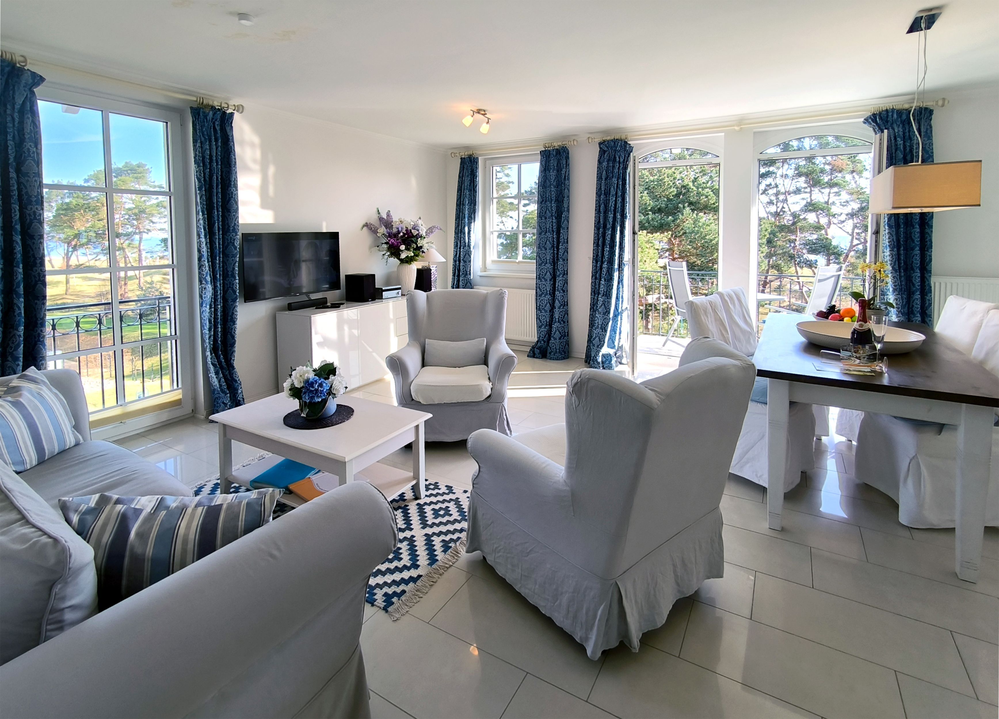 Die Ferienwohnung liegt in einer separaten Villa im Haus Meeresblick. Das erst 2013 neu eröffnete Haus Meeresblick mit Schwimmbad, Massage- und Saunabereich liegt direkt am Strand von Baabe.