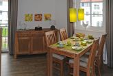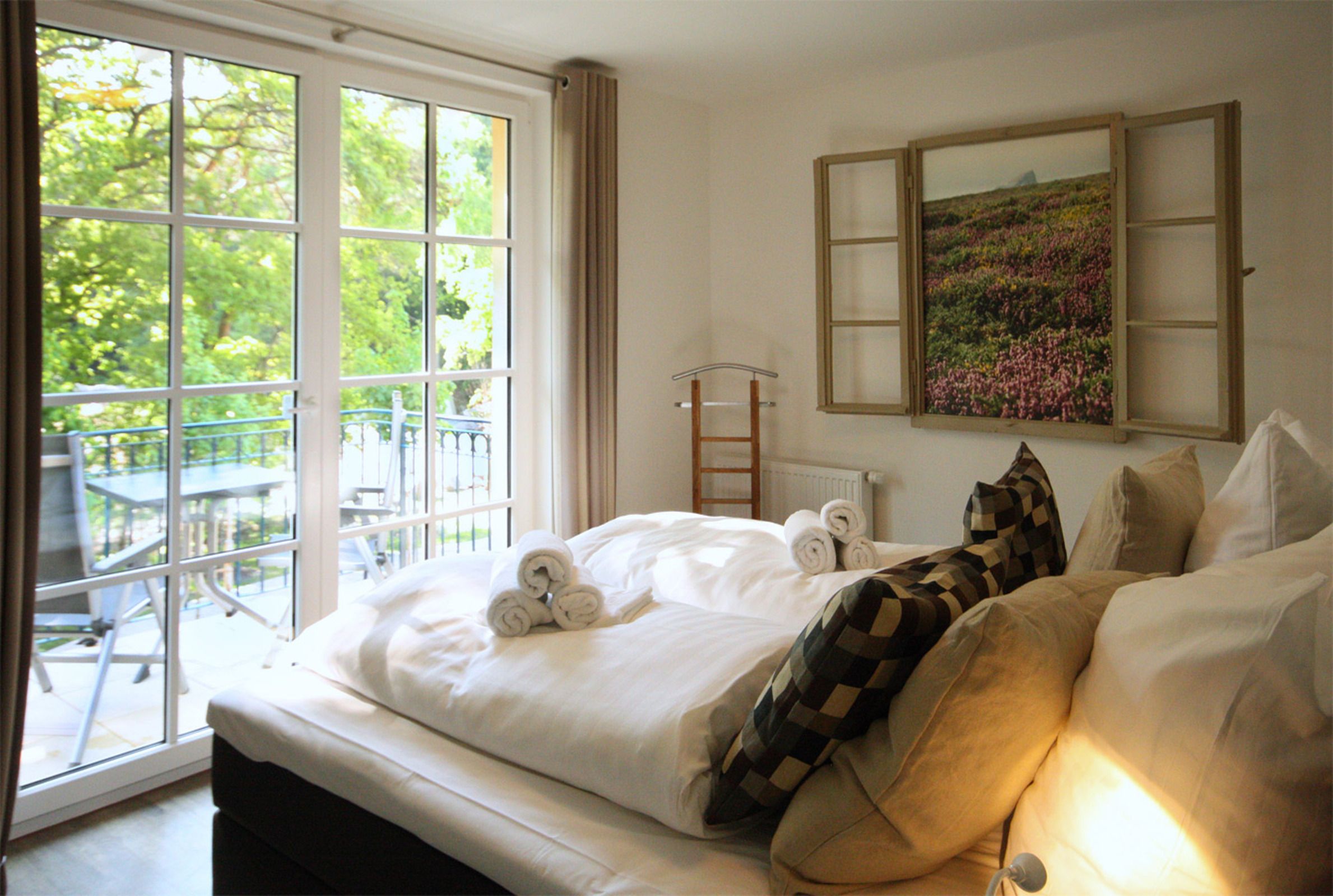 Frühstück auf dem Ostbalkon mit Meerblick, Dinner bei Abendsonne auf dem Westbalkon: Die 2-Zimmerwohnung Strandburg macht beides möglich. Die Nichtraucher-Wohnung liegt im 1. Obergeschoss eines Villenhauses, das zur Ferienresidenz Haus Meeresblick gehört und hat Platz für 2-4 Personen. Die sehr helle Wohnung hat ein Schlafzimmer mit möbliertem Westbalkon, Doppelboxspringbett und Kleiderschrank. Auf Wunsch kann ein Kinderreisebett hinzugestellt werden.