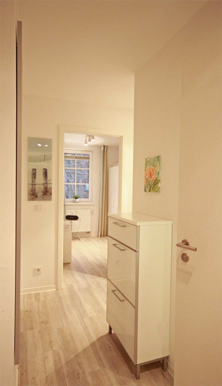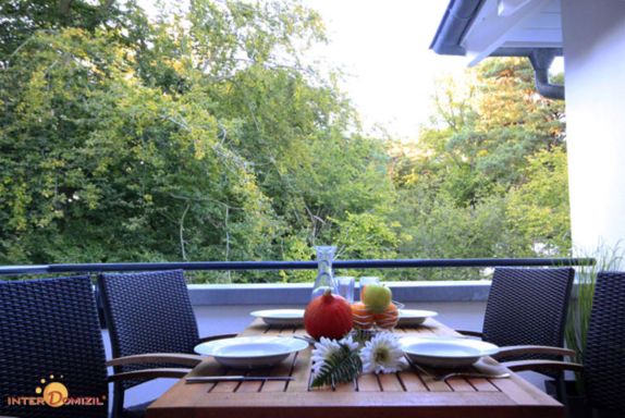 3 Zimmer Ferienwohnung für 4 Personen in der 4. Etage mit uneinsehbaren großen Balkon und mit schönen Blick in ein Wäldchen. Da der Fahrstuhl nur bis zur 3. Etage geht, ist die letzte Etage nur über ein Treppenhaus zu erreichen.