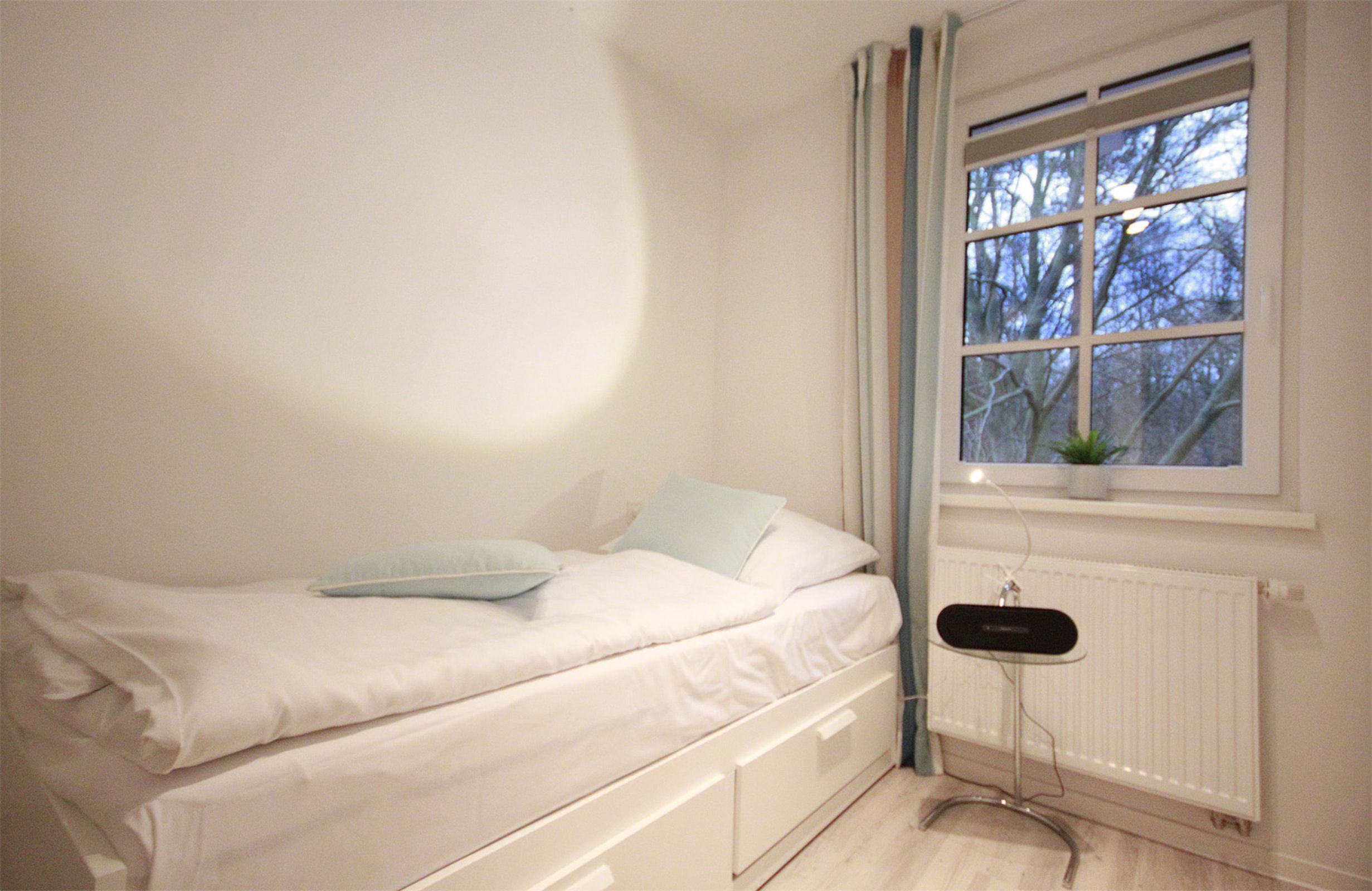 Genießen Sie von der vierten Etage aus die Nähe zum angrenzenden Kiefernwäldchen, und machen Sie es sich mit 2-4 Personen gemütlich in einem Wohn-/Essbereich, der mit TV, Radio, CD- und DVD-Player sowie WLAN ausgestattet ist.