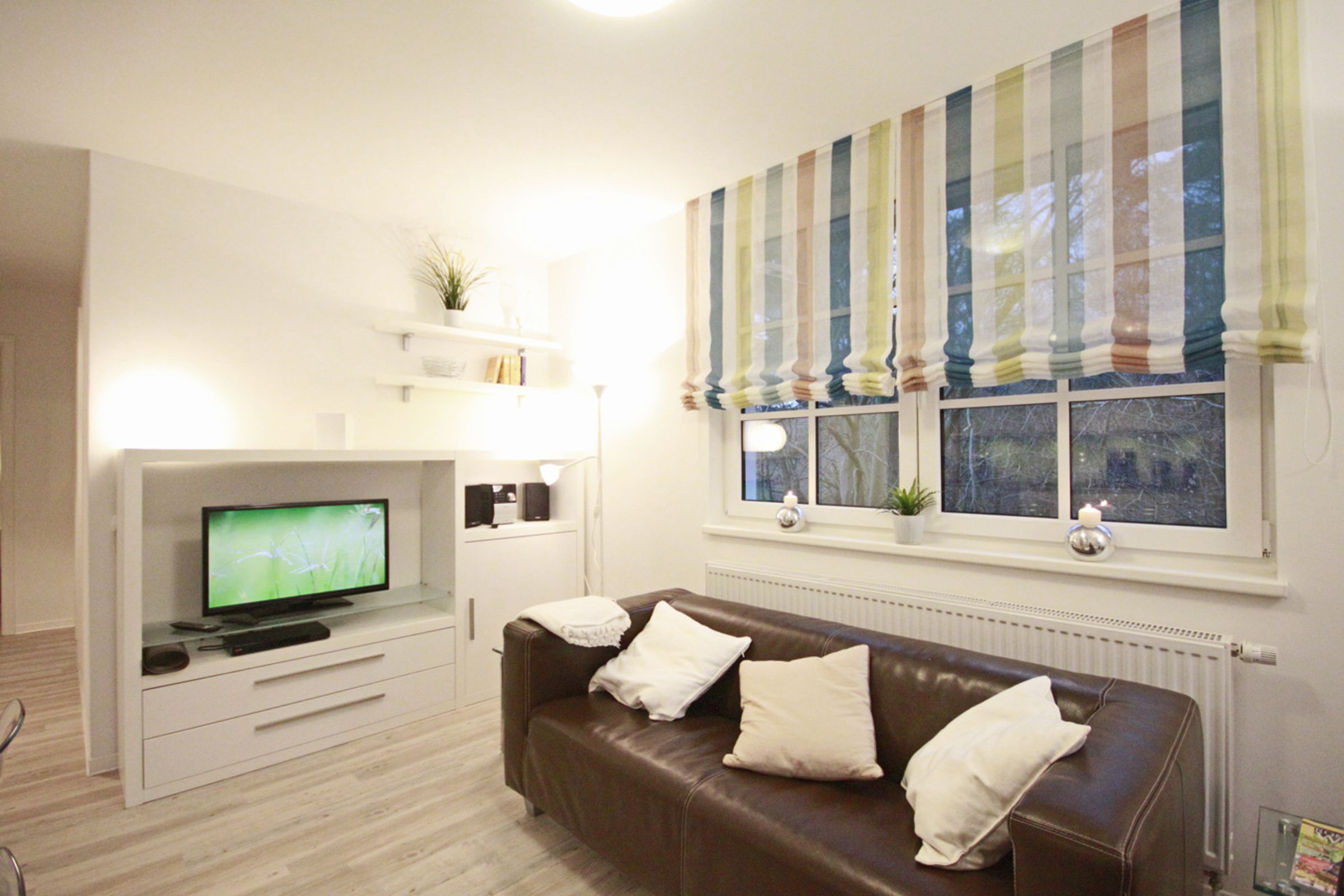 Buchen Sie die Auszeit - eine 3-Zimmerwohnung mit einem von außen nicht einsehbaren Balkon in der Ferienresidenz Haus Meeresblick. Genießen Sie von der vierten Etage aus die Nähe zum angrenzenden Kiefernwäldchen, und machen Sie es sich mit 2-4 Personen gemütlich in einem Wohn-/Essbereich, der mit TV, Radio, CD- und DVD-Player sowie WLAN ausgestattet ist.