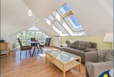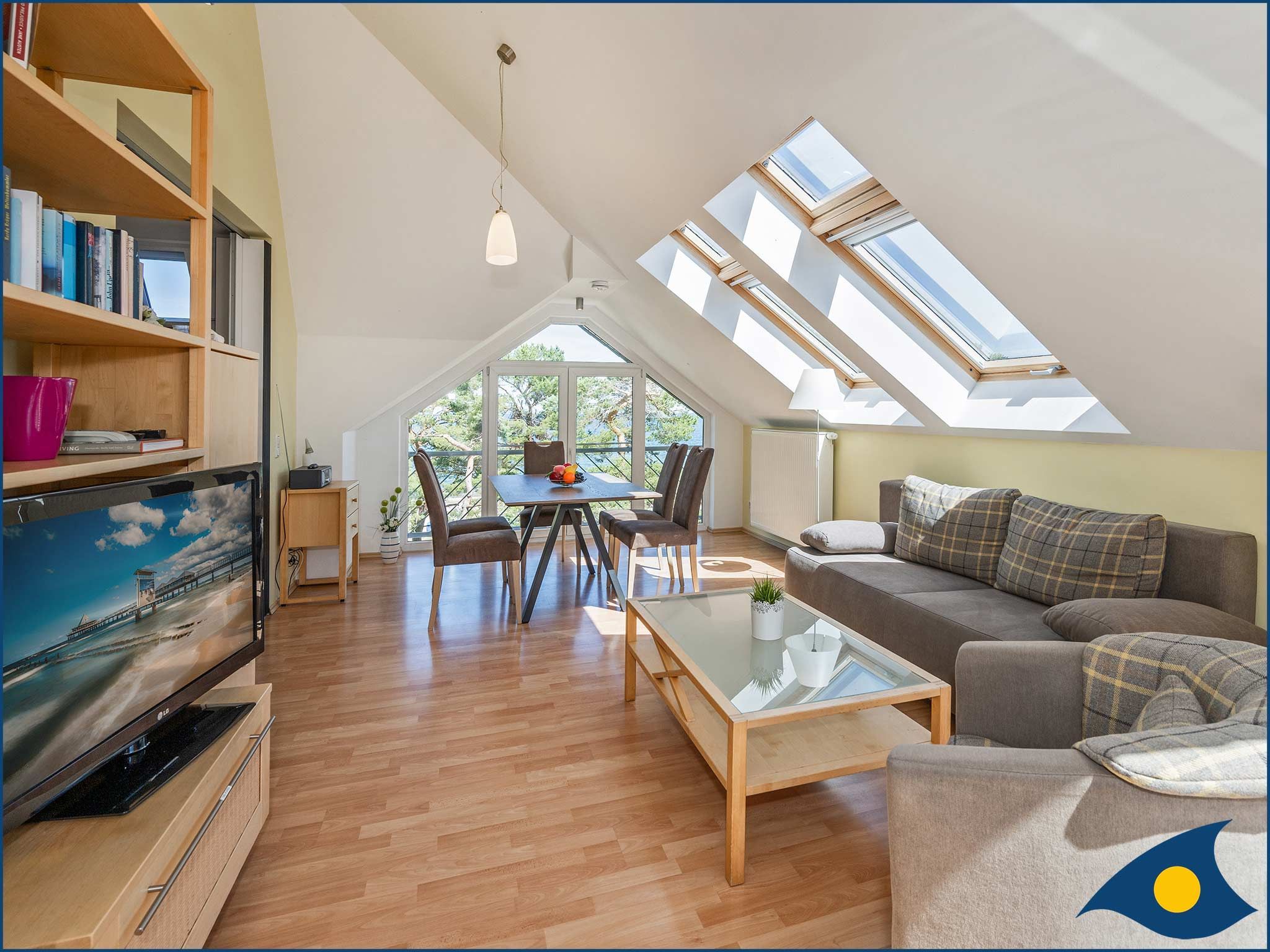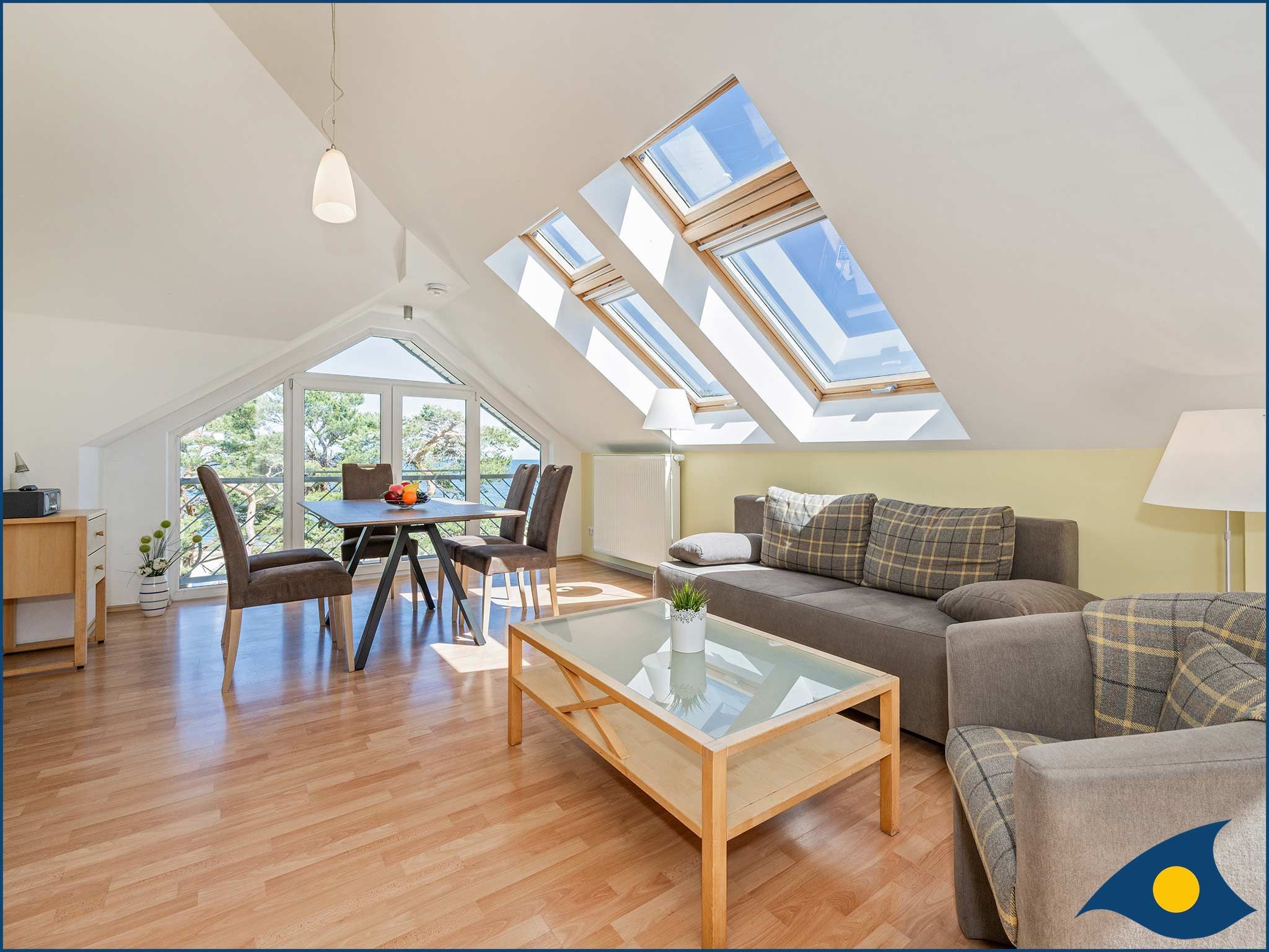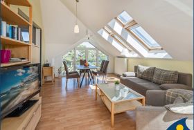 Diese exklusive Wohnung im Dachgeschoss der Villa Strandperle bietet traumhafte Ausblicke über die Pommersche Bucht. Ostsee und Strand liegen direkt vor Ihrer Haustür und schon nach wenigen Schritten über die Promenade können Sie sich im feinen, weißen Sand entspannen oder im Meer schwimmen.