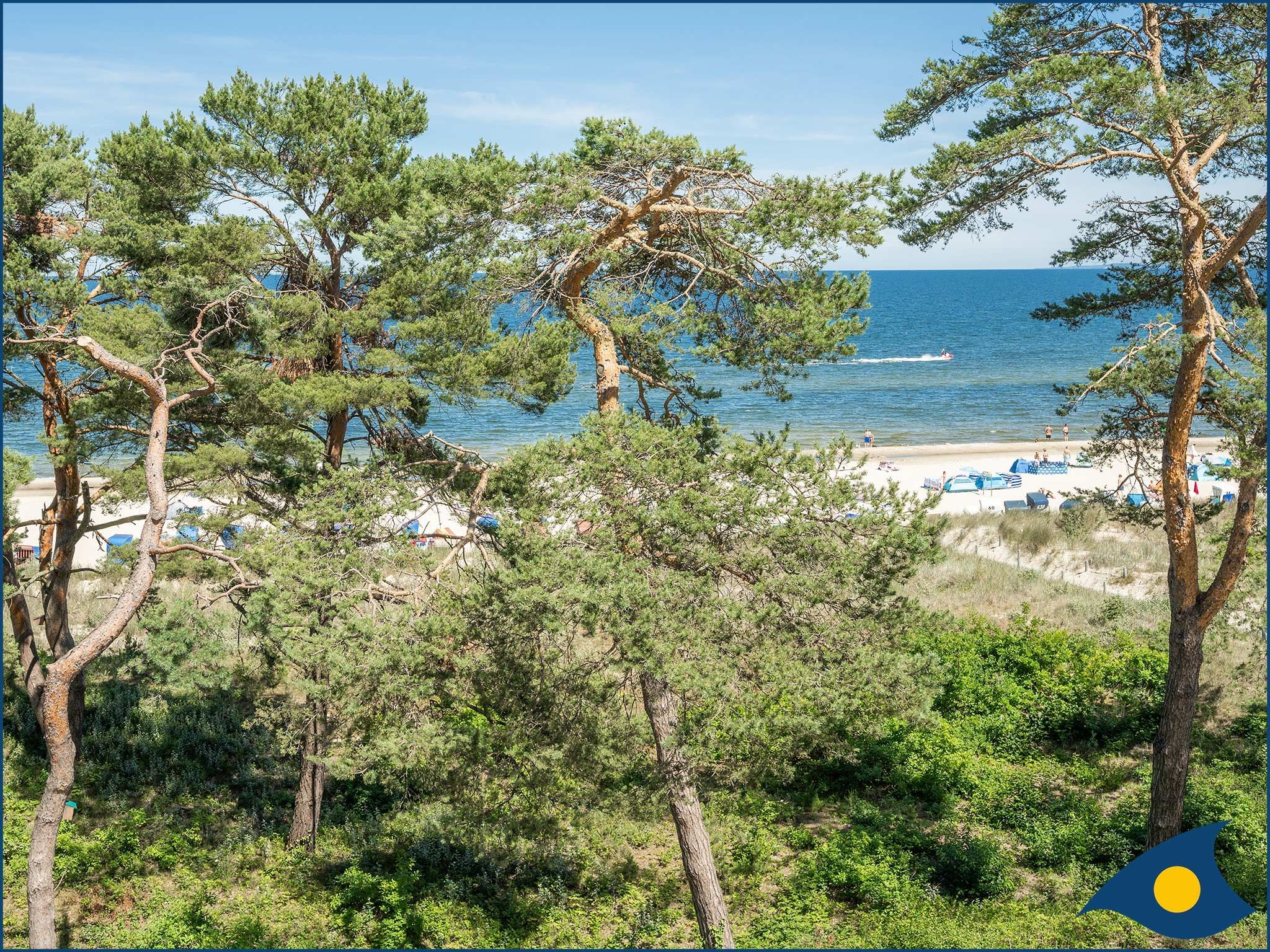 Sonne, Strand und Kieferbäume - außergewöhnlich schönes Spiel von Licht und Schatten vor unserer Strandperle an der Bansiner Promenade