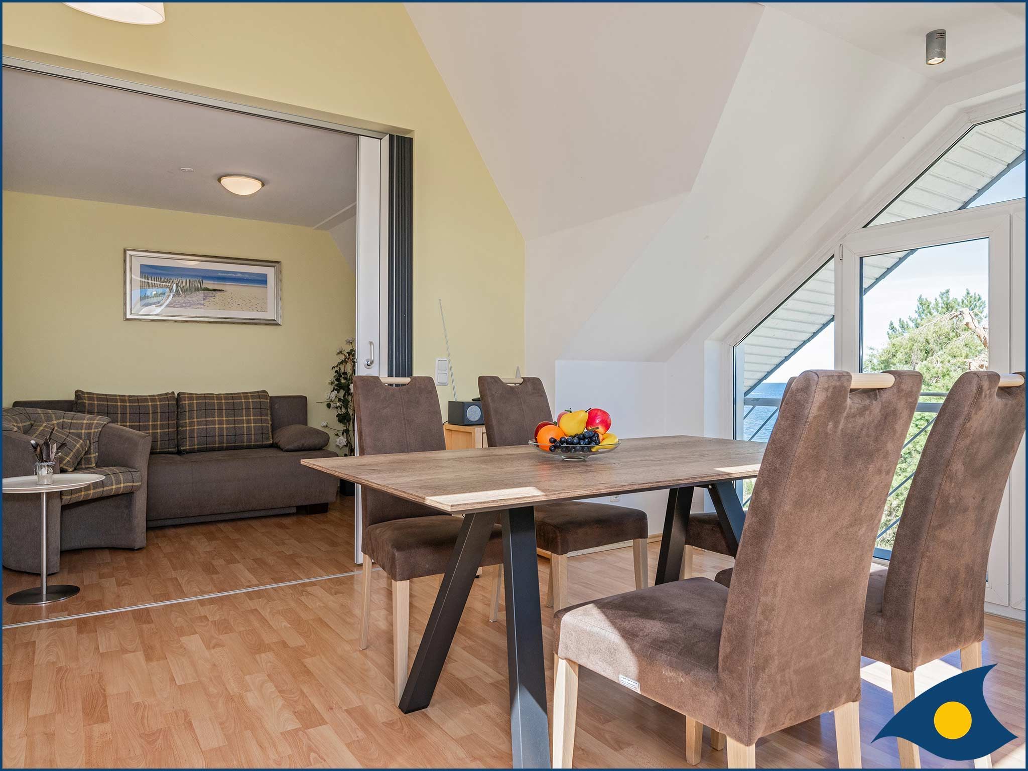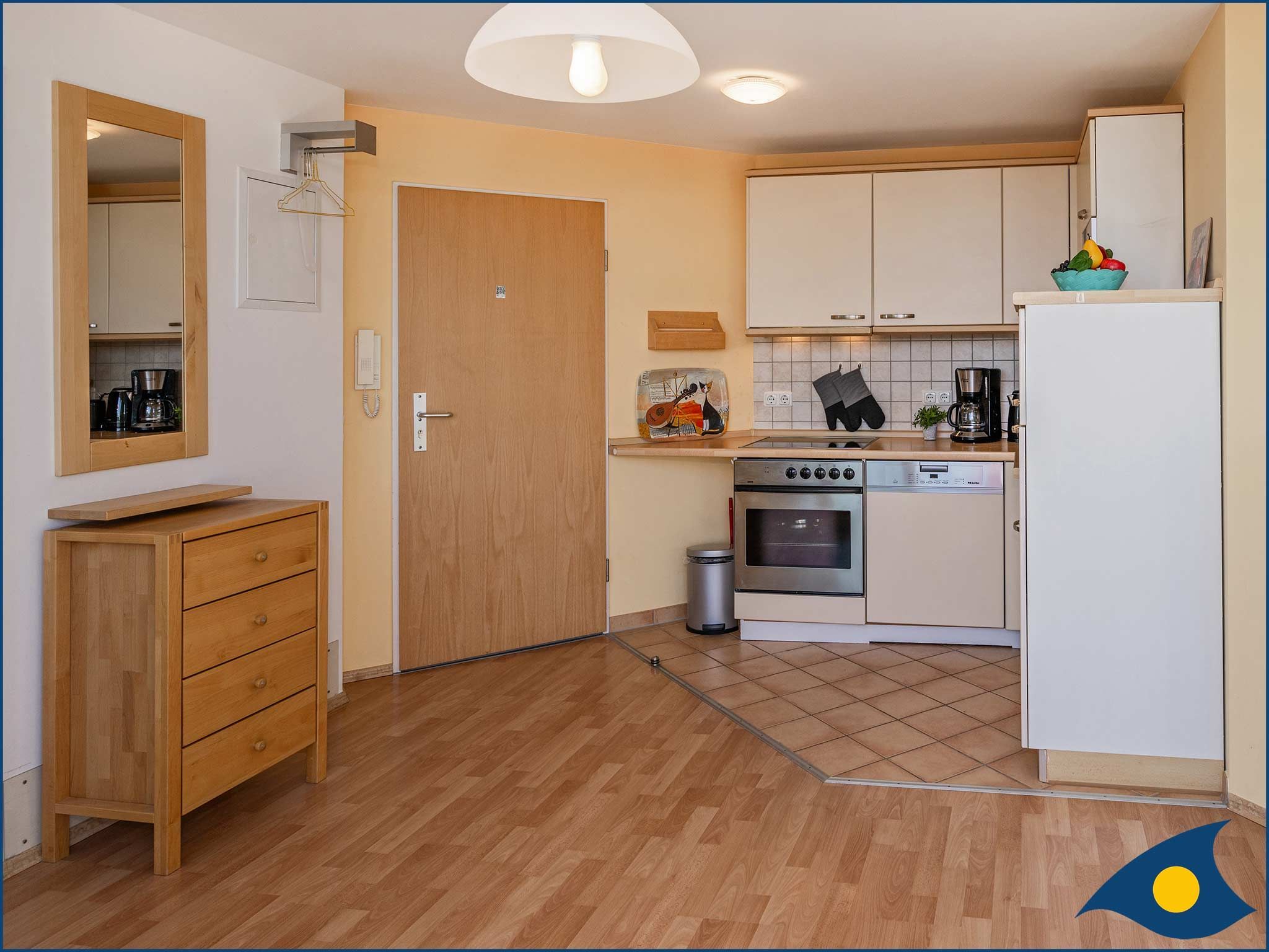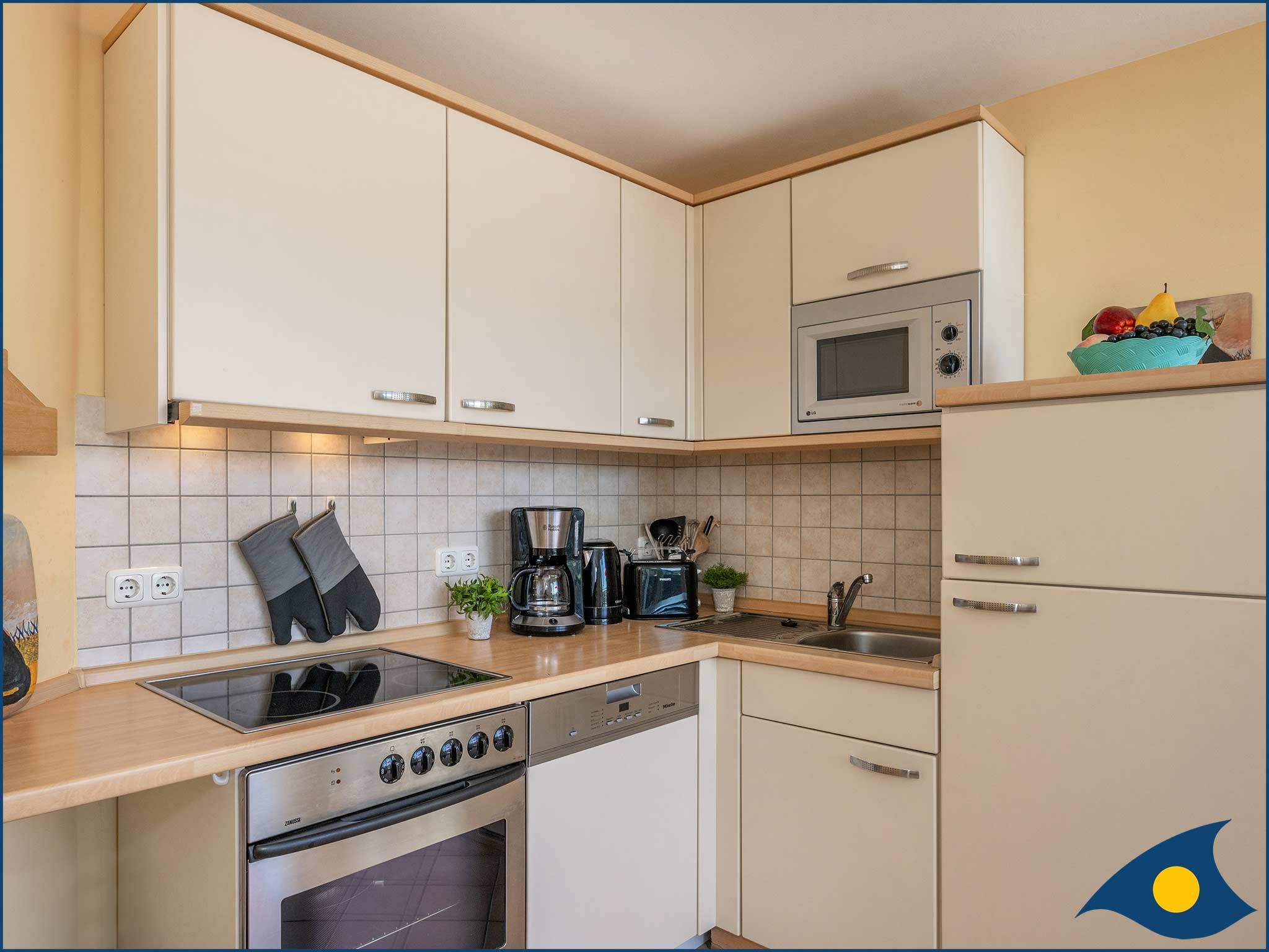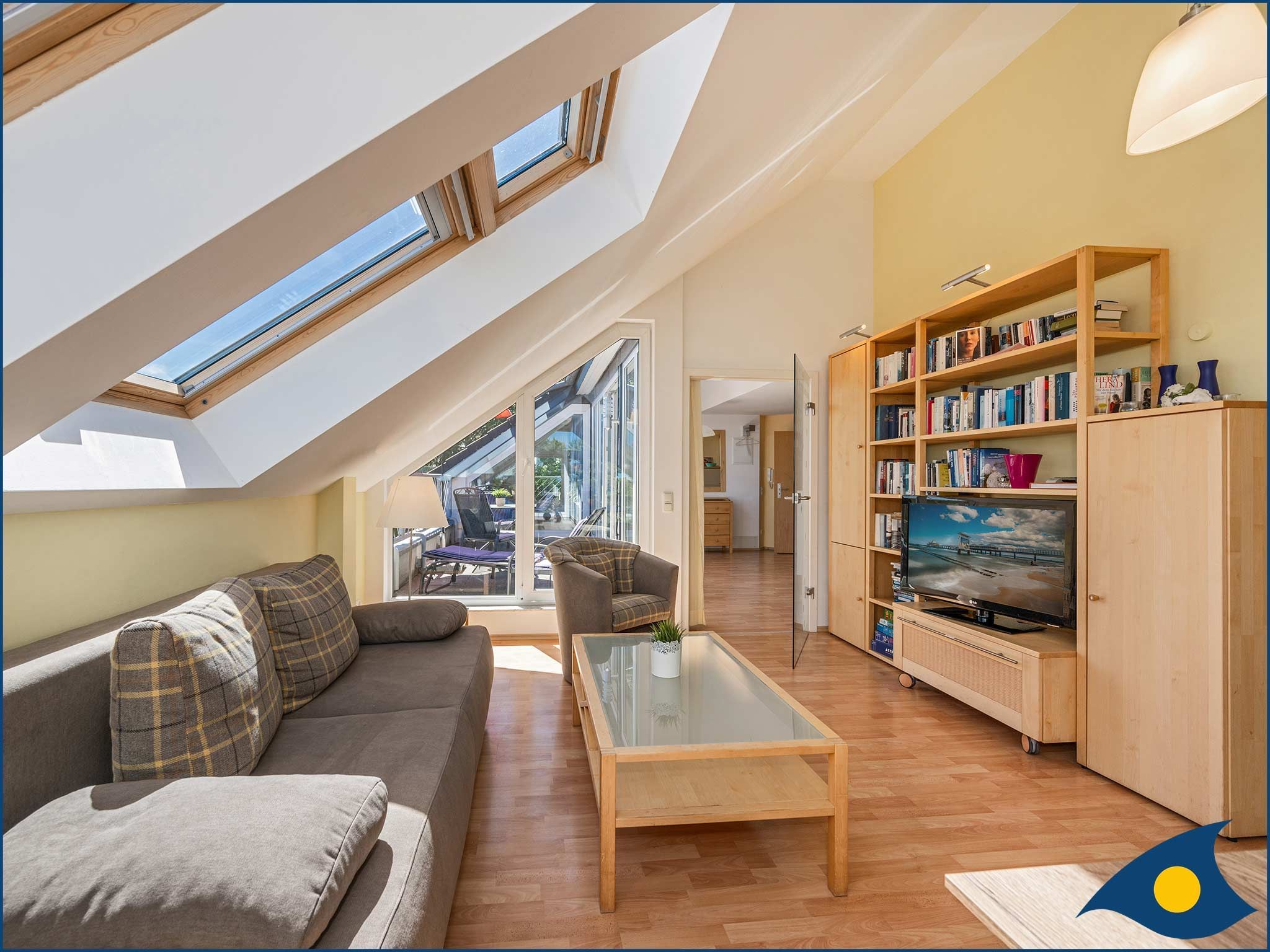 An das Wohnzimmer schließt sich der hochwertig ausgestattete Küchenbereich an. Von hier aus gelangen Sie auf die idyllische Dachterrasse. Das Schlafzimmer verfügt über einen Südwestbalkon und einen zweiten Flachbildfernseher. Im Haus stehen eine Waschmaschine und ein Wäschetrockner gegen Gebühr zur Verfügung.