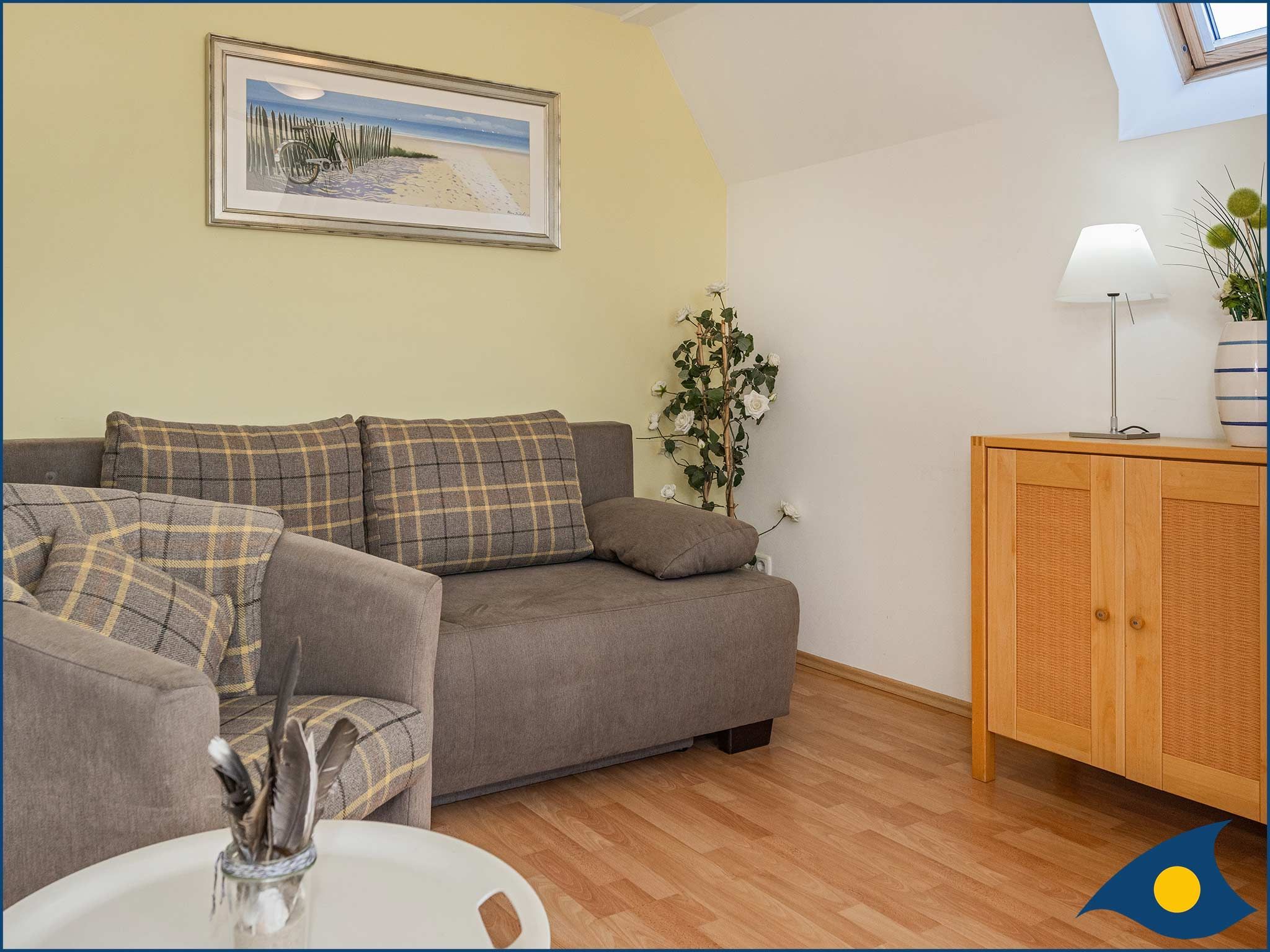 Zu dem großzügigen Appartement gehört ein modernes Wohnzimmer - in der separaten, kleinen Nische kann man dort eine bequeme Schlafcouch für zwei Personen aufbetten.