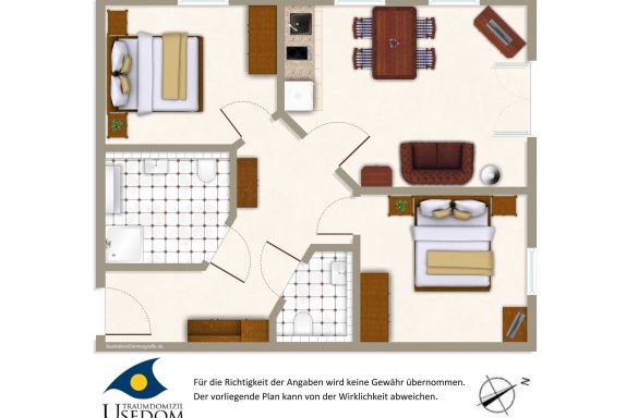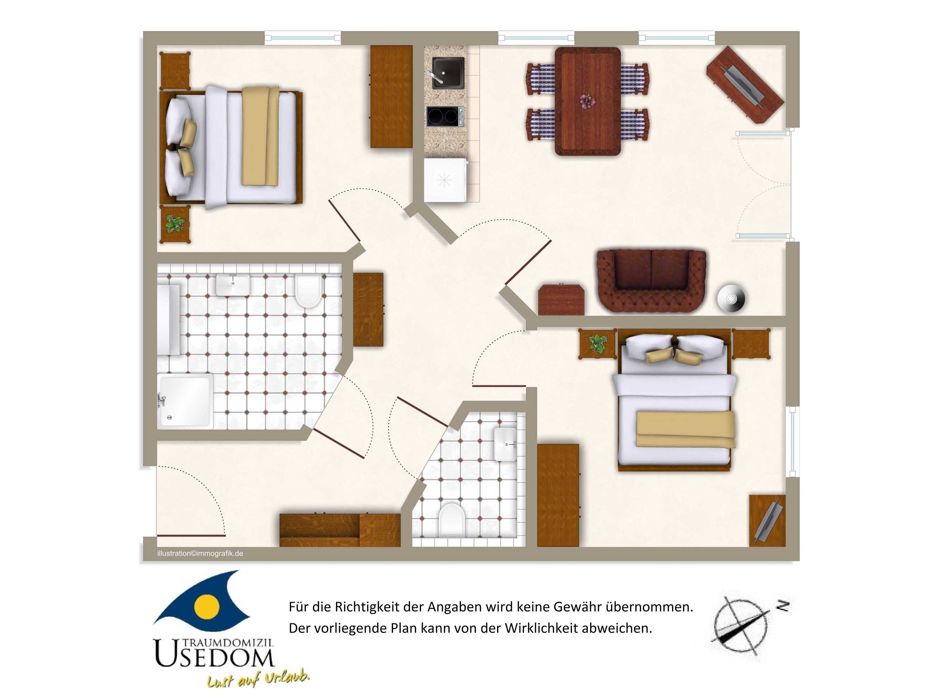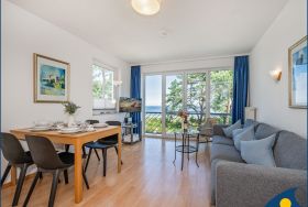 Dieses moderne Dreiraumappartement in der 3. Etage ist komfortabel ausgestattet und verfügt über zwei Schlafzimmer mit je einem Doppelbett. Die Wohnung bietet einen traumhaften Blick auf den Strand und die Ostsee.