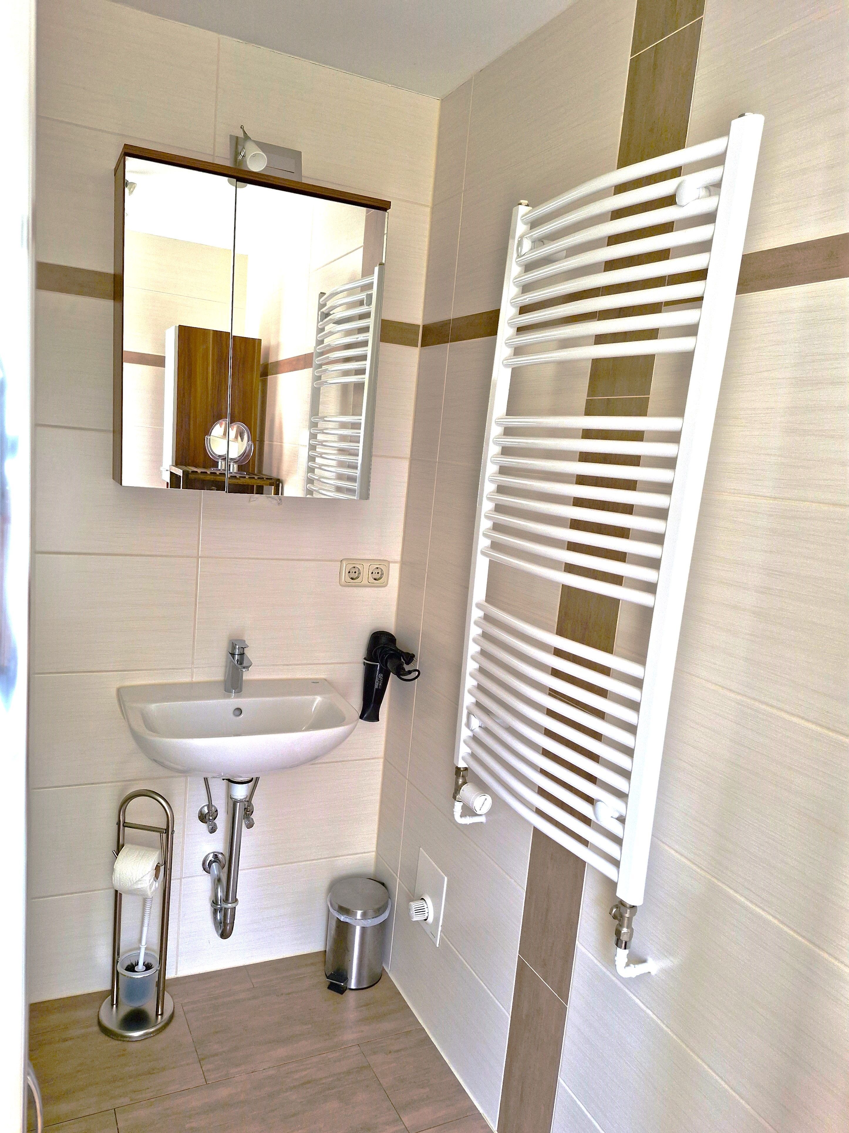 mit Waschmaschine, die gegen eine kleine Gebühr genutzt werden kann.