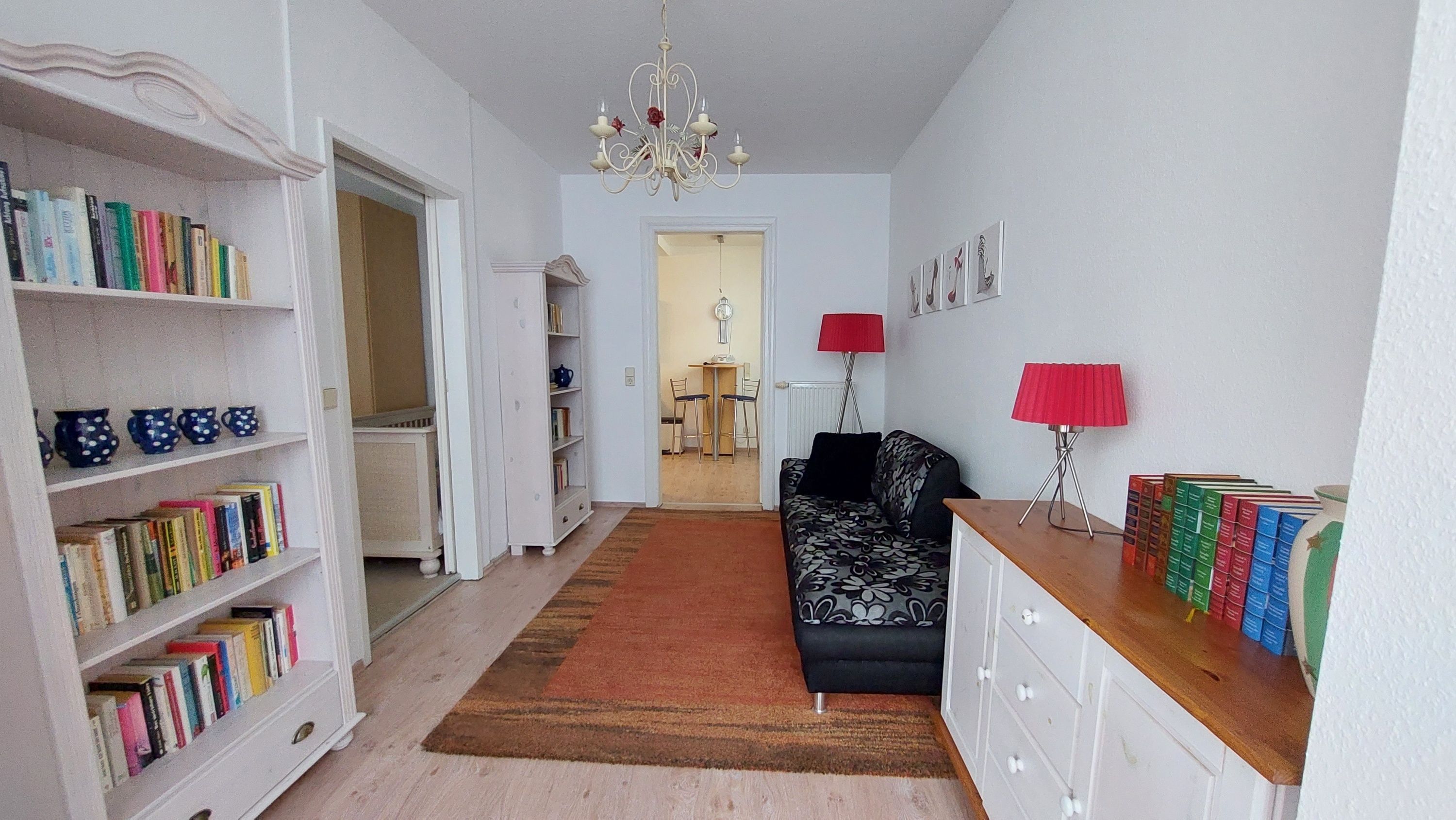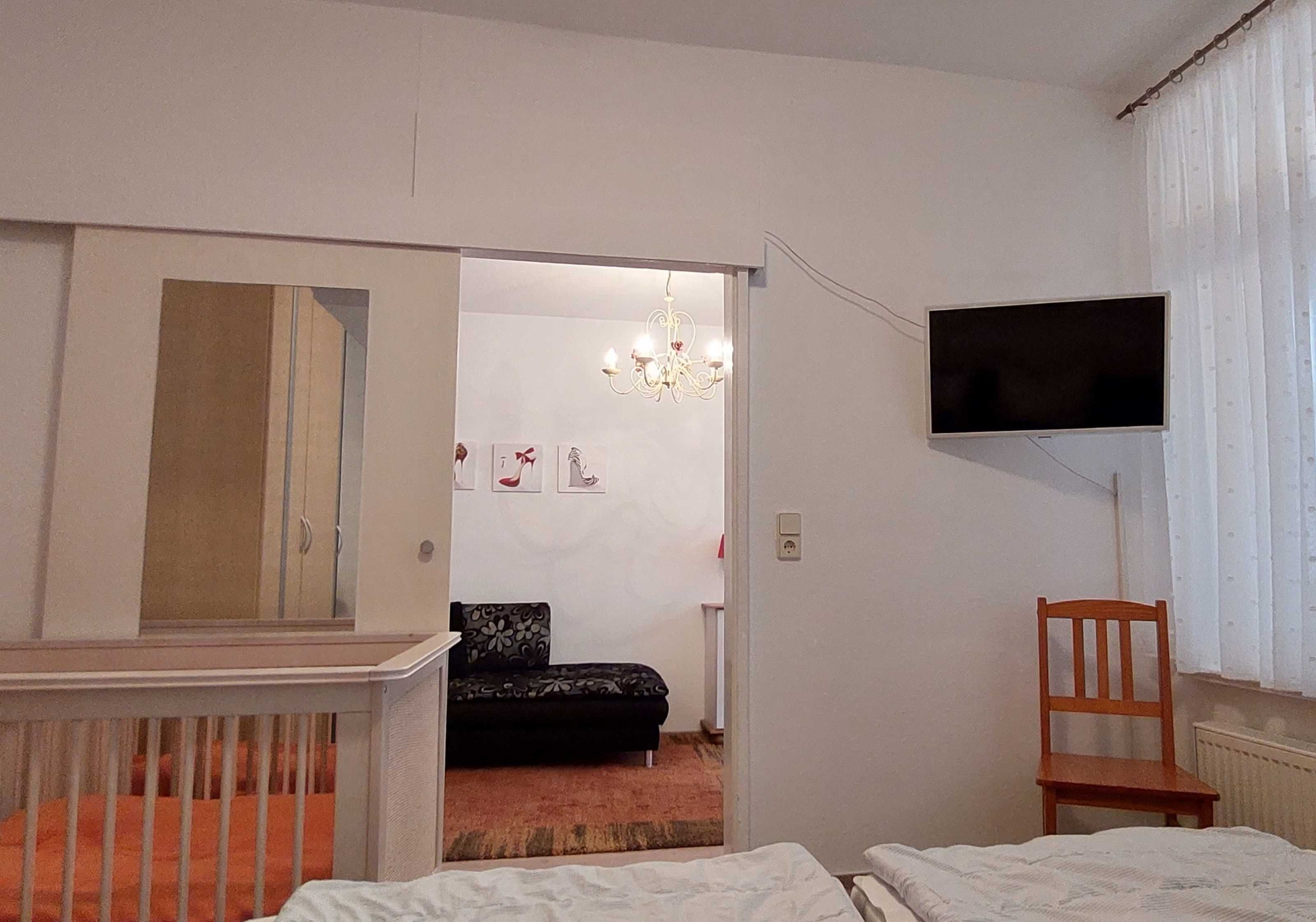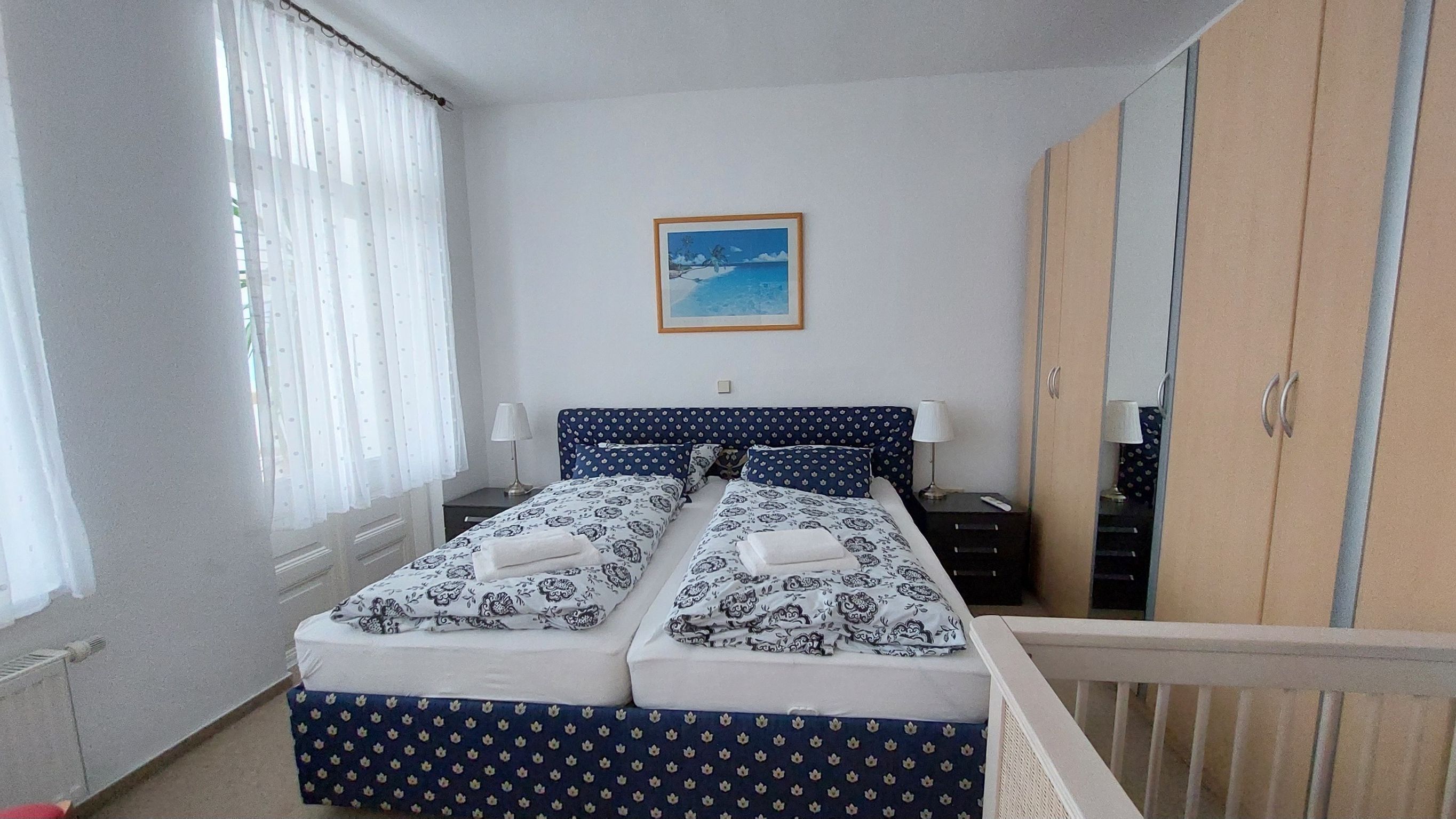 · 2. Schlafzimmer: Hier finden Sie ein hochwertiges Boxspringbett (1,80 m breit) sowie ein Kinderbett, ideal für Kinder bis ca. 4 Jahre.