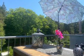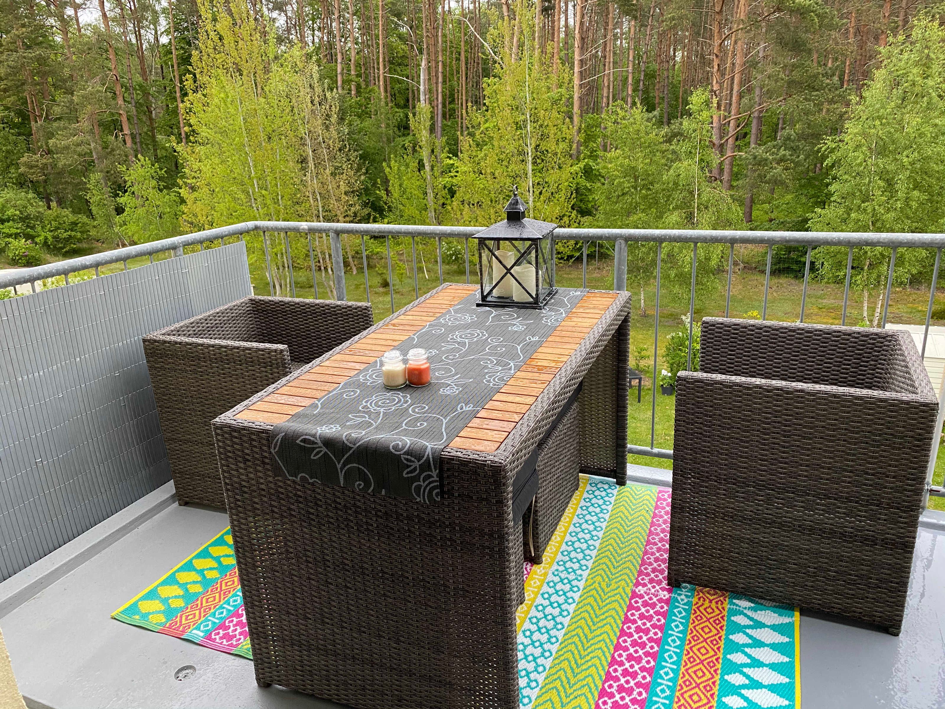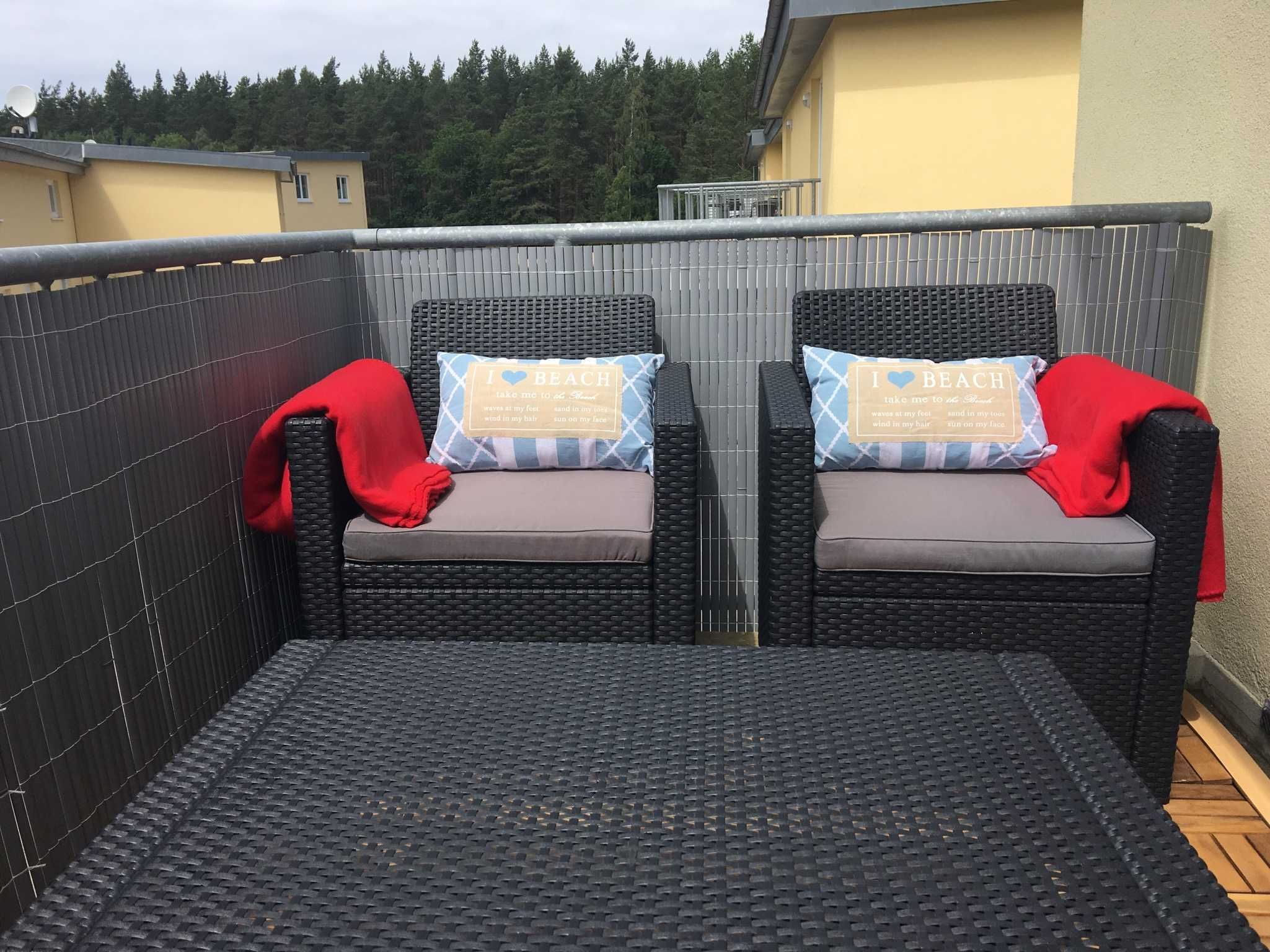 2 Balkone ( je 5 qm ) nach Ost & West gelegen runden das Urlaubserlebnis ab. Beide sind voll ausgestattet mit Balkonmöbeln , dazu ein Elektrogrill ( grillen erlaubt ) . Genießen Sie den Sonnenauf- und Sonnenuntergang .