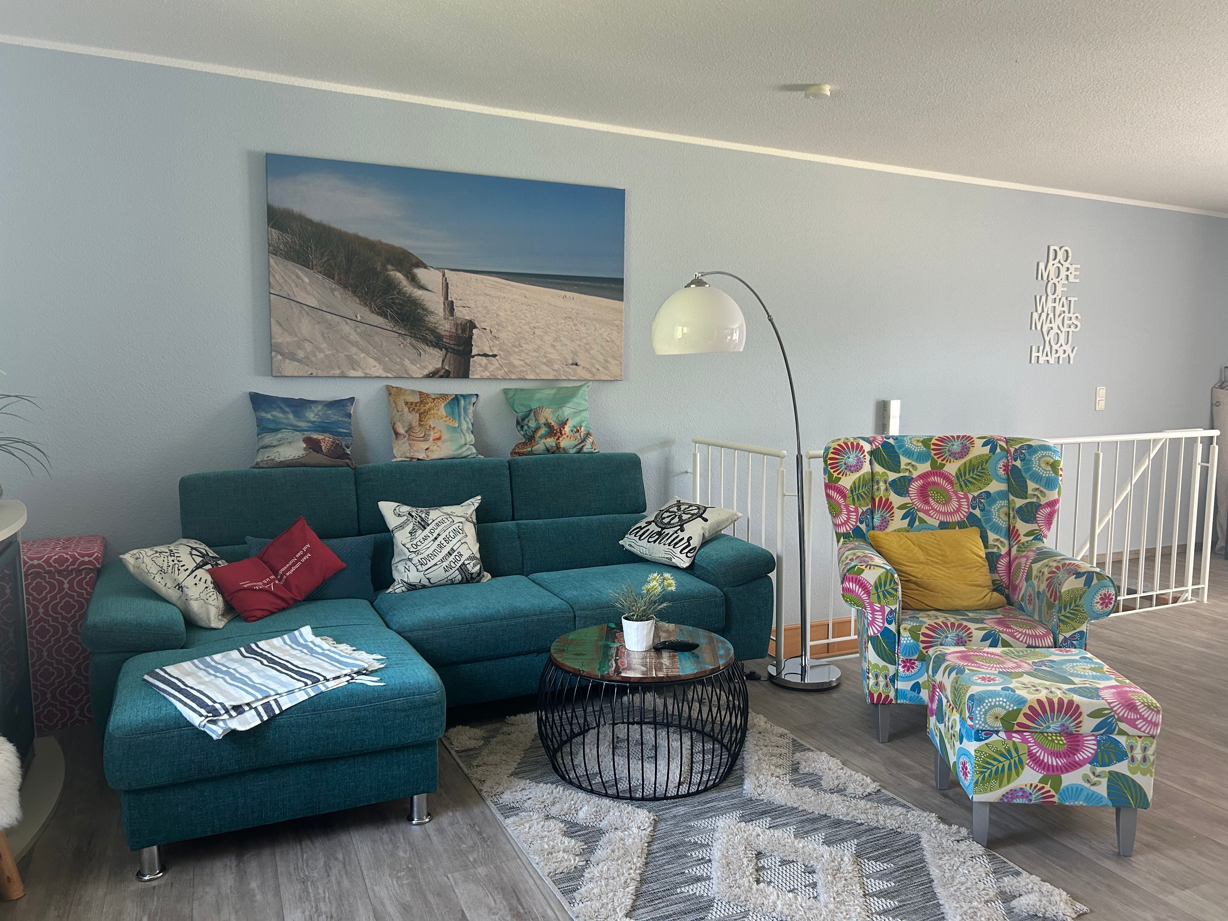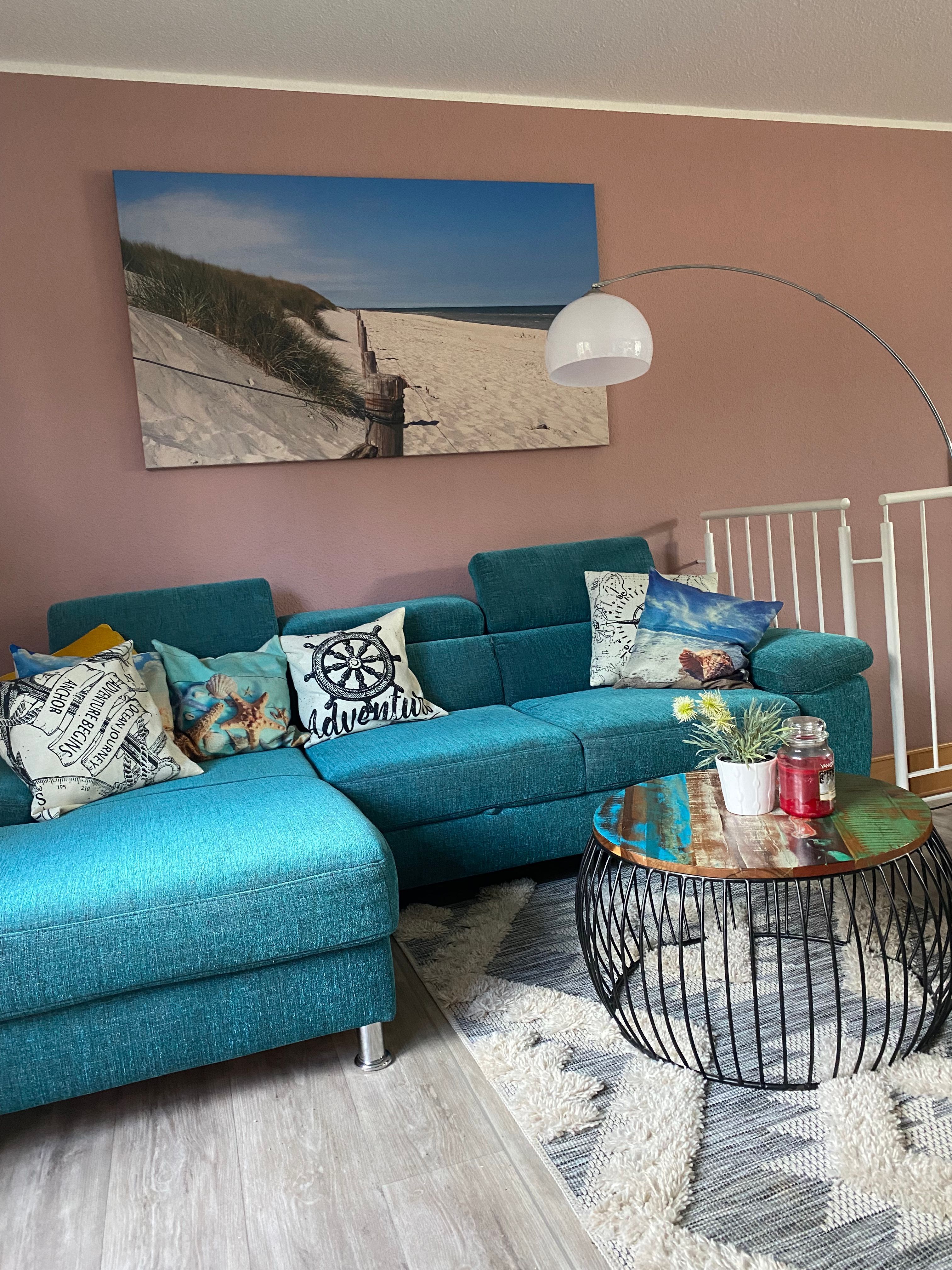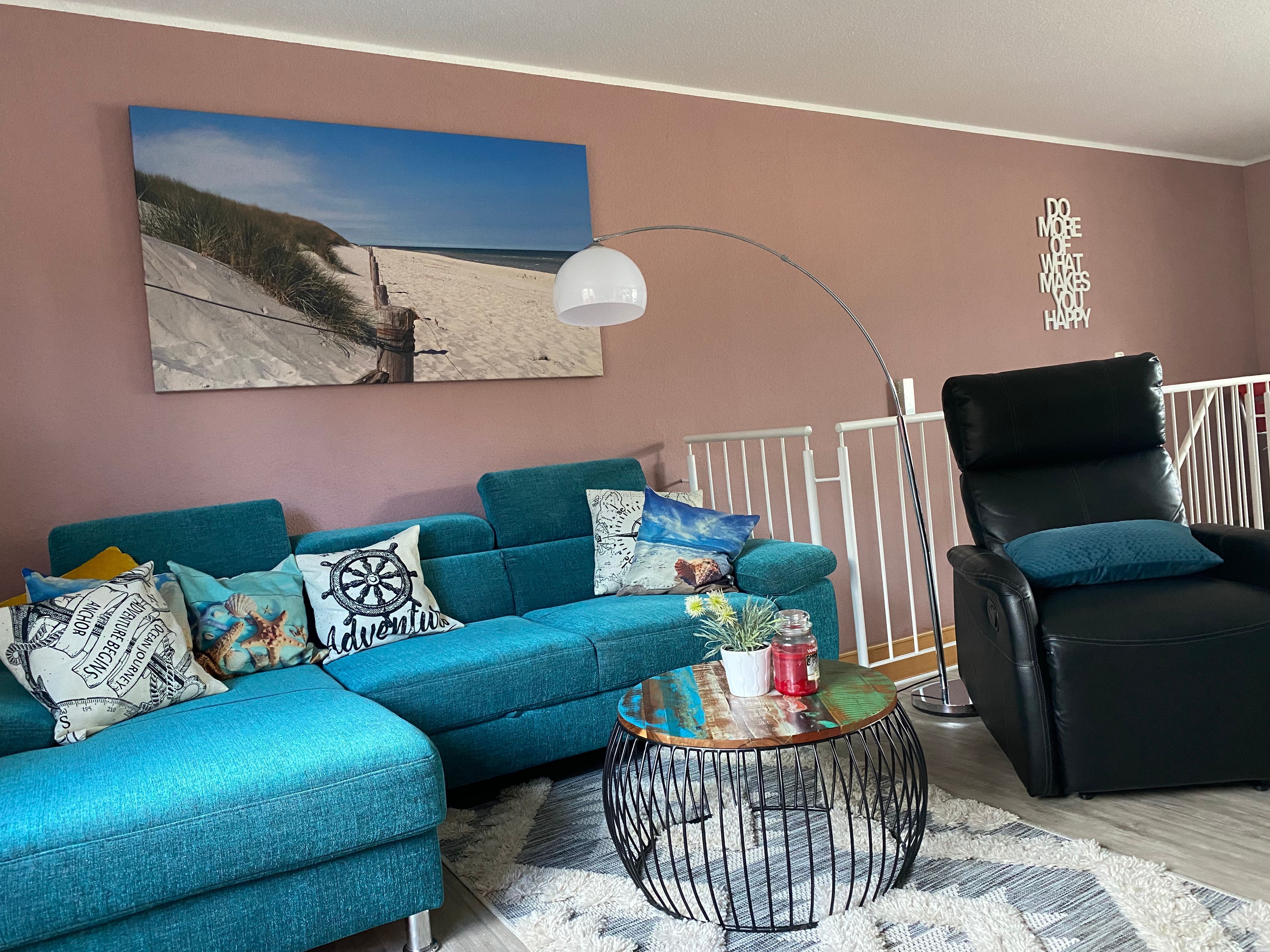 Im Wohnbereich finden Sie eine schöne gemütliche Polsterecke , einen ultramodernen 3D Fernseher , dazu DVD/Blue Ray Player , Mini Hifi Anlage mit CD Player .