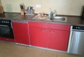 • die Küche ist komplett ausgestattet mit Kochzubehör, Geschirr, Herd, Spüle, Kühlschrank, Spülmaschine, Wasserkocher und Kaffeemaschine