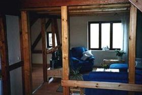 Komfortabel eingerichtetes Ferienhaus mit 4 Schlafzimmern, einer großen Wohnküche, Aufenthaltsräume im Dachgeschoß ca. 70 m², Küchenzeile, Schlafraum für Aufbettung und Aufenthaltsraum jeweils 15 m² im Spitzboden und 2 Bädern. Elektroheizung im gesamten Haus. Terrasse ca. 40 m² mit Grillkamin und Terrassenmöbeln, 4 PKW-Stellplätze vorhanden. Im Erdgeschoß: Küche 30 m², 3 Schlafzimmer mit Doppelbett und Schrank, Badezimmer mit Dusche, WC und zwei Waschtischen. Im Dachgeschoß: Schlafzimmer mit Doppelbett, Wohnzimmer mit Sitzecke, TV, Video und Stereoanlage, Wohndiele mit Küchenzeile und Tisch für 8 Personen, Bad mit Dusche und WC. Im Spitzboden: Schlafraum für Aufbettung und Sitzecke mit TV.