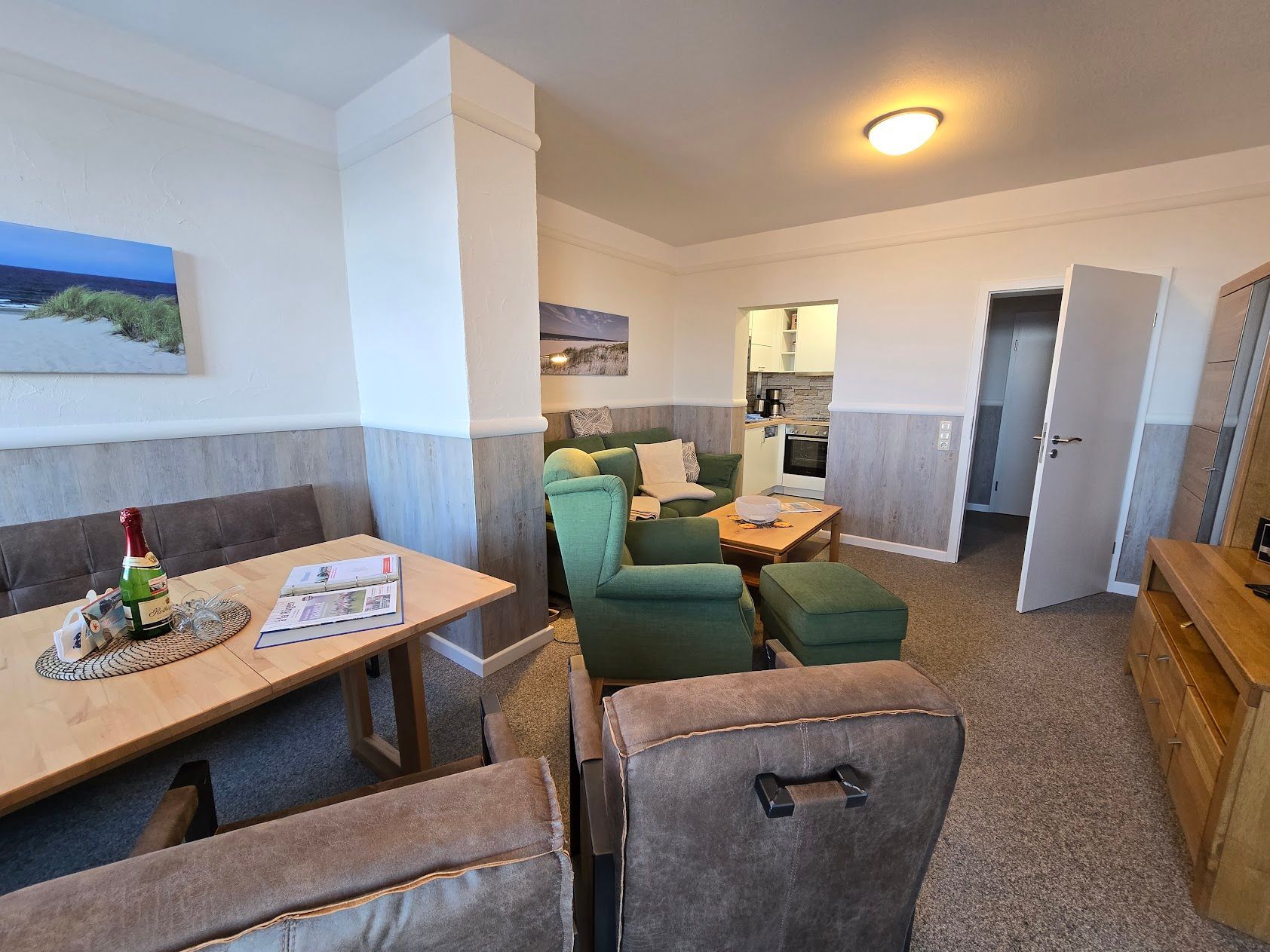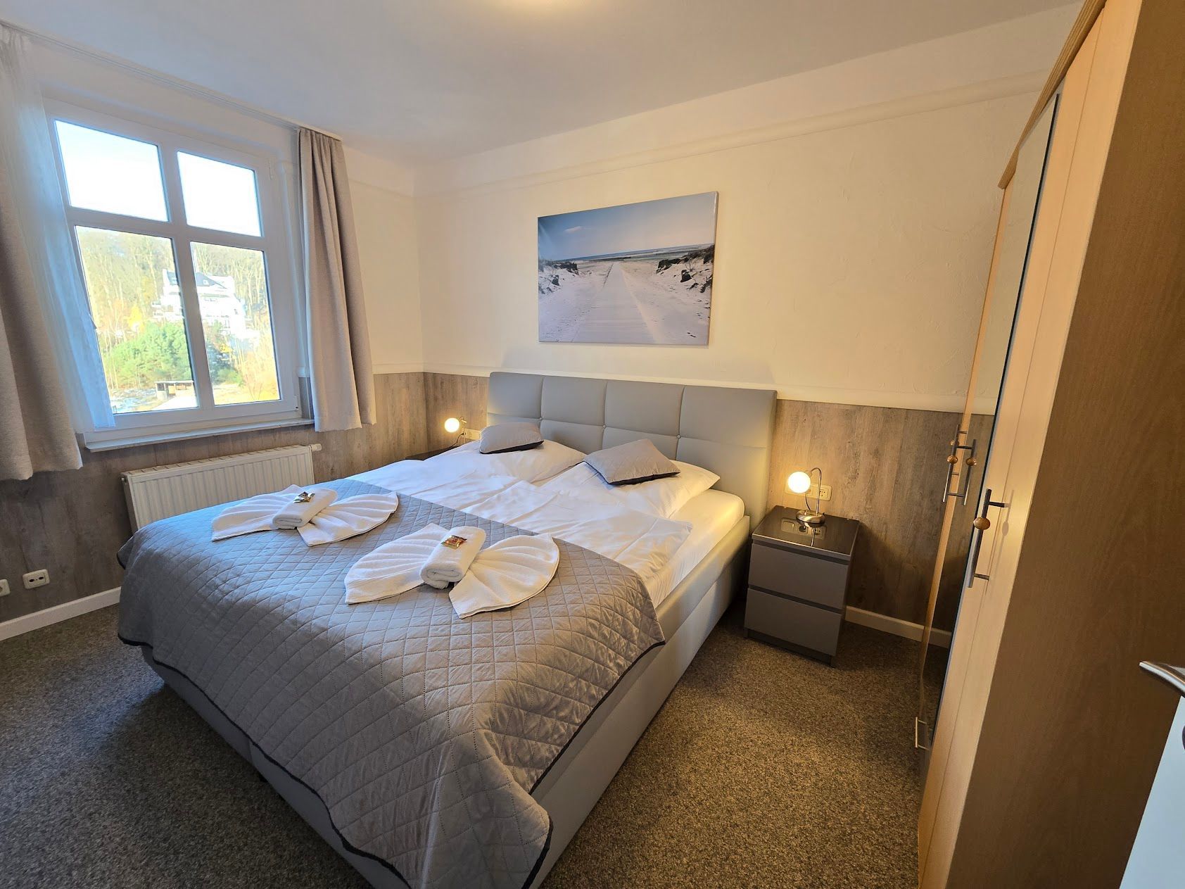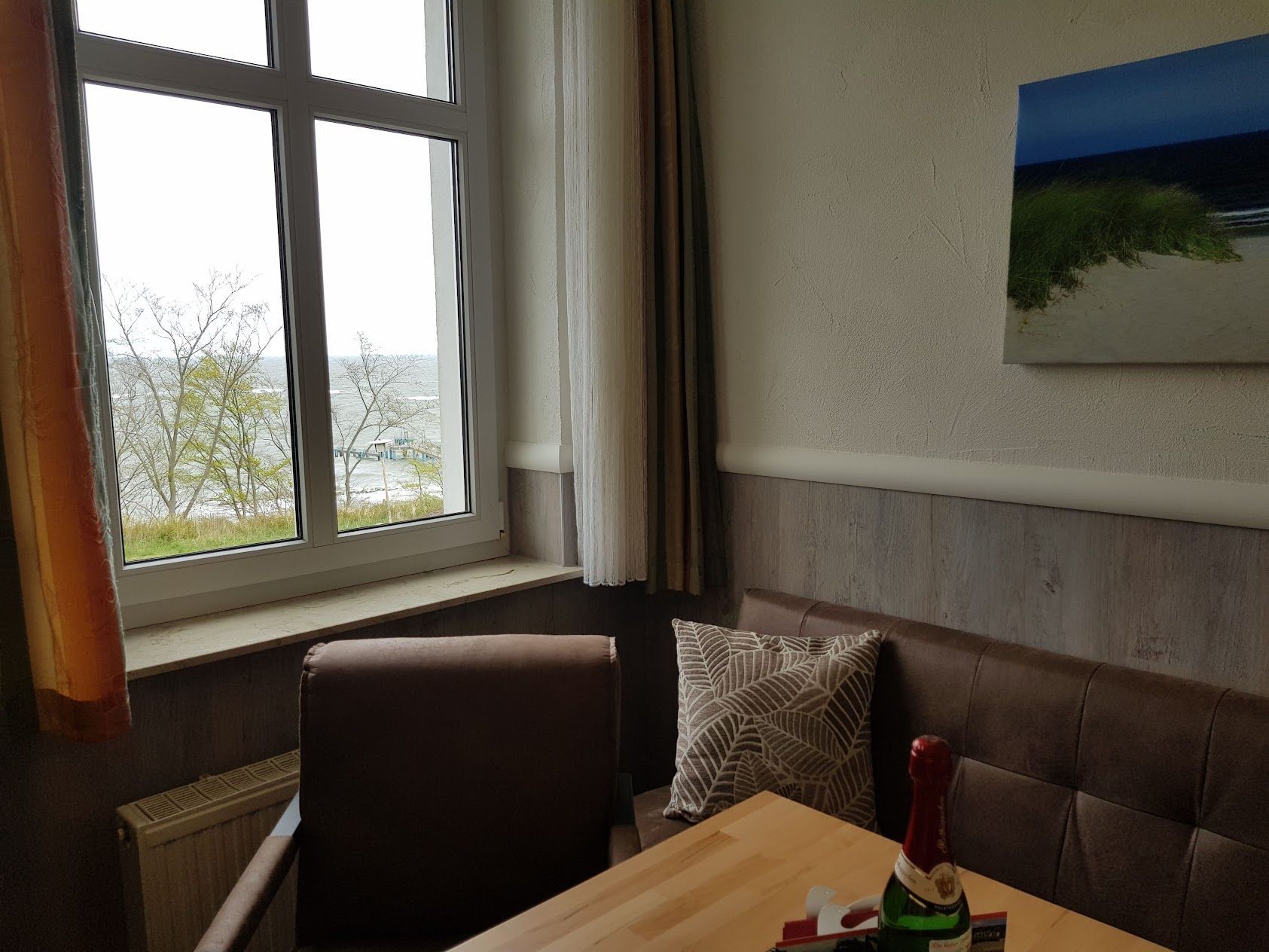 Im Bäderstil saniertes Appartementhaus direkt an der Ostsee. Es steht Ihnen ein 3 Zimmer Apartment mit Balkon und Seeblick in bevorzugter Lage zur Verfügung. Nur wenige Meter zum Strand von Sellin und zur Seebrücke, dem Wahrzeichen von Sellin sprechen für sich. Die Wohnung errreichen Sie barrierefrei mit einen Aufzug . Küche mit Geschirrspüler und Backofen. Kabel TV und Stereoanlage mit CD Spieler. Unterstellmöglichkeiten für Ihre Fahrräder befinden sich am Haus . Für ihre Wohnung steht ein Parkplatz zur Verfügung. Eine Sauna mit Ruheliegen steht allen Gästen frei zur Verfügung.Waschmaschine und Trockner sind in den Gemeinschaftsräumen gegen Gebühr vorhanden.
