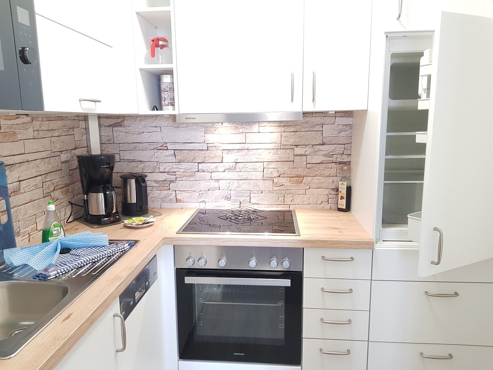 • Küche mit 4 Platten Cerankochfeld, Backofen und Geschirrspüler ,Kaffemaschine, Wasserkocher, Toaster. Dusche ,WC.