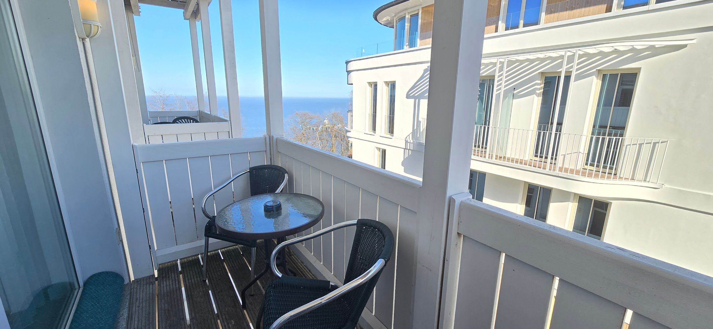 Sie haben eine gute Wahl getroffen. Die Residenz Seeblick ist ein modernes, im Bäderstil saniertes Appartementhaus direkt an der Ostsee. Es stehen Ihnen ein Studio mit Balkon in bevorzugter Lage zur Verfügung. Nur weinge Meter zum Strand von Sellin und zur Seebrücke, dem Wahrzeichen von Sellin sprechen für sich. Das Studio errreichen Sie barrierefrei mit einen Glasaufzug . Im Haus befindet sich ein freier Wireless Lan Internetzugang . Die Appartements sind modern ausgestattet und verfügen über eine gut bestückte Küchenzeile mit Geschirrspüler. Die Zimmer verfügen über Kabel-TV und Stereoanlage mit CD Spieler. Unterstellmöglichkeiten für Ihre Fahrräder befinden sich im und am Haus . Parkmöglichkeiten sind am Haus. Vom Balkon haben Sie einen seitlichen Blick auf die Ostsee. Eine Sauna mit Ruhliegen und Fitnessraum sowie Waschmaschine und Trockner stehen Ihnen in den Gemeinschaftsräumen gegen Gebühr zur Verfügung.