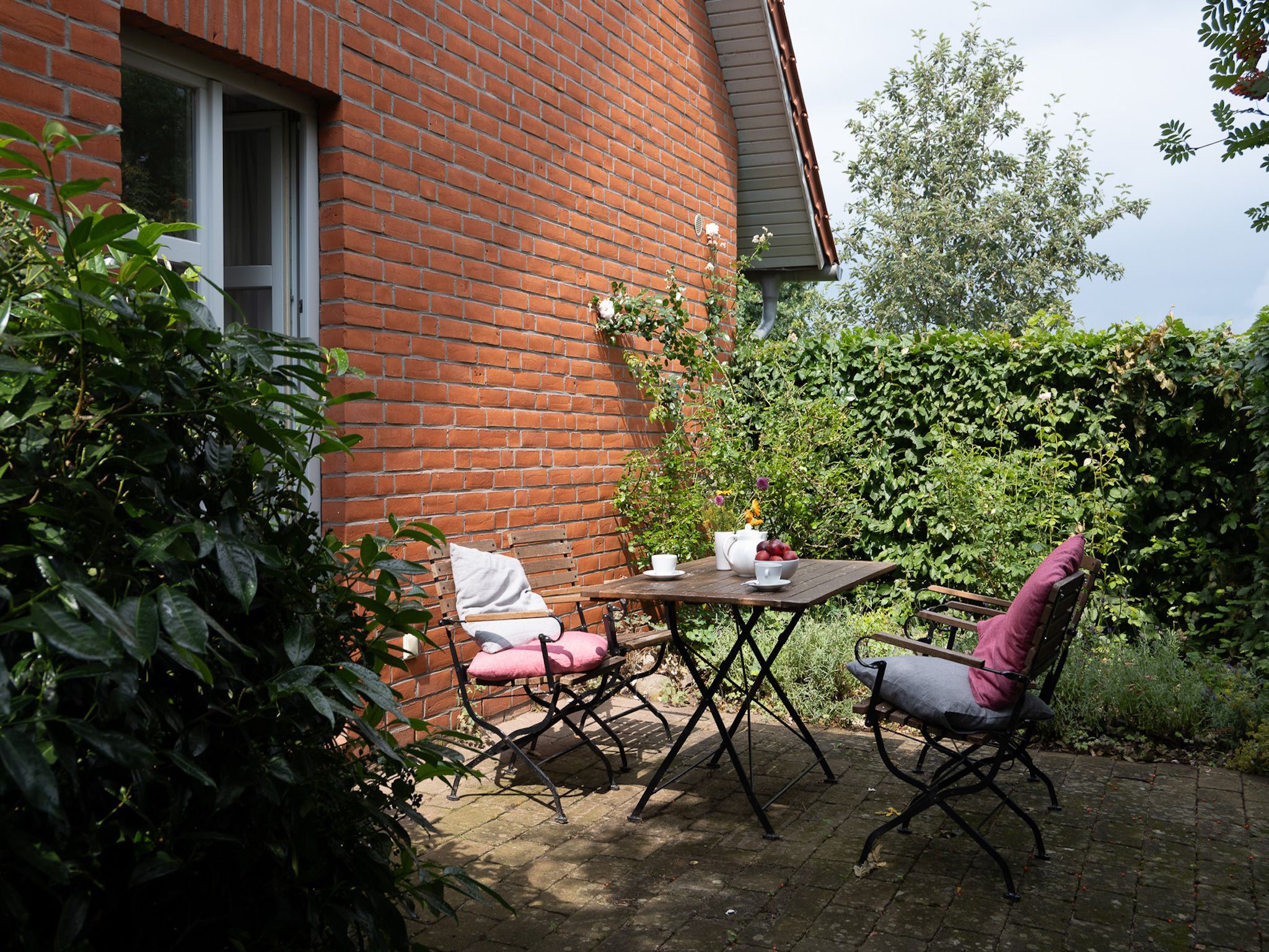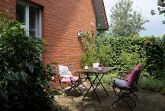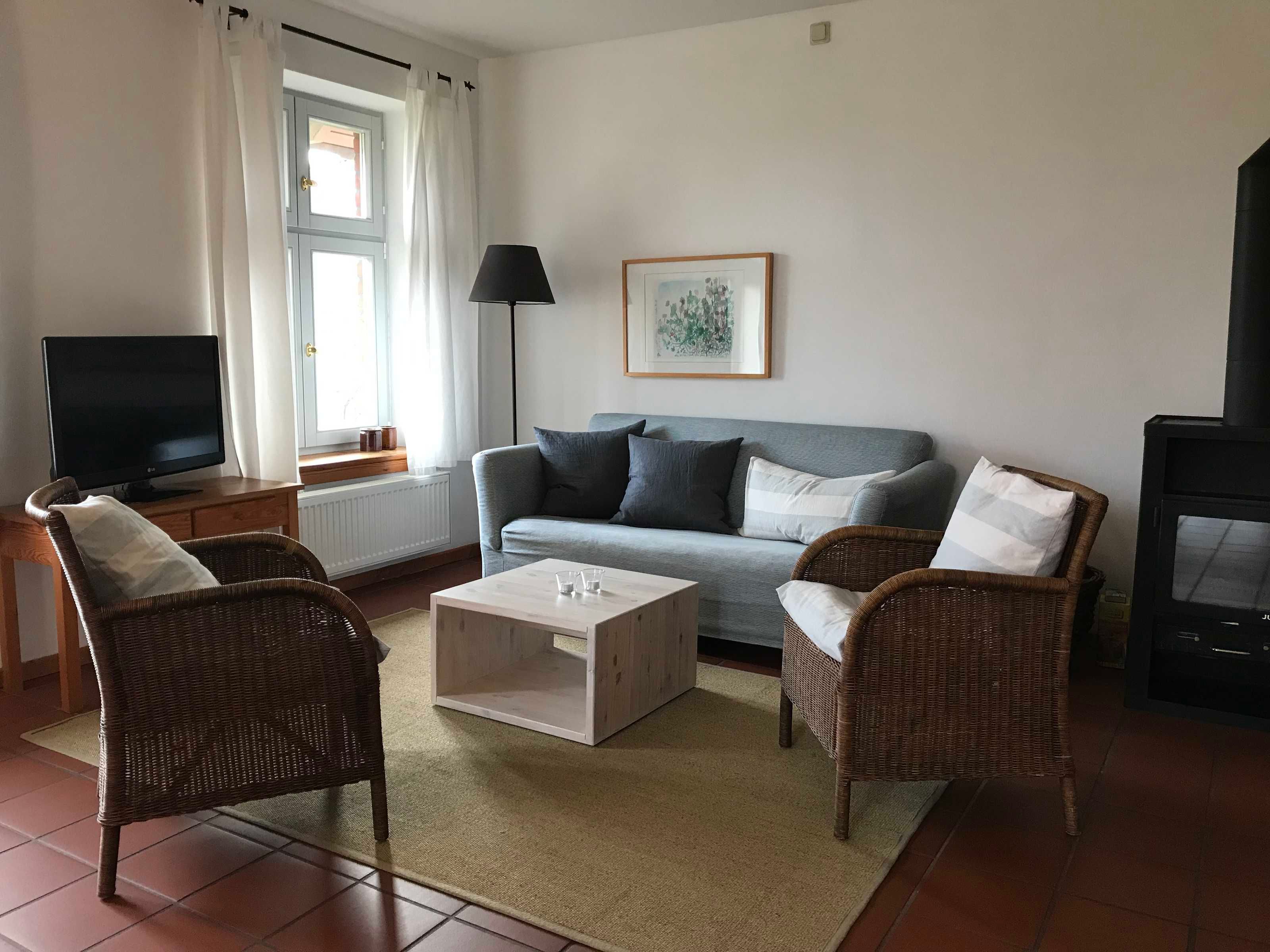 Hell und freundlich gestaltete Doppelhaushälfte für max. 4 Personen mit eigener Terrasse und eigenem Eingang in einem weitläufigen, nicht eingezäunten Garten am Dorfrand von Quilitz.