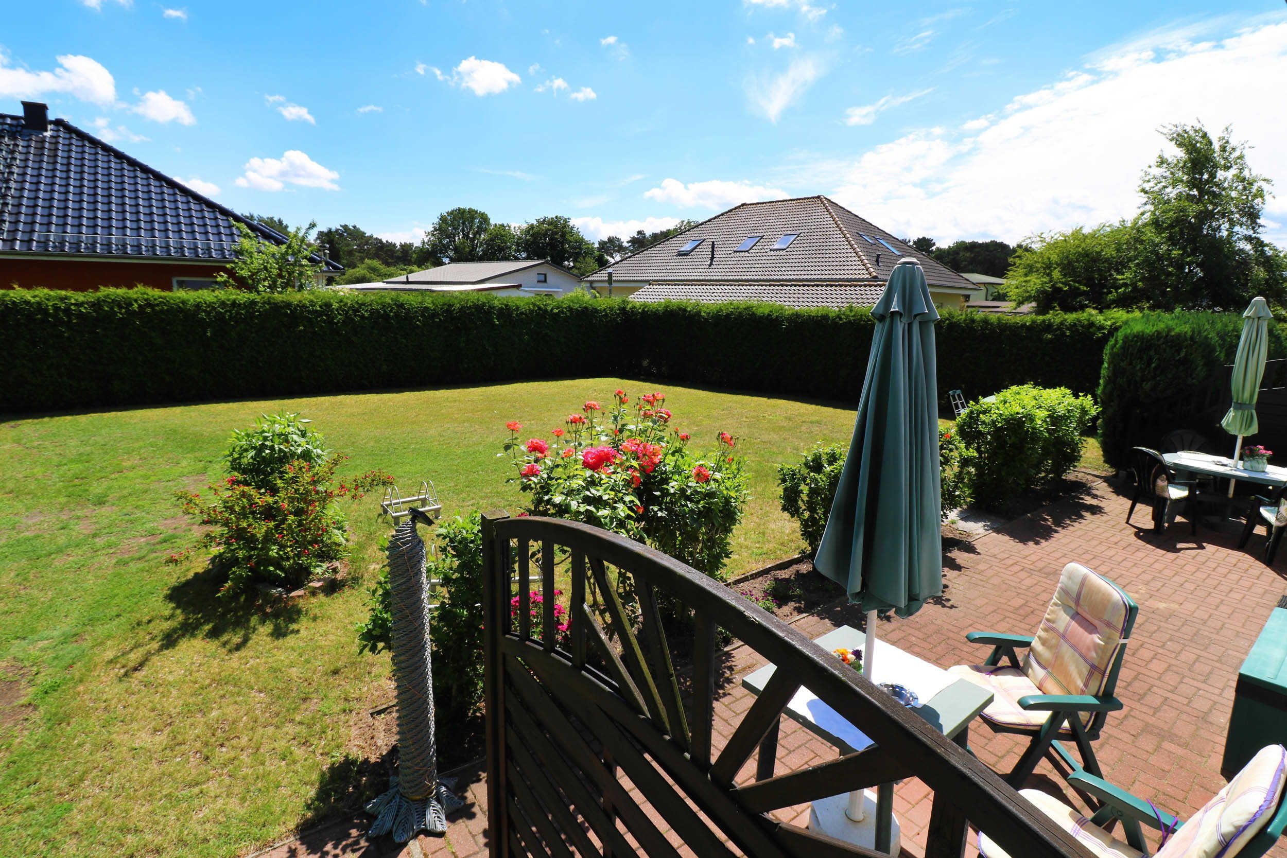 Die Wohnung verfügt über eine große Terrasse mit anschließender Rasenfläche