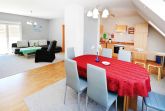 Im Wohnzimmer gehen der Essbereich und der Wohnbereich fließend ineinander über.